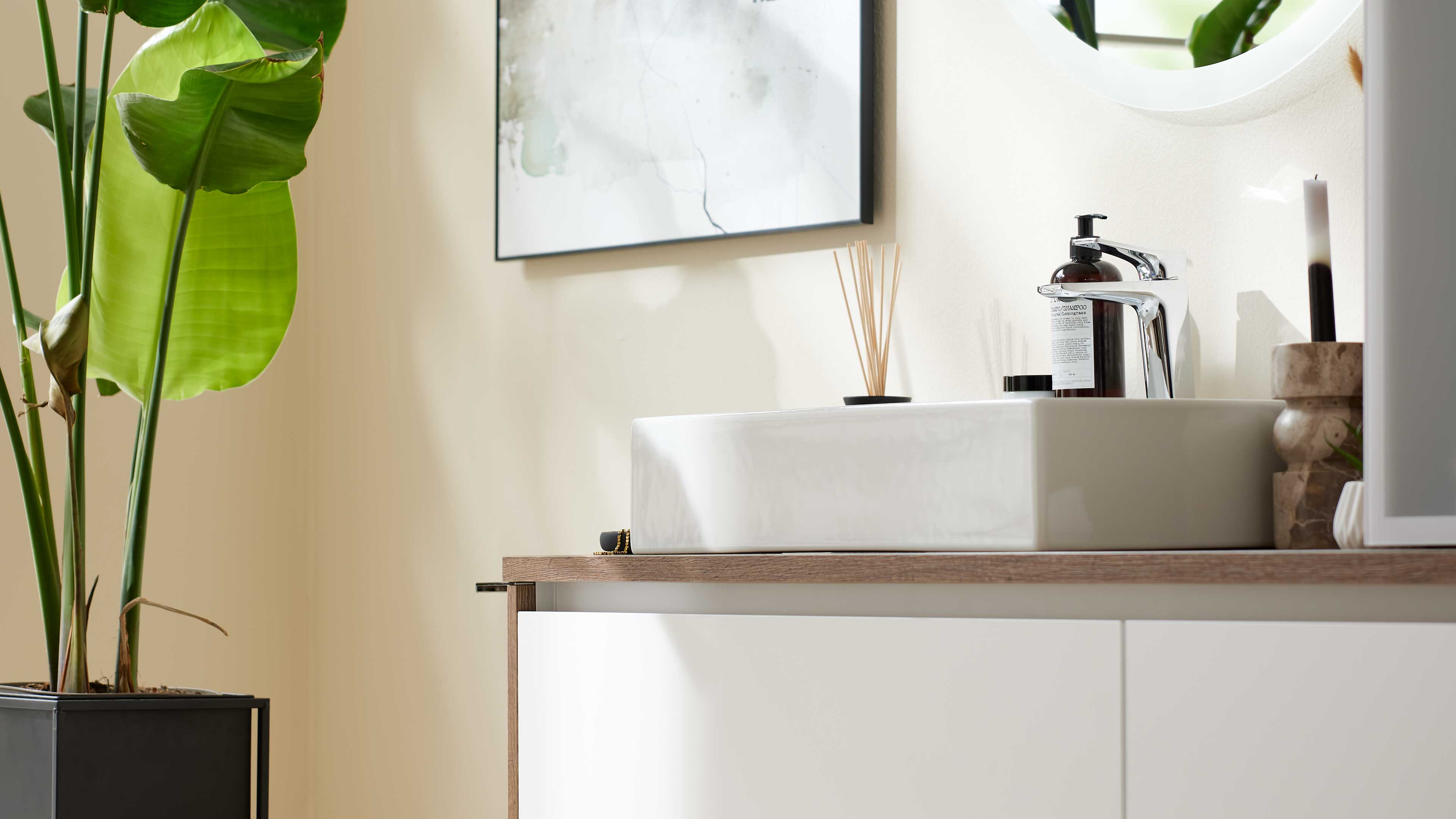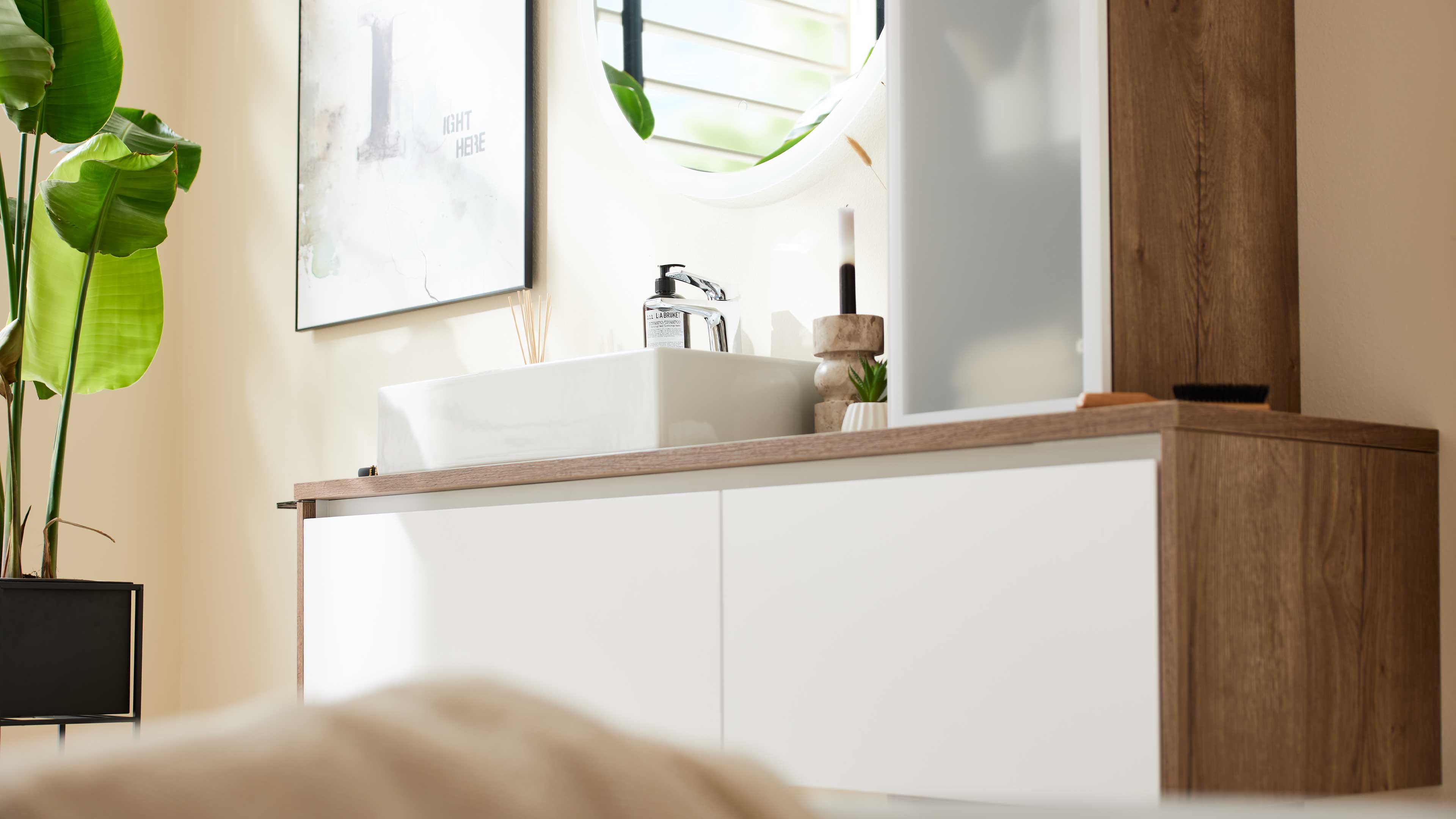 Badmöbel-Set aus der Interliving Bad Serie 7357 – hell, modern und individuell planbar