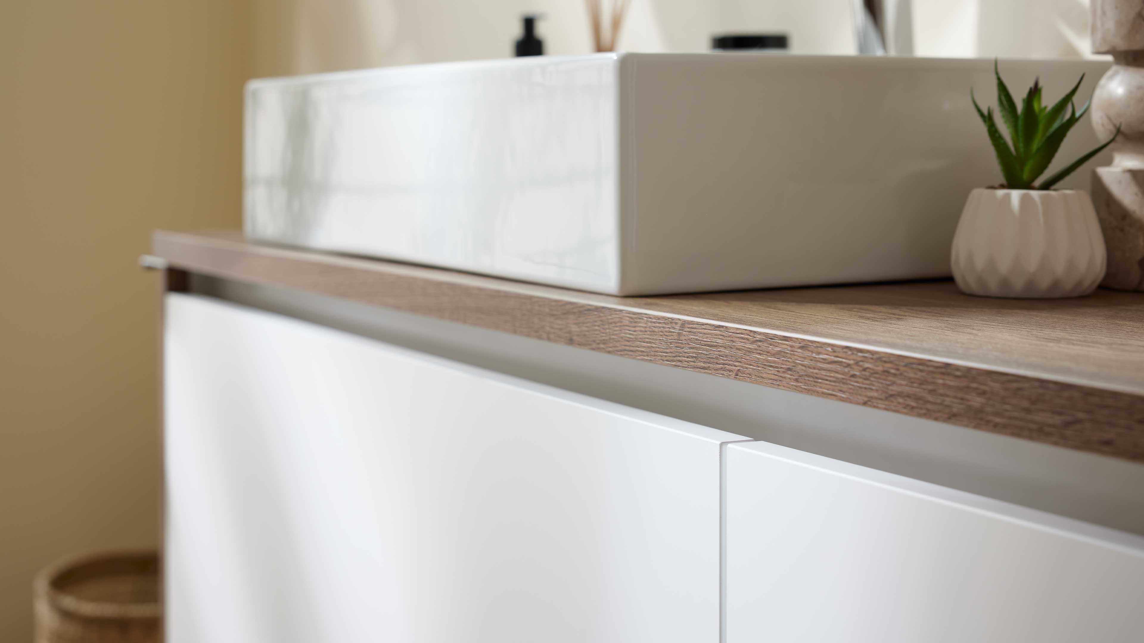 Die Interliving Bad Serie 7357 ist ein individuell planbares Badmöbelprogramm, das klimaschonend in Deutschland produziert wird. Hochwertige Materialien, modernes Design und flexible Kombinationsmöglichkeiten machen diese Serie zu einer langlebigen und stilvollen Wahl für dein Bad.