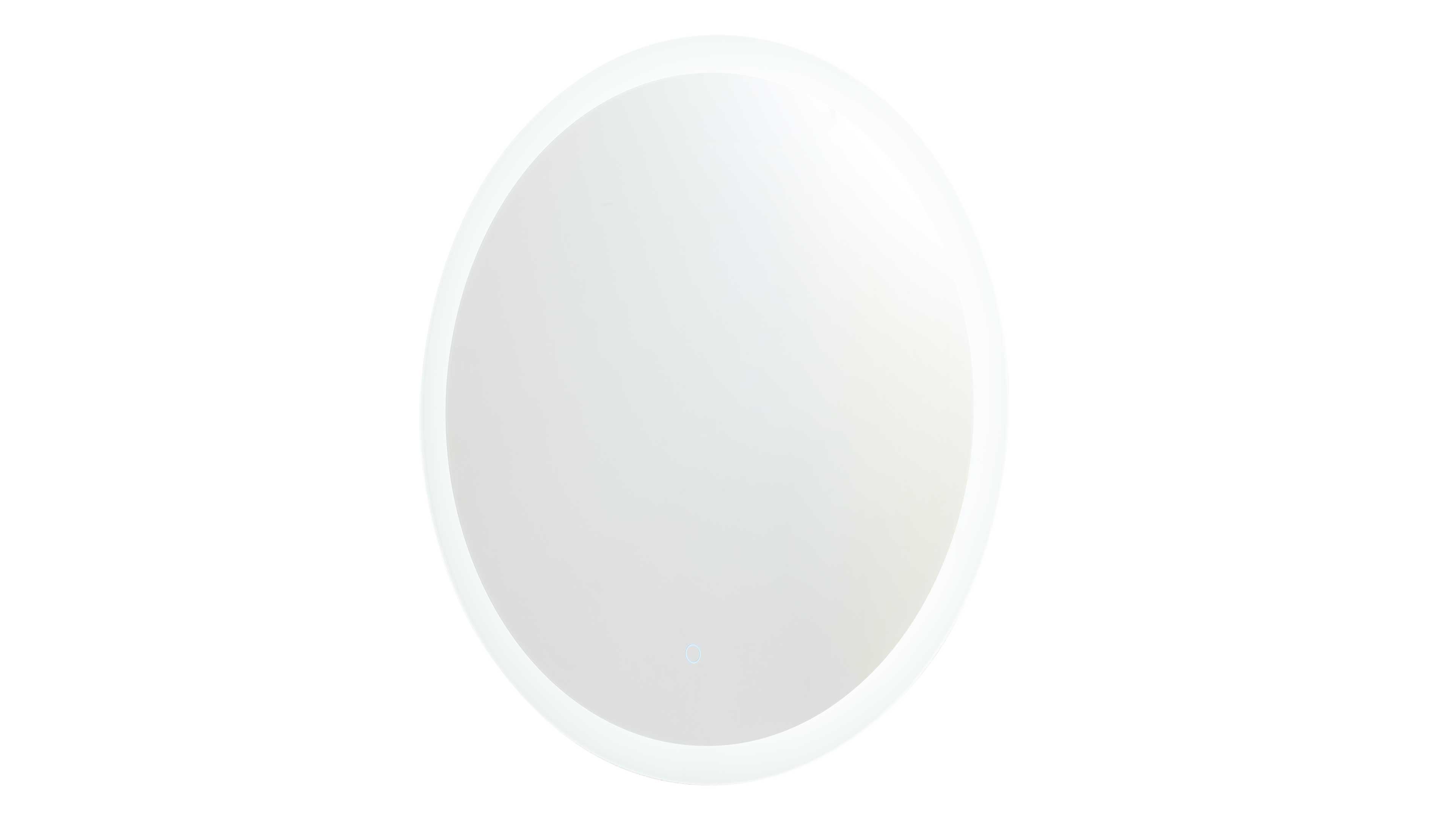 Für stimmungsvolle Beleuchtung sorgt der beleuchtete Wandspiegel (Typ 15202) mit umlaufendem sandgestrahltem LED-Lichtfenster und Touchsensor. Der Spiegel hat einen Durchmesser von ca. 75 cm, ist ca. 3 cm tief und mit einem fest verbauten, nicht austauschbaren LED-Leuchtmittel (20 Watt) der Energieeffizienzklasse F (Spektrum A bis G) ausgestattet – inklusive Konverter.