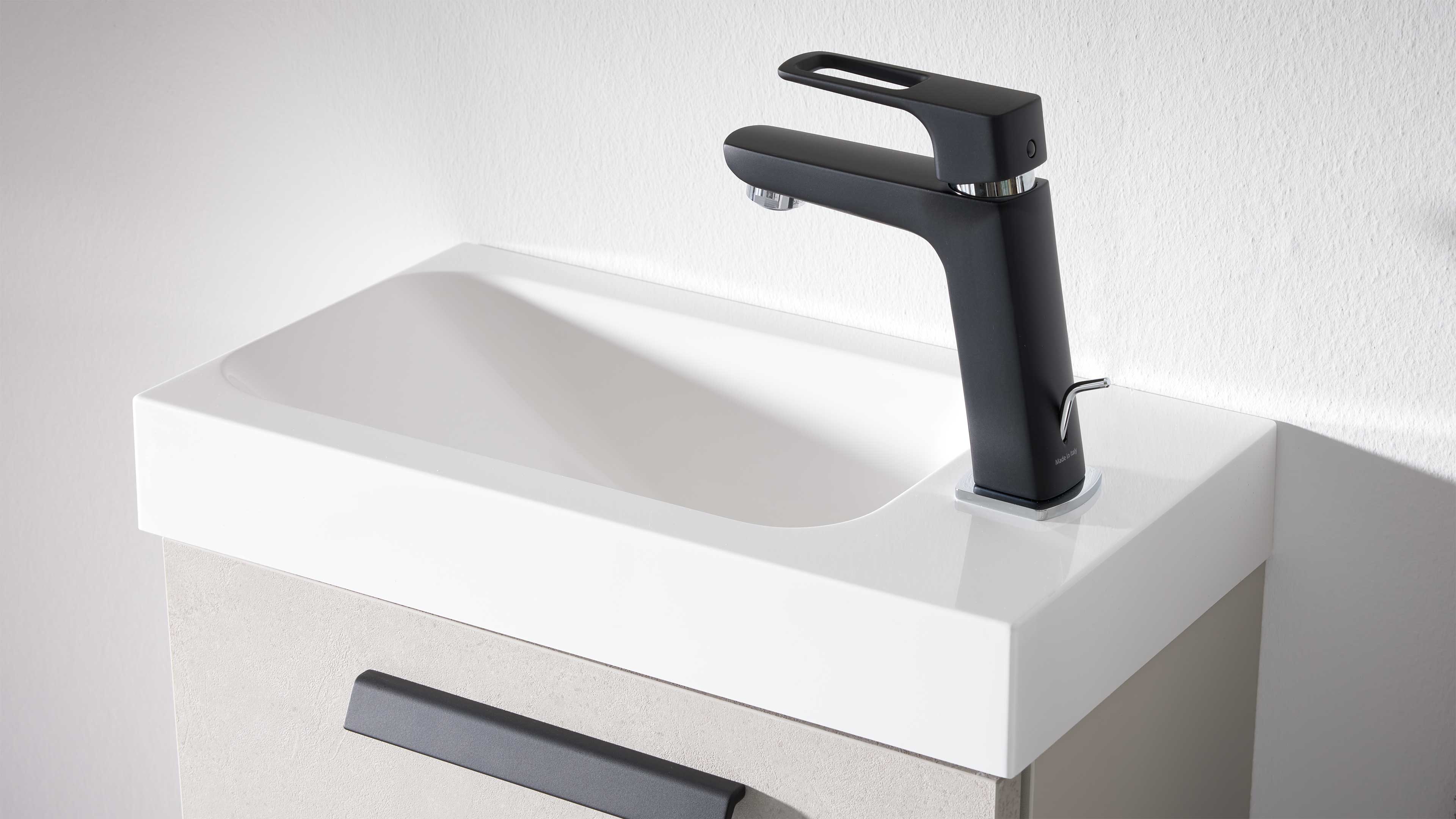 Stylische Gäste-WC-Kombination aus der Interliving Bad Serie 7842 – kompakt, modern und durchdacht ausgestattet