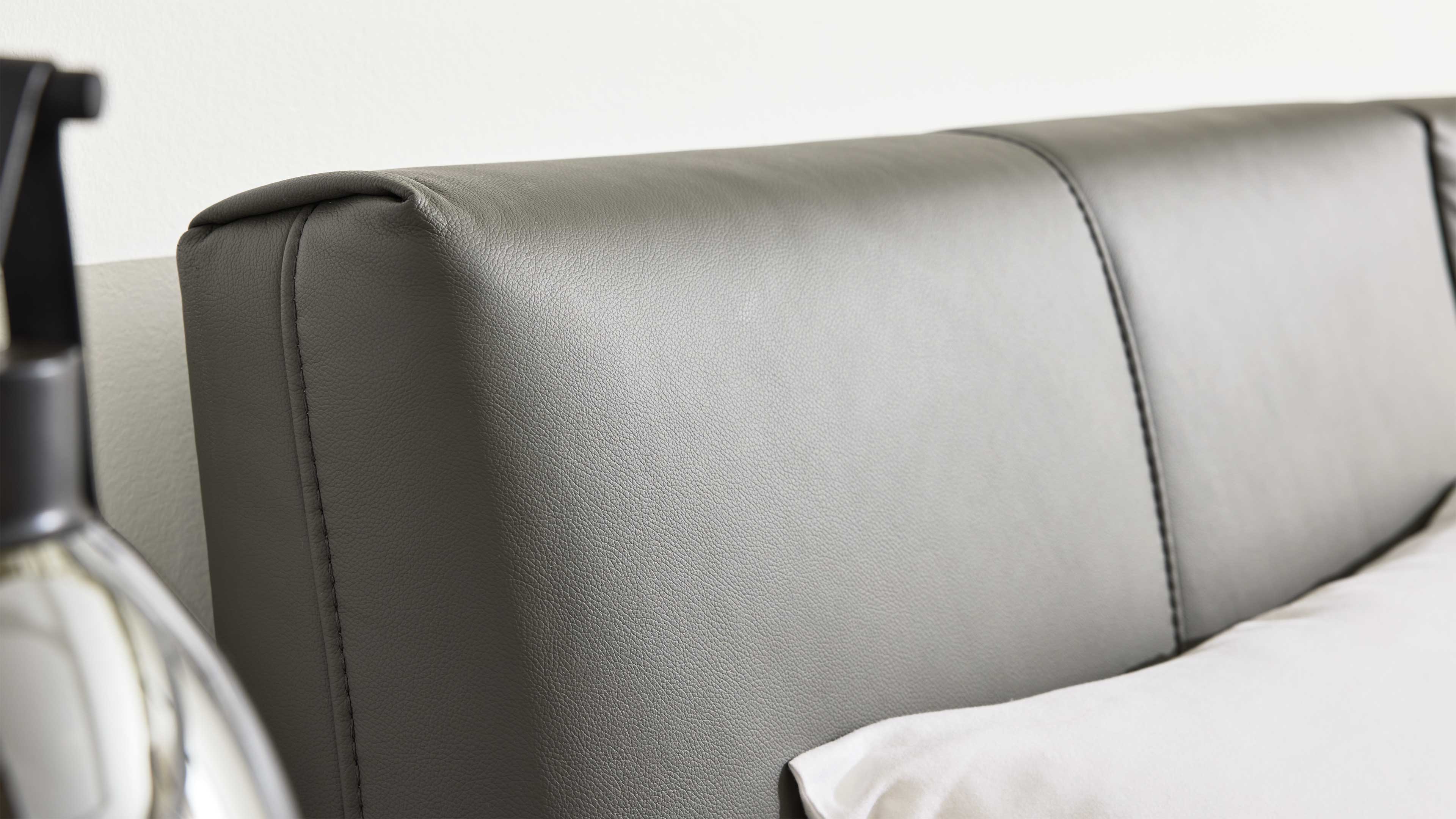 Ein echtes Highlight ist das bodenfreie Polsterkopfteil, das mit seiner eleganten Kappnaht und filigranen Linienführung für Leichtigkeit sorgt. Die weiche Polsterung bietet bequemen Halt beim Lesen, Fernsehen oder Frühstück im Bett. Optional kann die Rückseite im Originalleder ausgeführt werden, sodass sich das Bett auch frei im Raum perfekt in Szene setzen lässt. Insgesamt stehen sechs Kopfteilvarianten in unterschiedlichen Höhen zur Wahl – teilweise auch mit praktischen Zusatzfunktionen.
