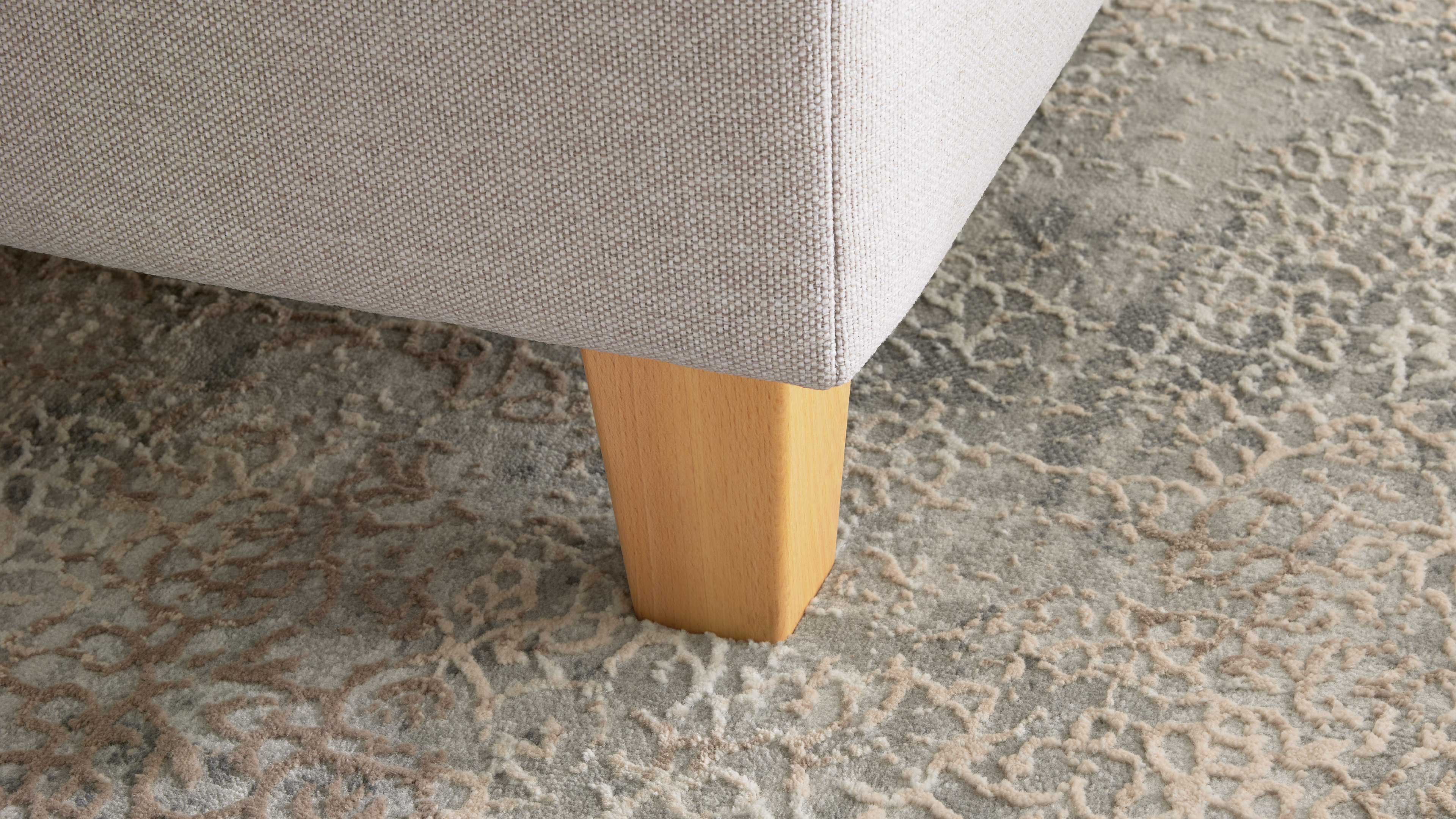 Boxspringbett in hellem Stoff mit Massivholz-Akzenten