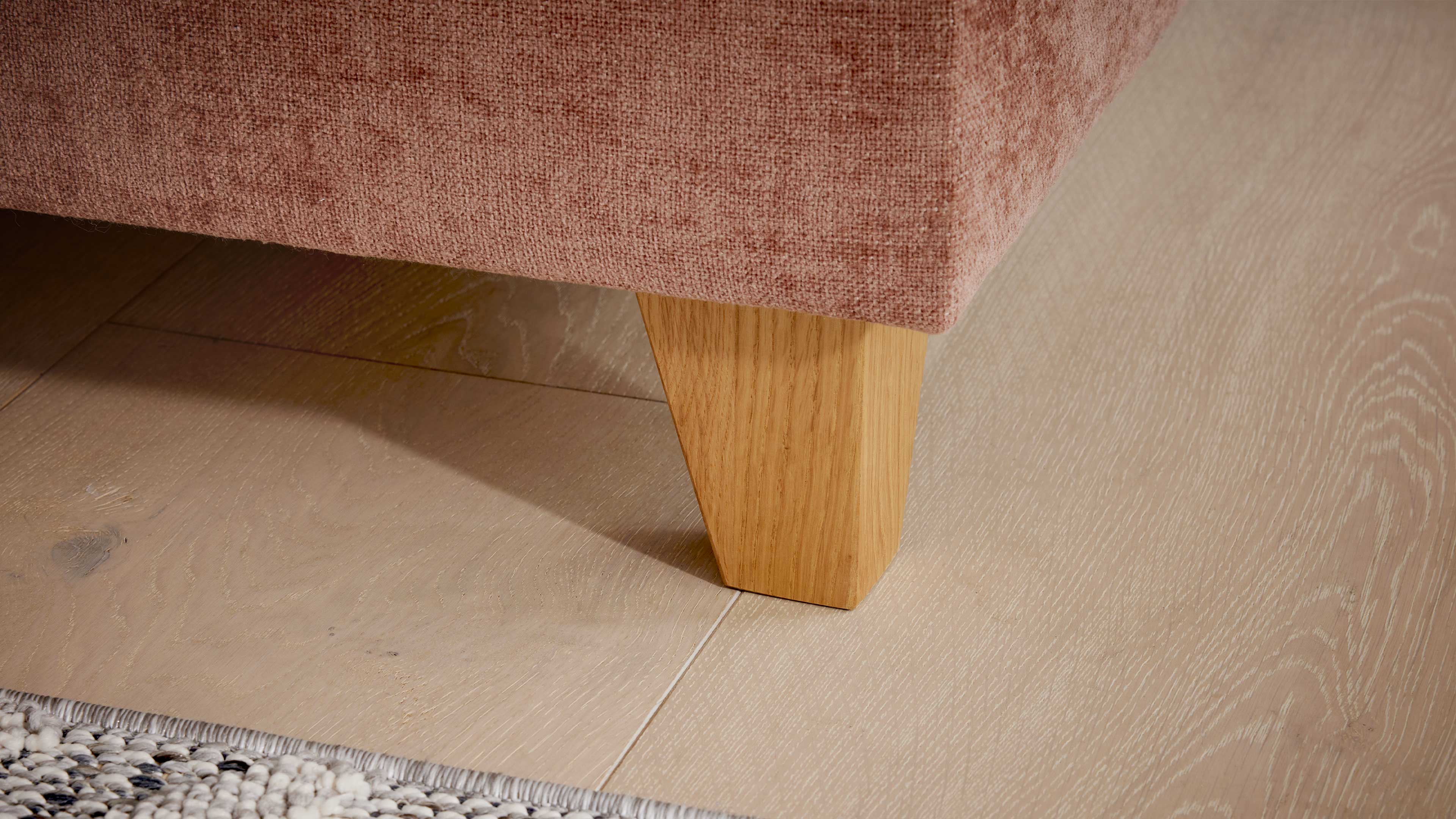 Boxspringbett in Rose mit geradlinigem Kopfteil und Holzfüßen
