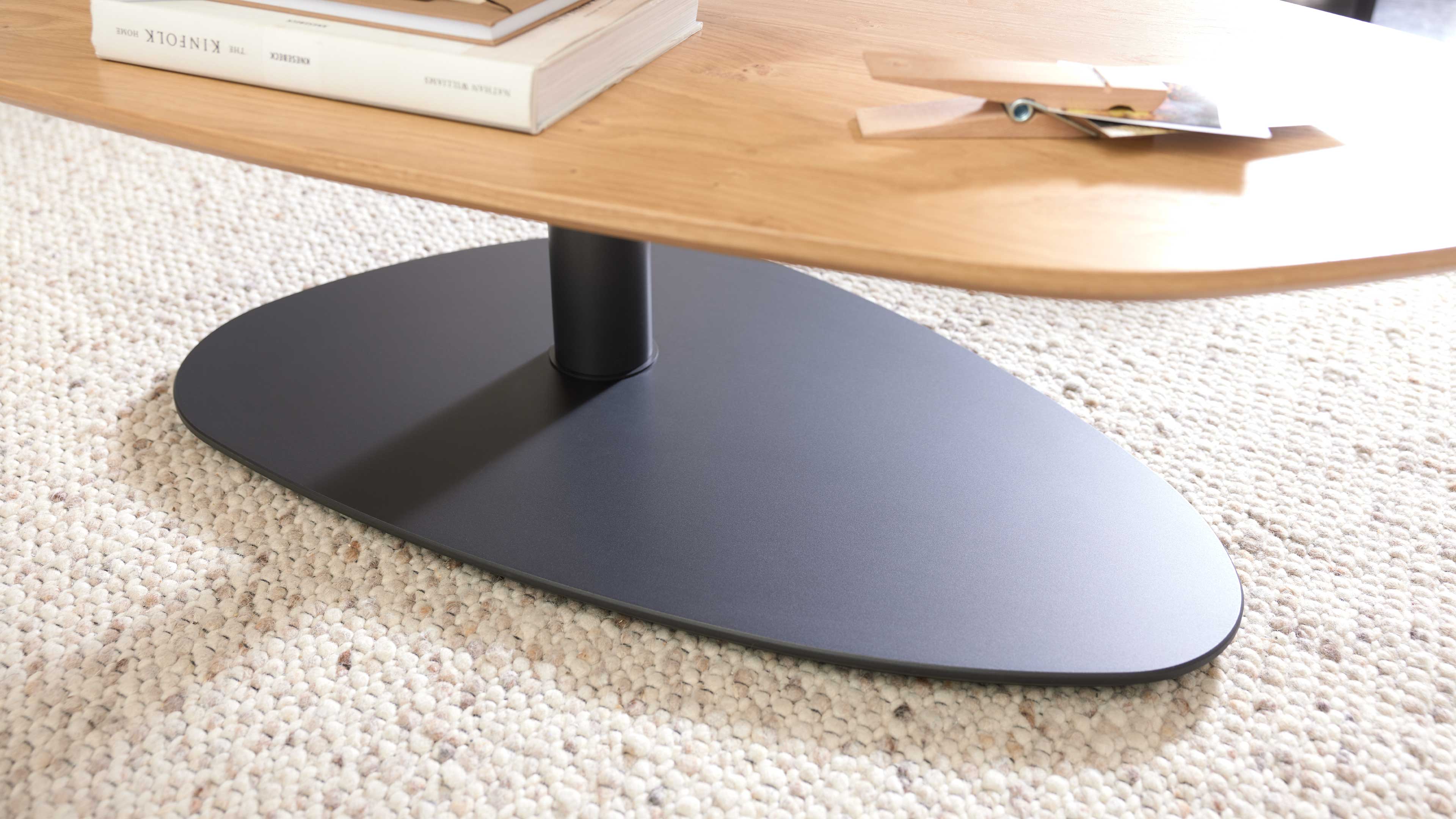 Mit seiner charakteristischen Bootsform ist der Couchtisch aus der Interliving Couchtisch Serie 6225 ein echter Hingucker und verleiht jedem Wohnzimmer eine außergewöhnliche Note. Das harmonische Zusammenspiel aus anthrazit-metallicfarben lackiertem Glas, Metall- und MDF-Elementen sowie lackiertem Wildeichefurnier schafft einen modernen, zugleich warmen Look, der Natürlichkeit und Eleganz perfekt vereint.