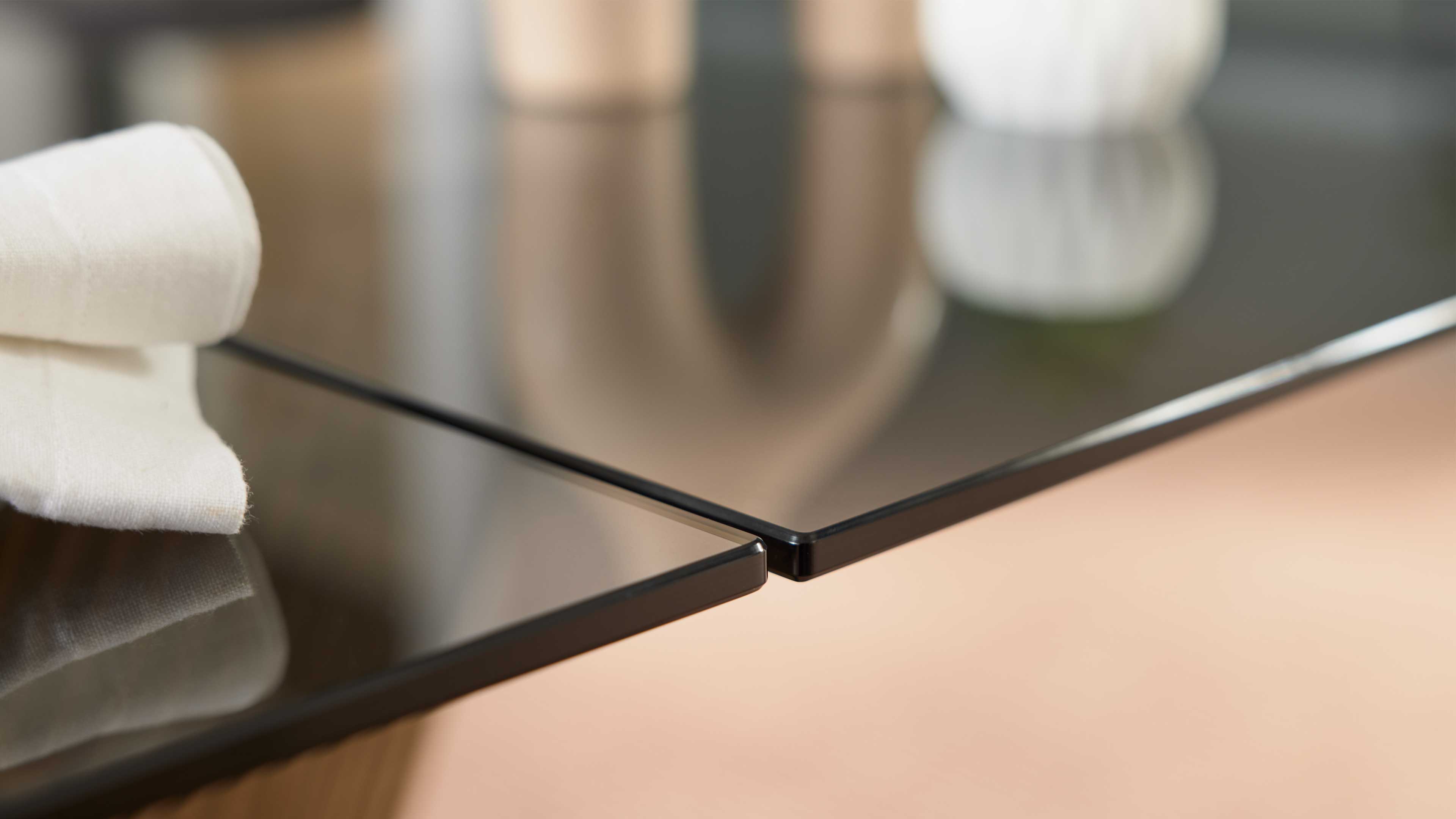Die ca. 8 mm starken ESG-Tischplatten überzeugen durch ihre Robustheit und klare Ästhetik. Dank der integrierten Hydro-Lift-Mechanik lässt sich die Höhe stufenlos um ca. 17 cm verstellen – ideal, um den Tisch flexibel an verschiedene Nutzungssituationen anzupassen. So wird der Couchtisch im Handumdrehen zur erhöhten Ablagefläche oder zum bequemen Arbeitstisch am Sofa.