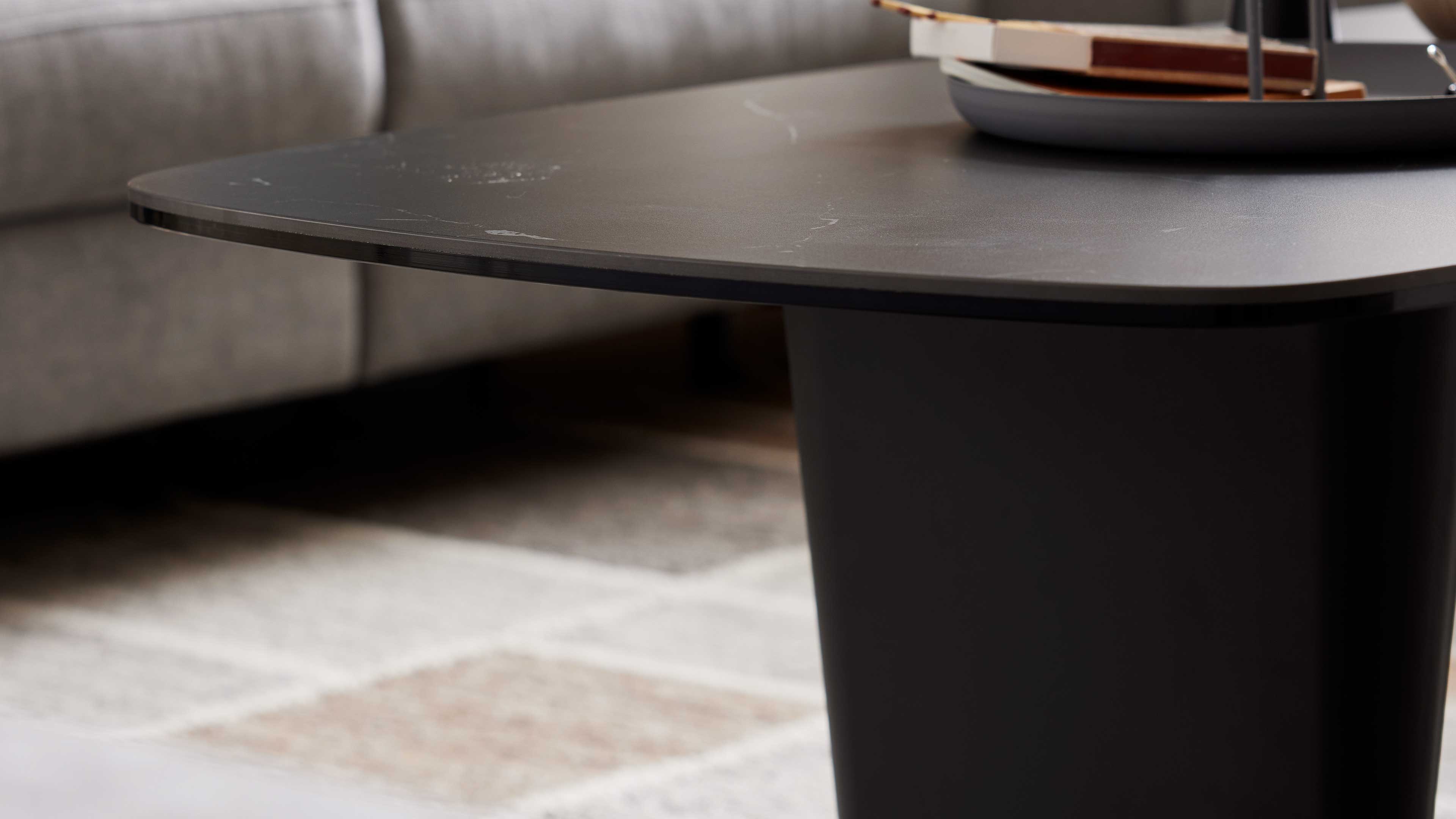 Der Couchtisch aus der Interliving Couchtisch Serie 6229 vereint edles Design mit hochwertiger Verarbeitung und langlebiger Funktionalität. Die dunekle Keramikplatte in Marmor-Nachbildung Marquina verleiht dem Tisch eine elegante, moderne Ausstrahlung, während das mattschwarz lackierte Stahlgestell einen stilvollen Kontrast setzt. So entsteht ein Sofatisch, der durch seine klare Formensprache und edle Materialkombination zum Blickfang in jedem Wohnzimmer wird.