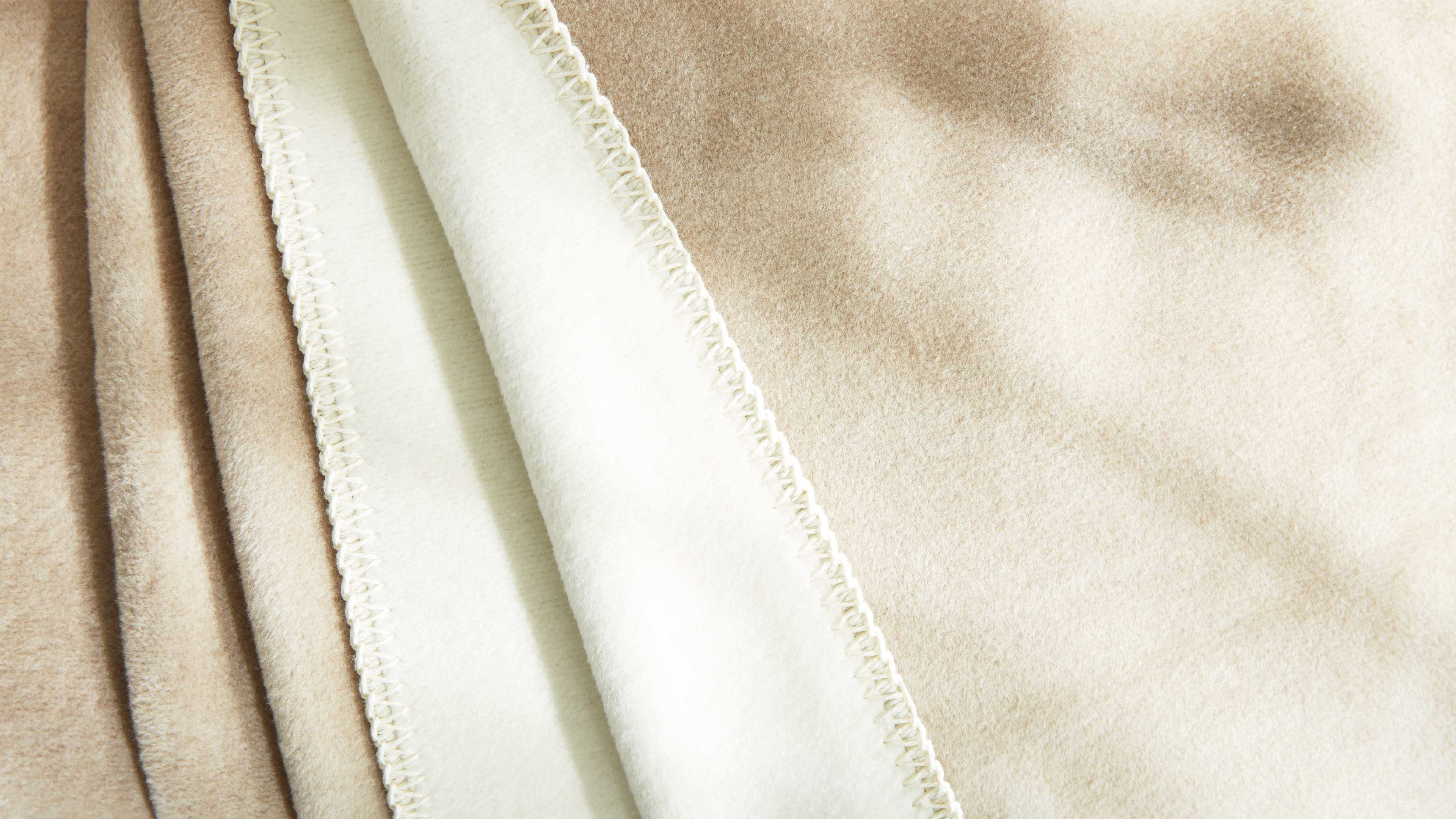 Das sand- und naturfarbene Mischgewebe verleiht der Decke eine zeitlos elegante Optik, die sich harmonisch in verschiedenste Einrichtungsstile einfügt. Ein besonderes Detail ist die dekorative Häkelsaum-Einfassung, die dem hochwertigen Wohntextil eine feine Akzentuierung verleiht.