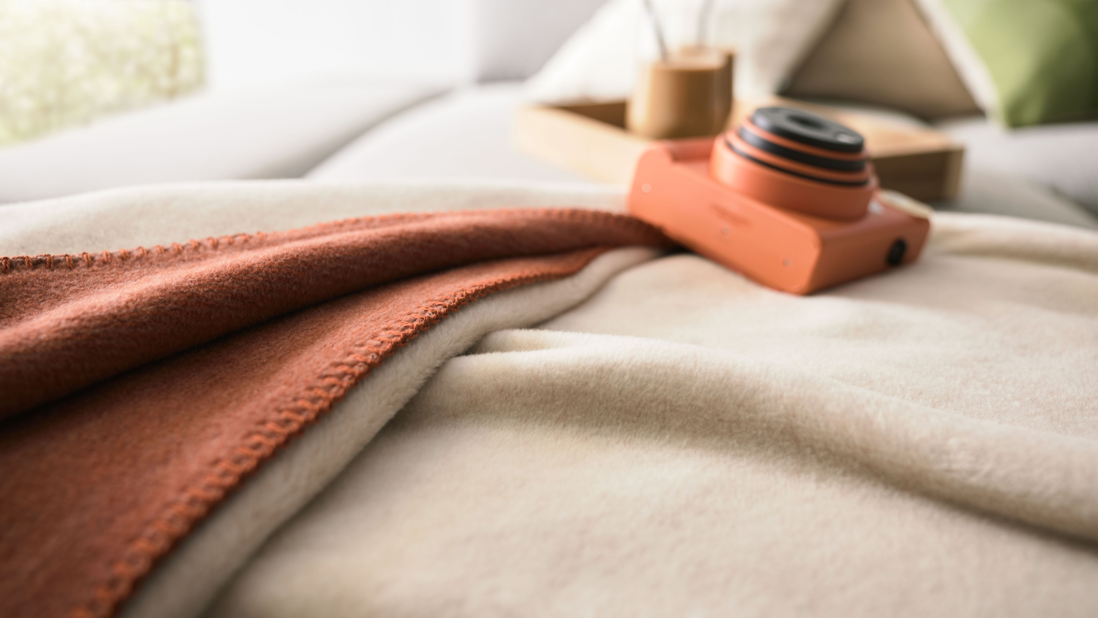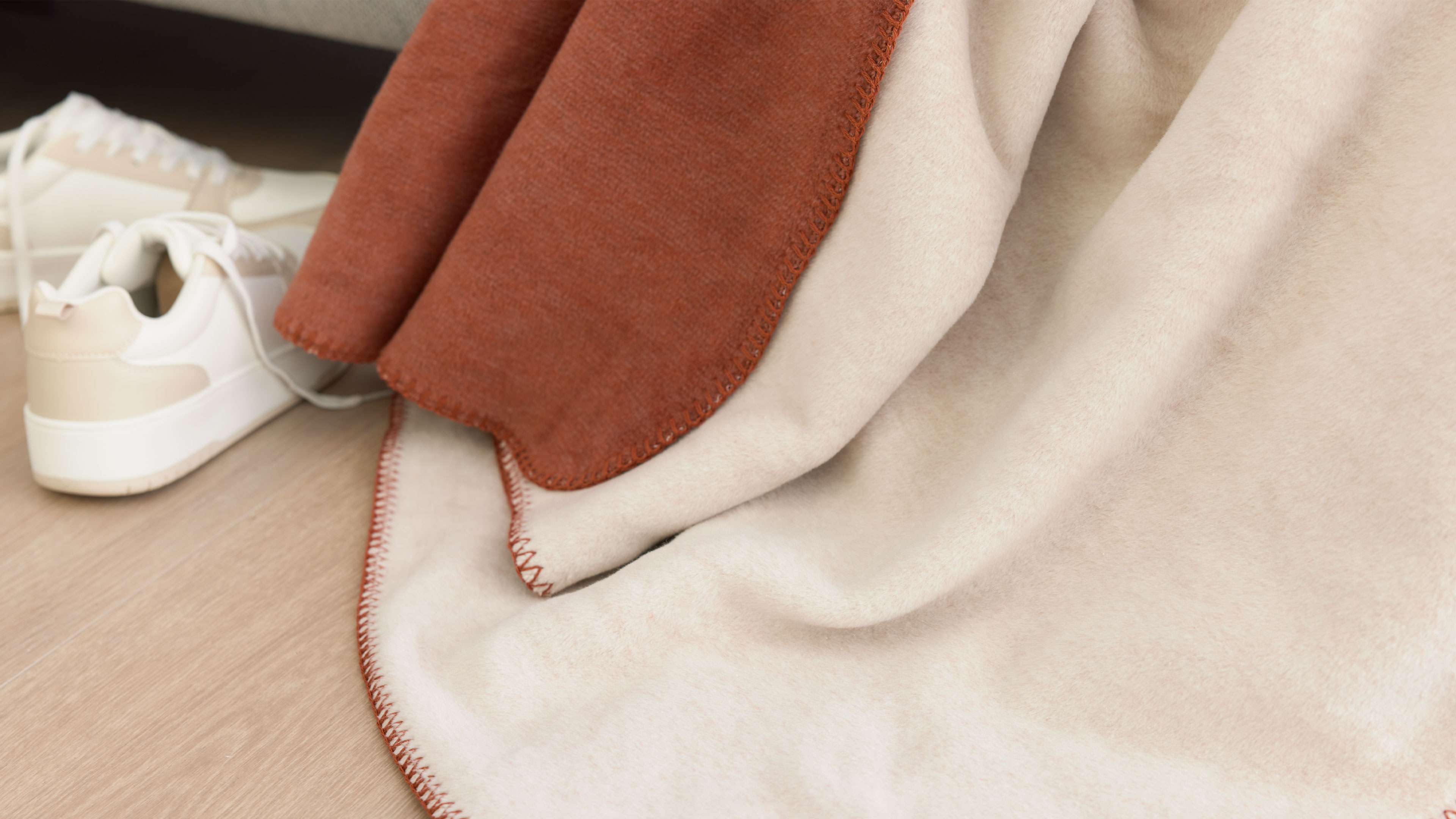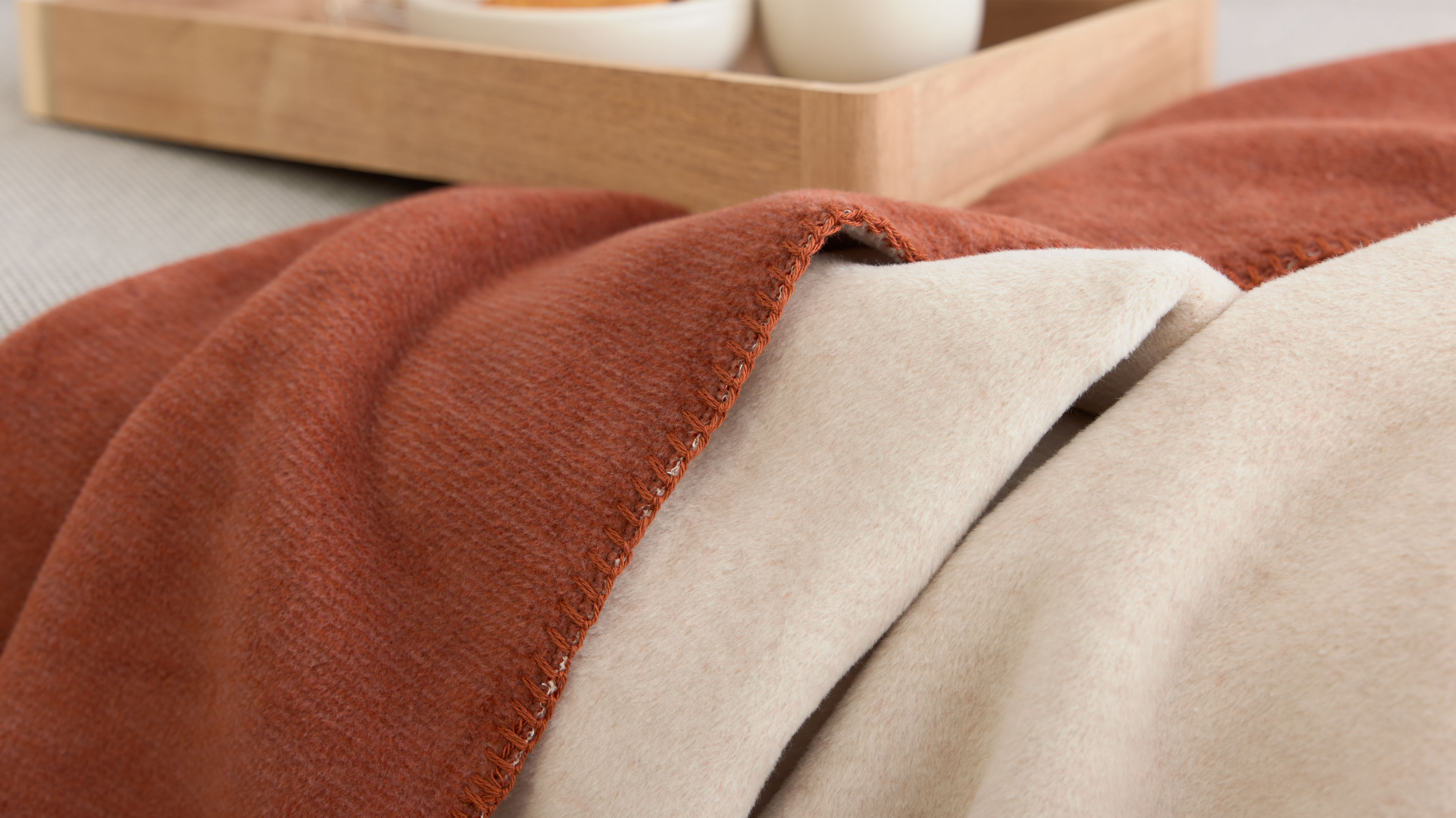 Das rotfuchs- und federfarbene Mischgewebe verleiht der Decke eine zeitlos elegante Optik, die sich harmonisch in verschiedenste Einrichtungsstile einfügt. Ein besonderes Detail ist die dekorative Häkelsaum-Einfassung, die dem hochwertigen Wohntextil eine feine Akzentuierung verleiht.