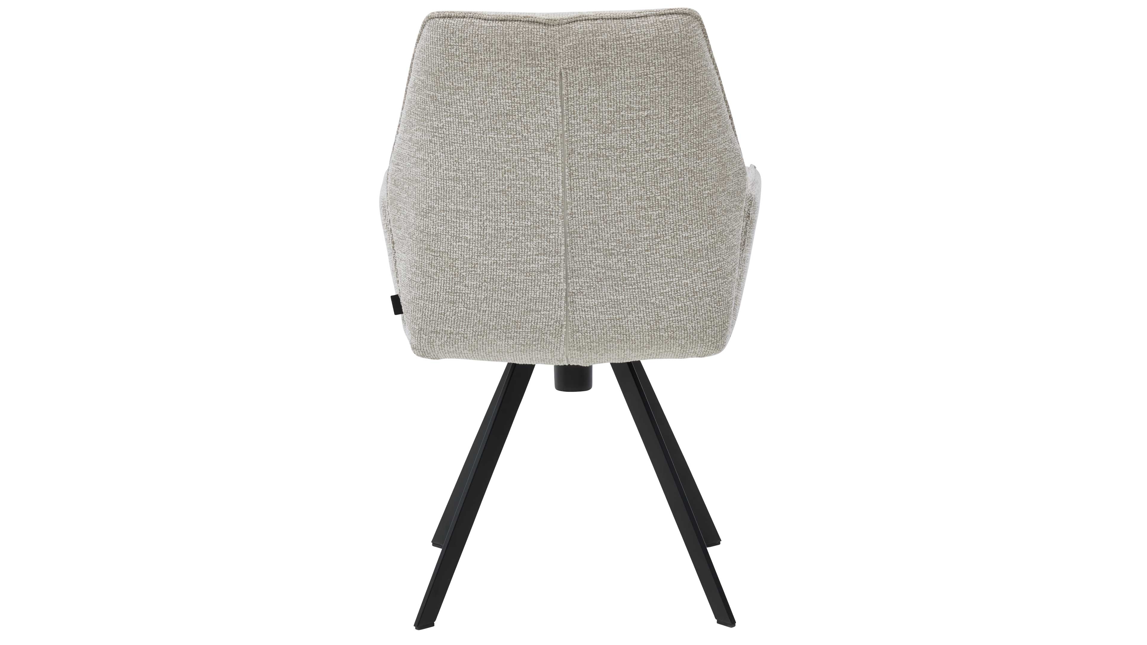 Der Vierfuß-Armlehnstuhl mit Drehfunktion aus der Interliving Esszimmer Serie 5102 bringt modernen Komfort und klares Design in deinen Essbereich. Der leinenfarbene Jacquardbezug sorgt für eine ruhige, wohnliche Optik, während das mattschwarze Eisen-Stativgestell dem Stuhl einen modernen, leicht industriellen Charakter verleiht. Die Rückenlehne mit dekorativer Quernaht setzt einen dezenten, stilvollen Akzent.