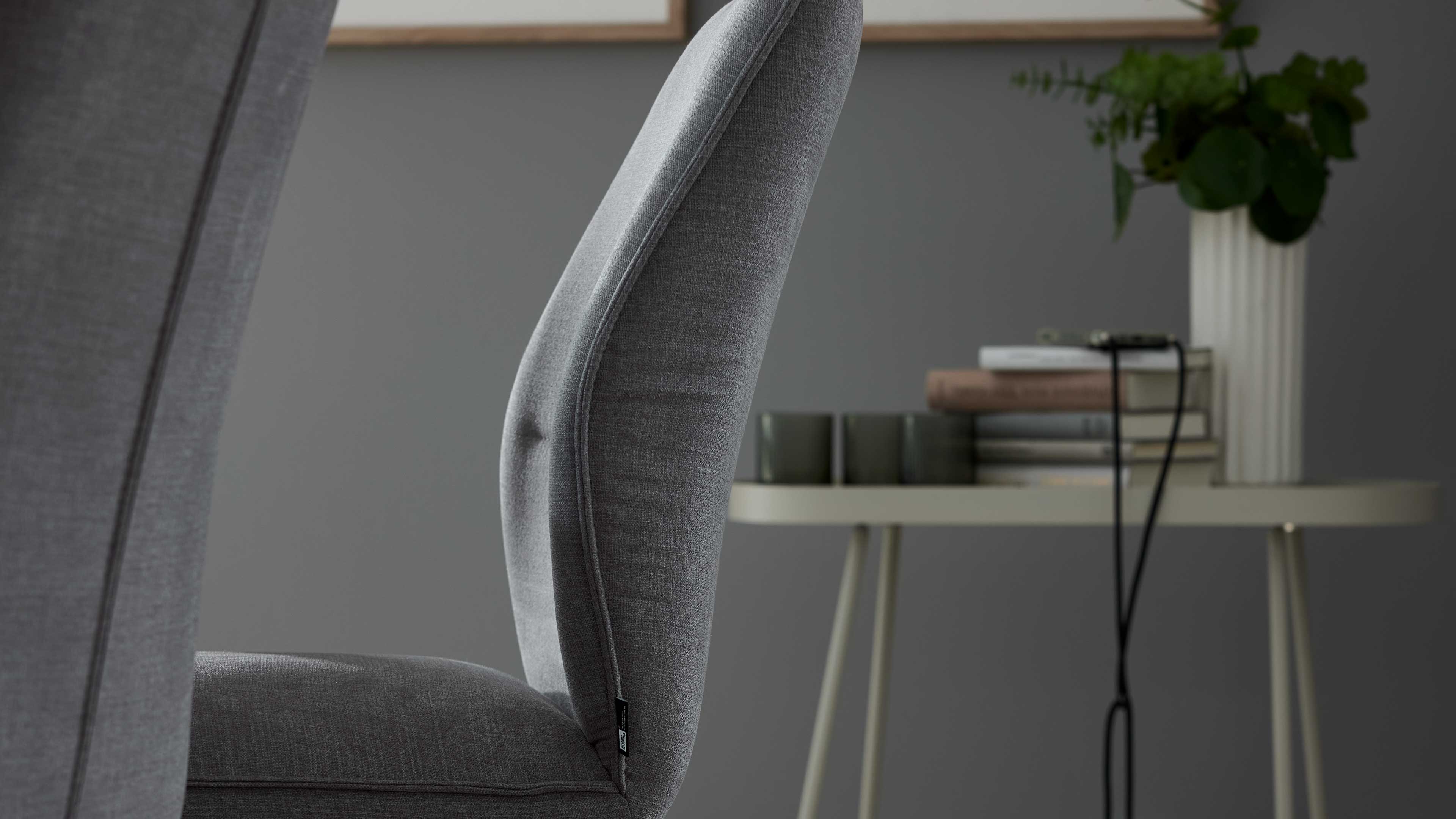 Der Vierfußstuhl mit Drehfunktion aus der Interliving Esszimmer Serie 5102 bringt modernen Komfort und klares Design in deinen Essbereich. Der graphitfarbene Webstoff sorgt für eine ruhige, wohnliche Optik, während das mattschwarze Eisen-Stativgestell dem Stuhl einen modernen, leicht industriellen Charakter verleiht. Die Rückenlehne mit dekorativer Quernaht setzt einen dezenten, stilvollen Akzent.