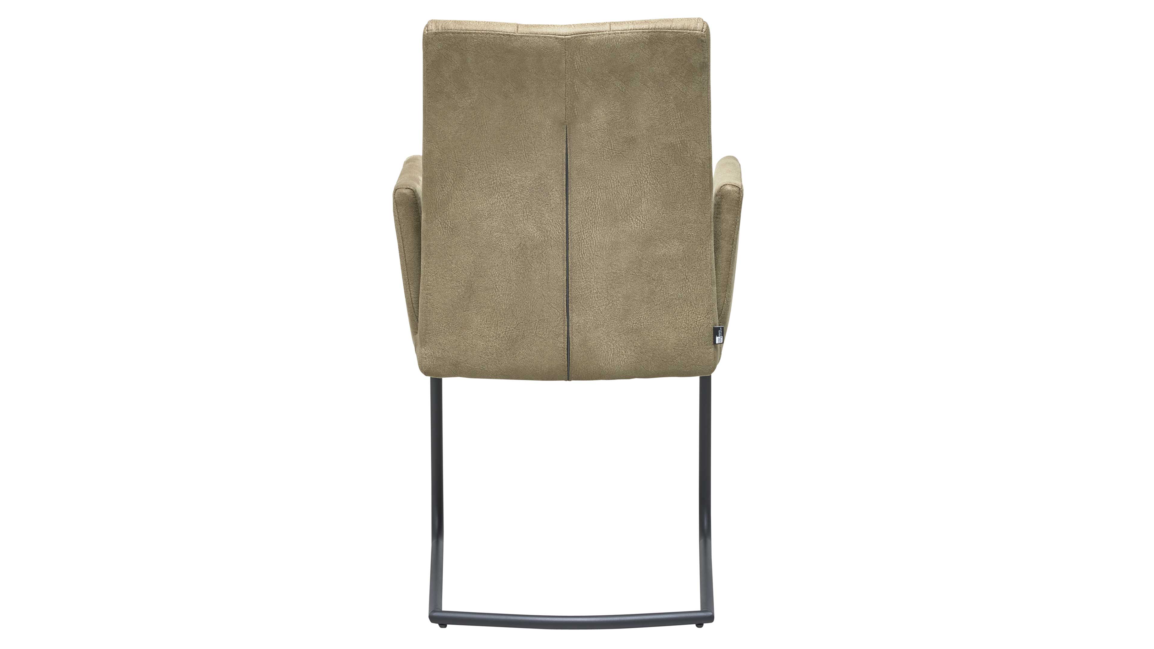 Schwingstuhl mit Armlehne in Oliv und mattschwarzem Metallgestell