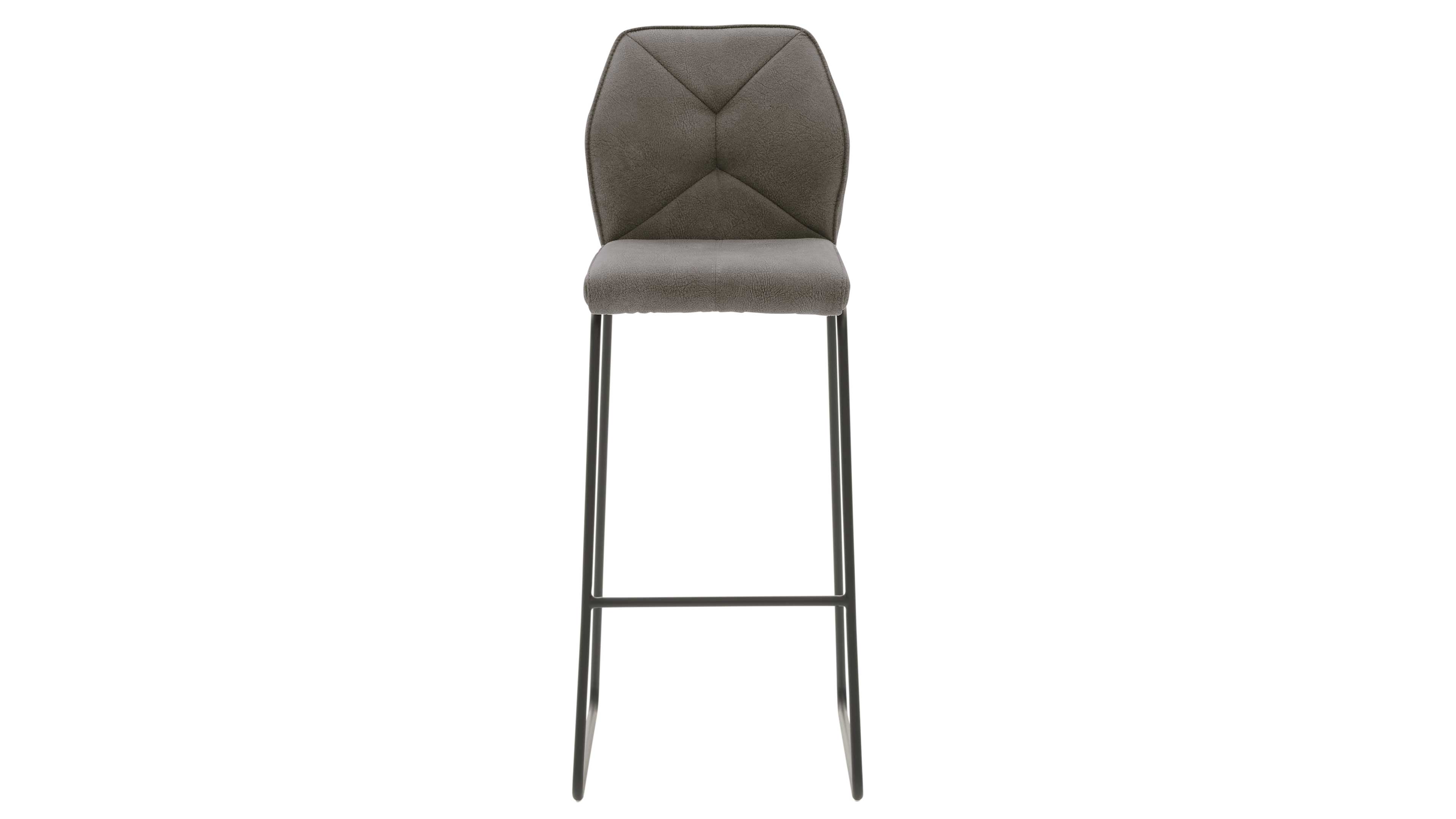 Barhocker in Grau mit gepolsterter Lehne und filigranem Rundrohrgestell