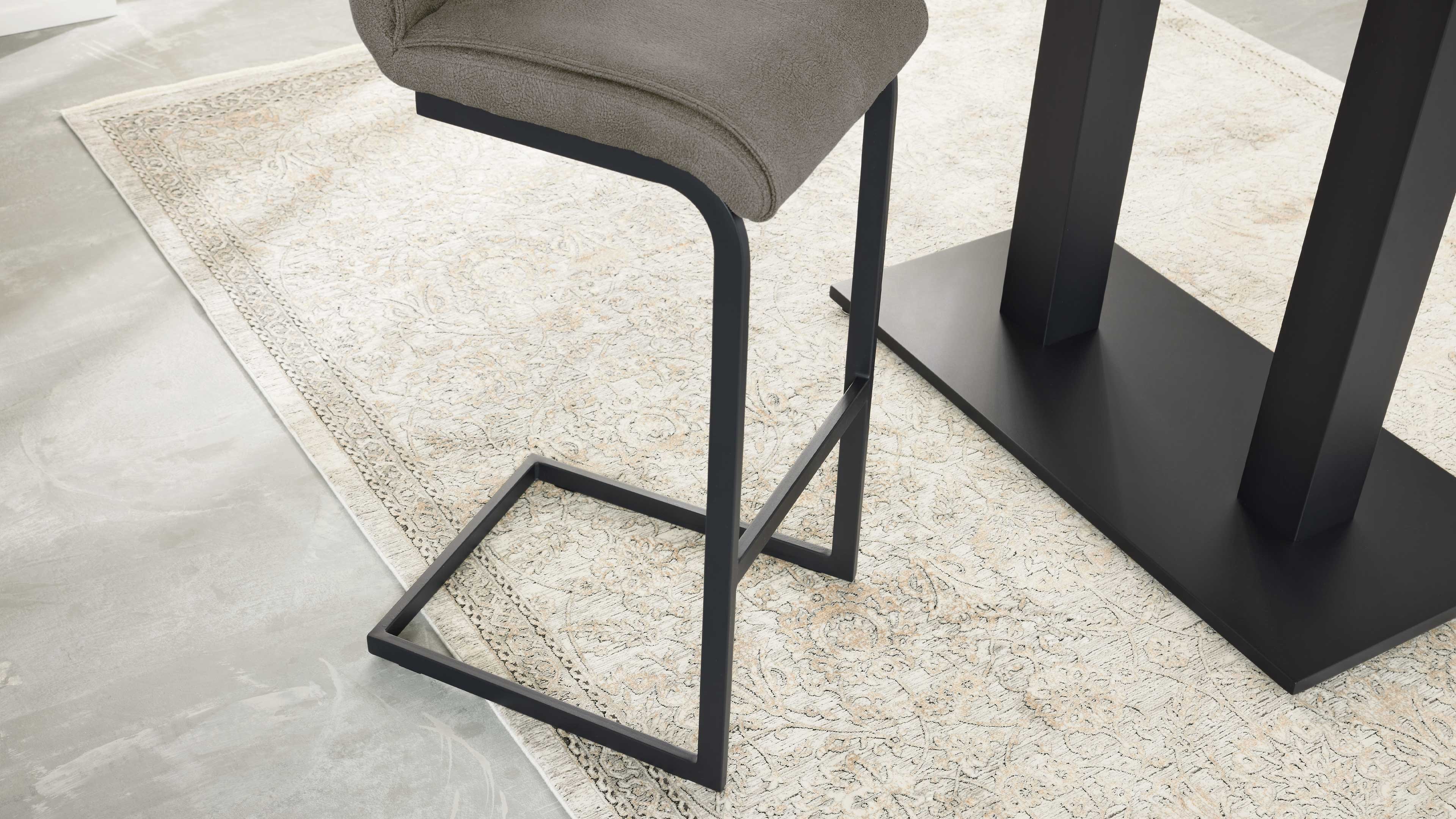 Die Stuhlgestelle sind wahlweise in Edelstahl oder Schwarz pulverbeschichtet erhältlich – mit oder ohne drehbare Funktion und Rückstellmechanismus. So passt sich dein Barstuhl ganz deinen funktionalen Wünschen und deinem Stil an.