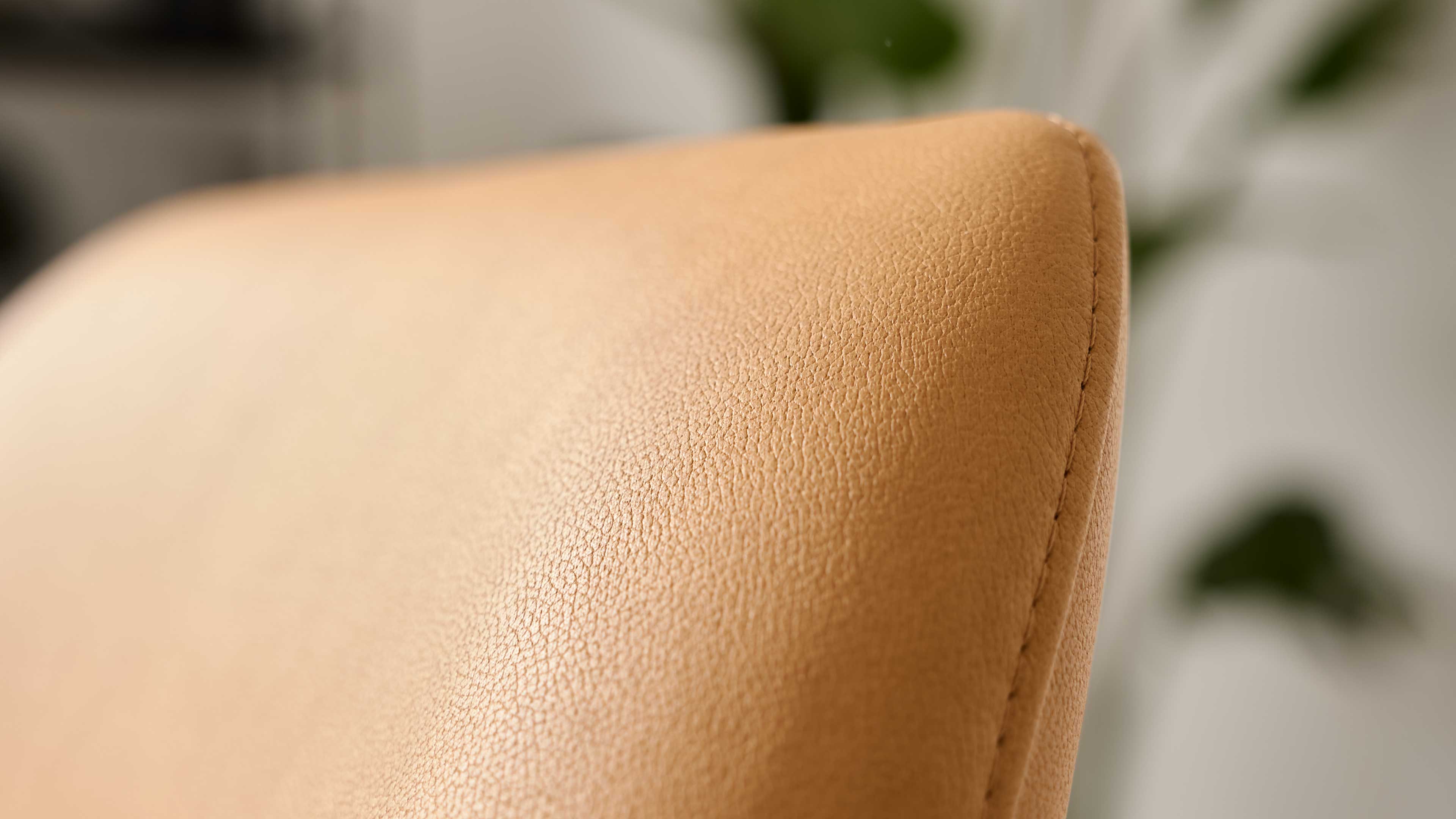 Der Interliving Schalenstuhl vereint zeitgemäße Eleganz mit durchdachtem Komfort. Das matt anthrazitfarbene, pulverbeschichtete Metall-Vierfußgestell harmoniert perfekt mit dem kurkumafarbenen Mikrofaserbezug in Lederoptik. Diese Kombination verleiht deinem Esszimmer eine frische, moderne Optik mit individuellem Charakter.