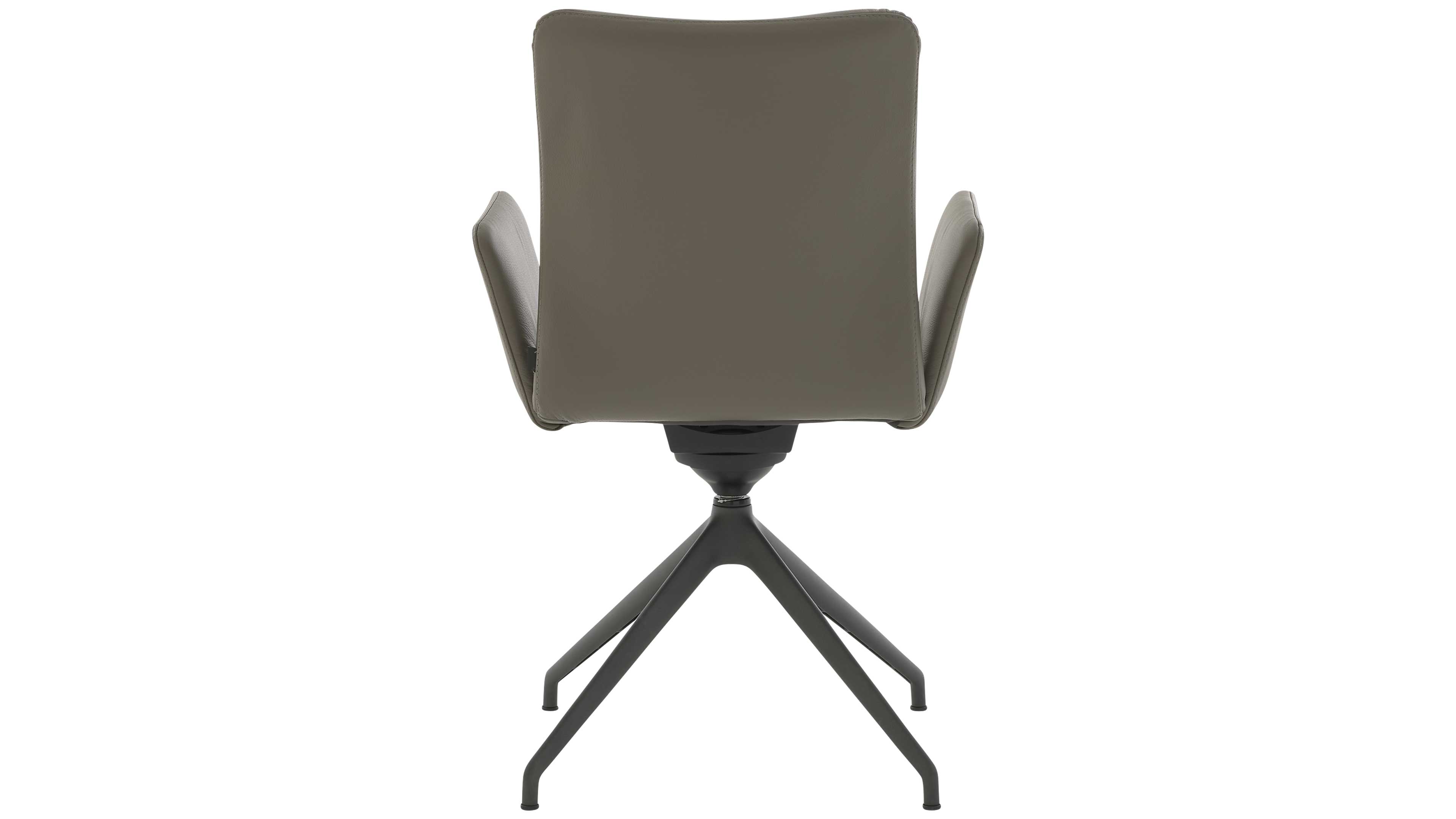 Das anthrazitfarben pulverbeschichtete Metallgestell sorgt für Stabilität und passt optisch ideal zum Leder. Dank 180-Grad-Drehfunktion mit Rückholmechanismus bleibst du flexibel und kannst dich mühelos drehen, ohne den Stuhl zu verrücken. Nach dem Aufstehen schwenkt der Stuhl sanft in seine Ausgangsposition zurück.