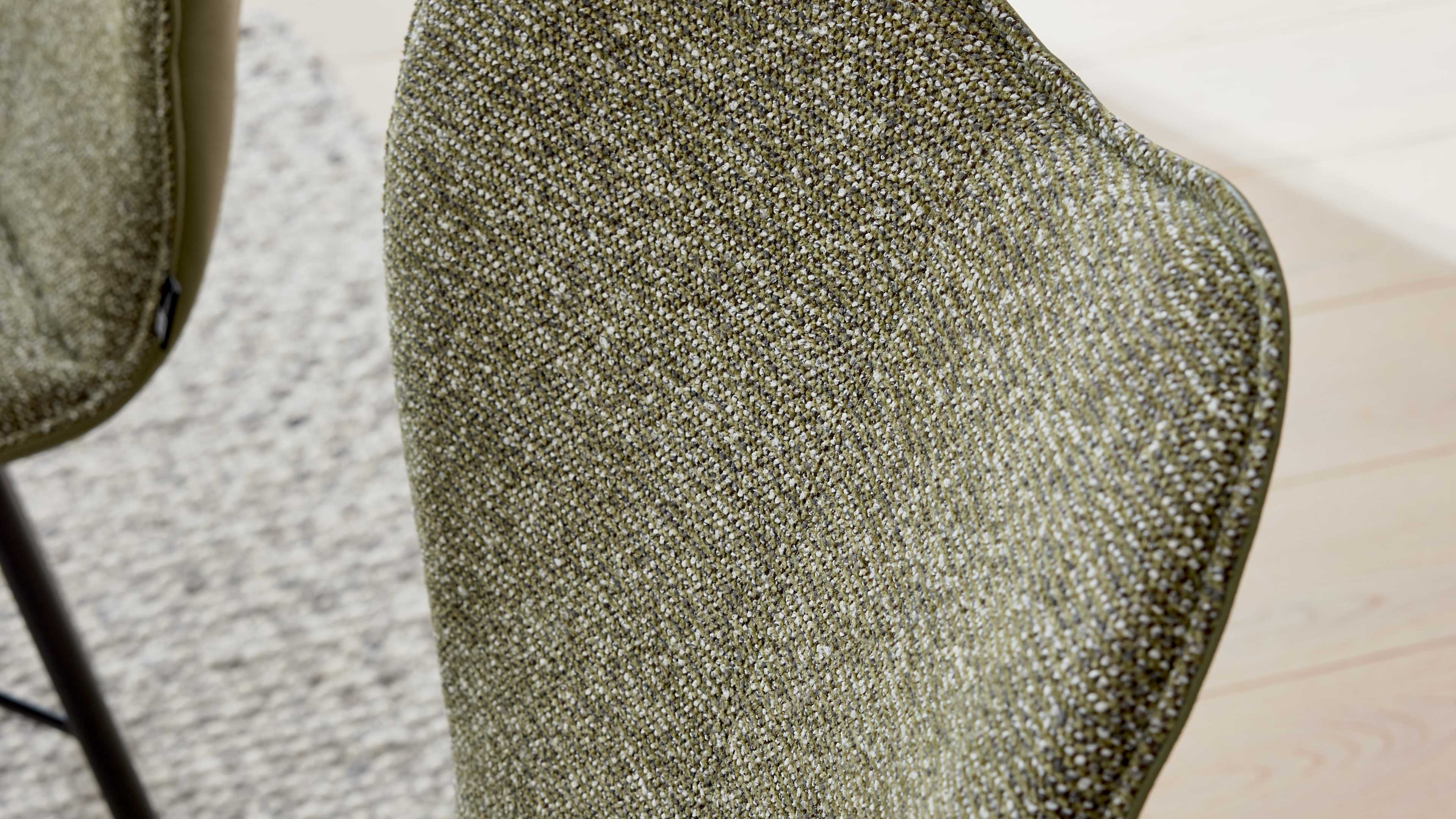 Der Vierfußstuhl aus der Interliving Esszimmer Serie 5115 verbindet modernen Komfort mit einem entspannten, wohnlichen Look. Die Kombination aus außen jadefarbenem Leder und innen moosfarben meliertem Stoff wirkt warm und einladend, während das umbragrau pulverbeschichtete Metall-Vierfußgestell für Stabilität und einen klaren, modernen Akzent sorgt. Die dezente Steppnaht in der Rückenlehne setzt dabei einen feinen, eleganten Akzent.