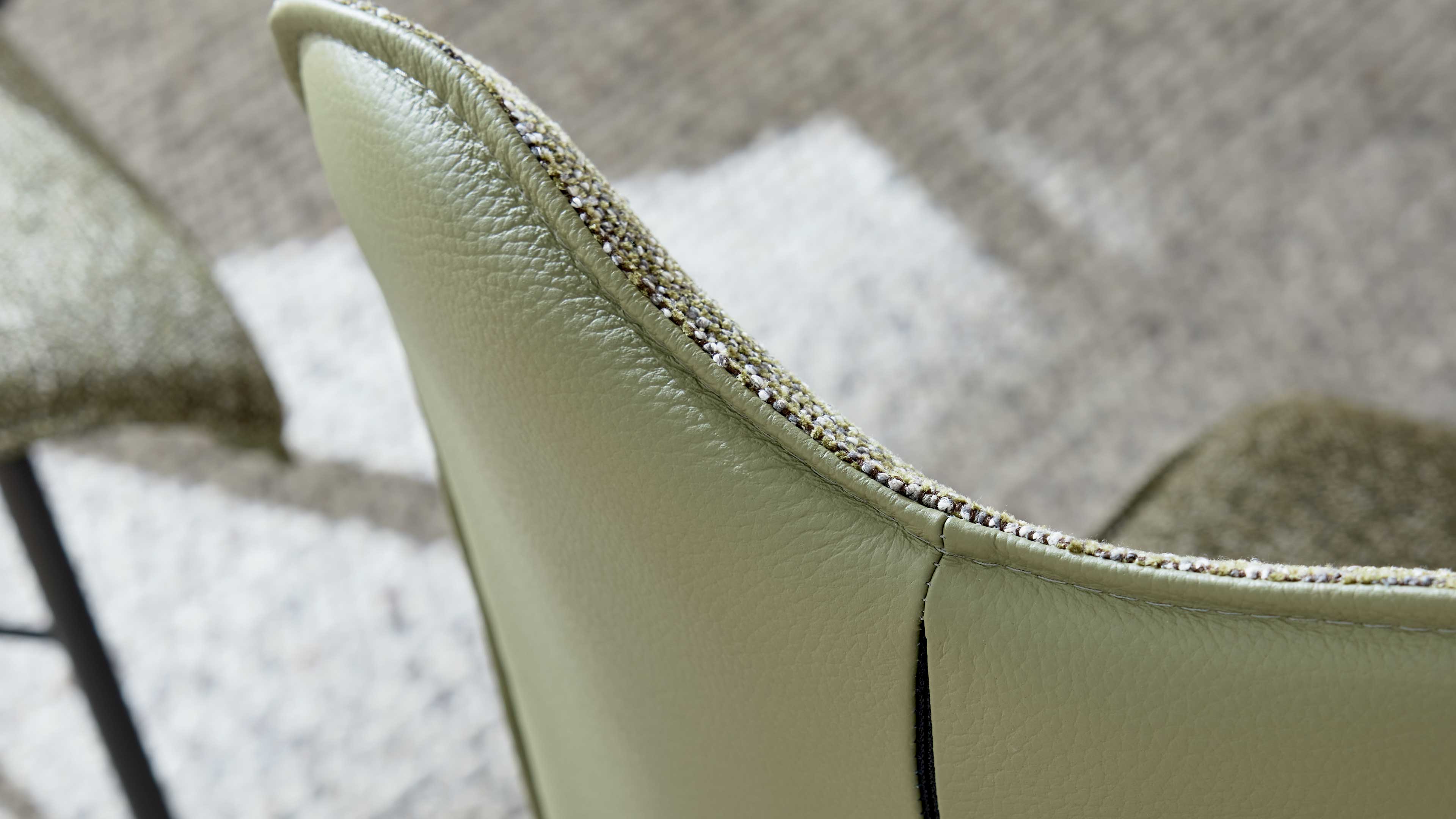 Auch beim Untergestell kannst du kreativ werden: Die Serie hält verschiedene Gestellvarianten für Tische und Stühle bereit, damit alles perfekt zusammenpasst. Die Stühle selbst bekommst du wahlweise mit oder ohne Drehfunktion, und bei den Bezügen hast du die Wahl zwischen Leder, Stoff oder einem modernen Materialmix.