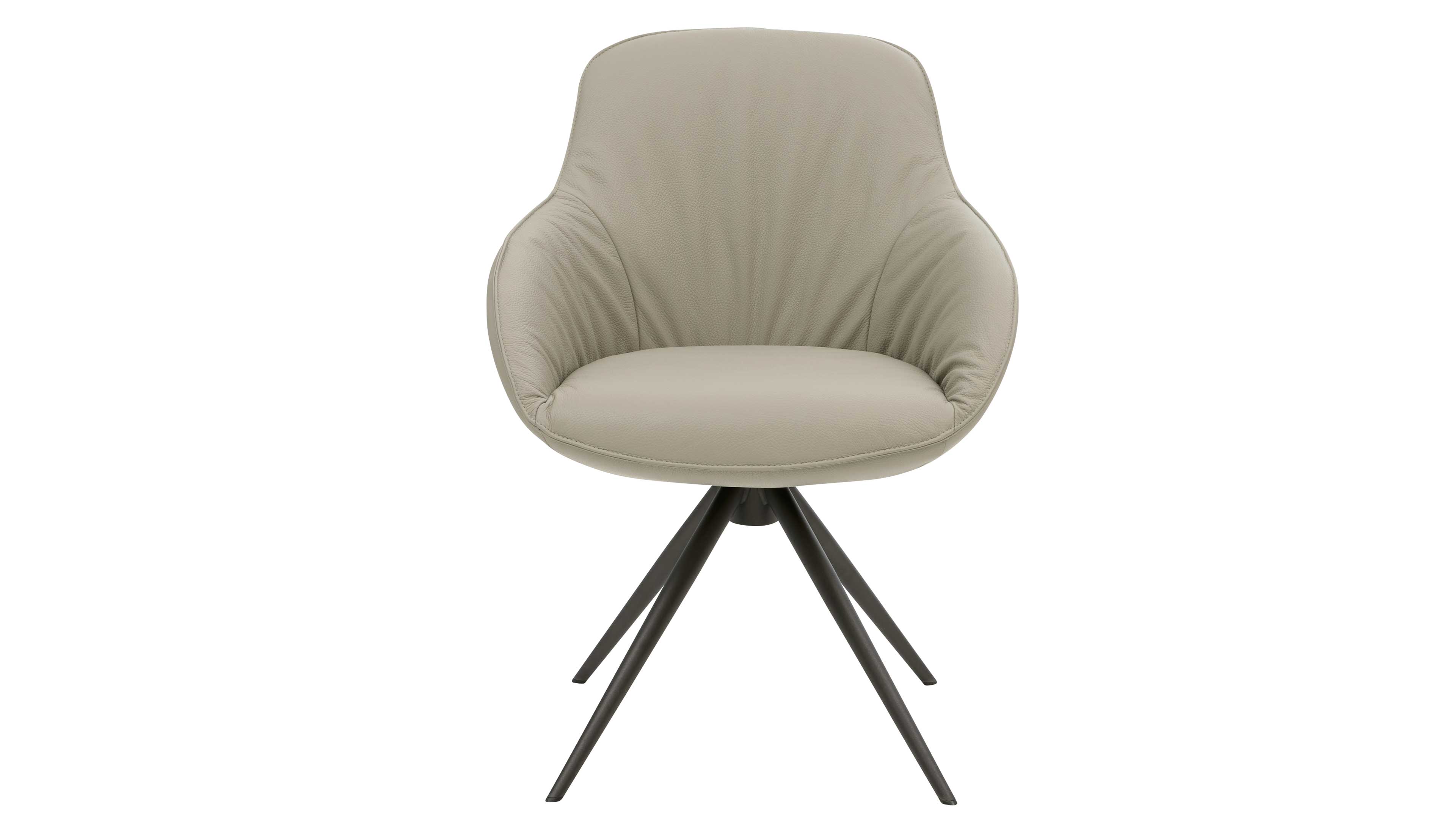 Moderner Drehstuhl mit Armlehnen und beigefarbenem Lederbezug