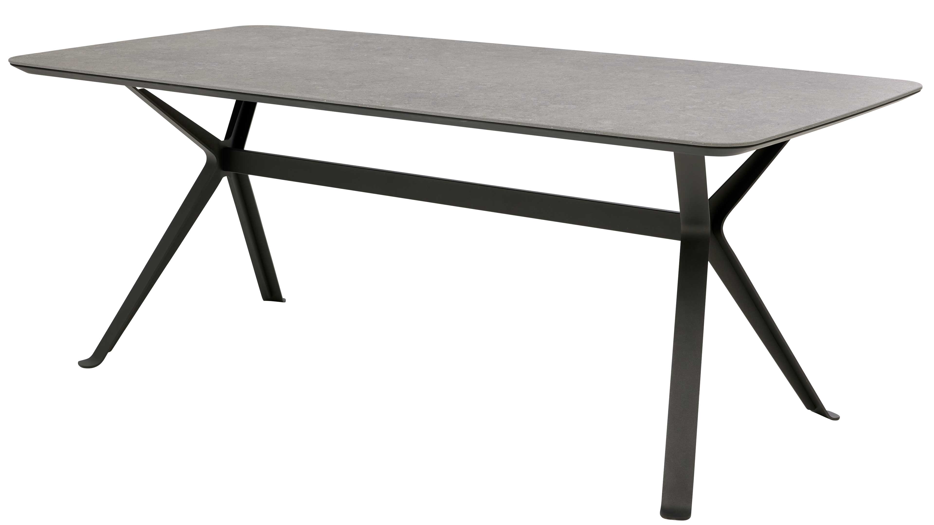 Moderner Esstisch mit grauer Keramikplatte und schwarz lackierten Metallbeinen