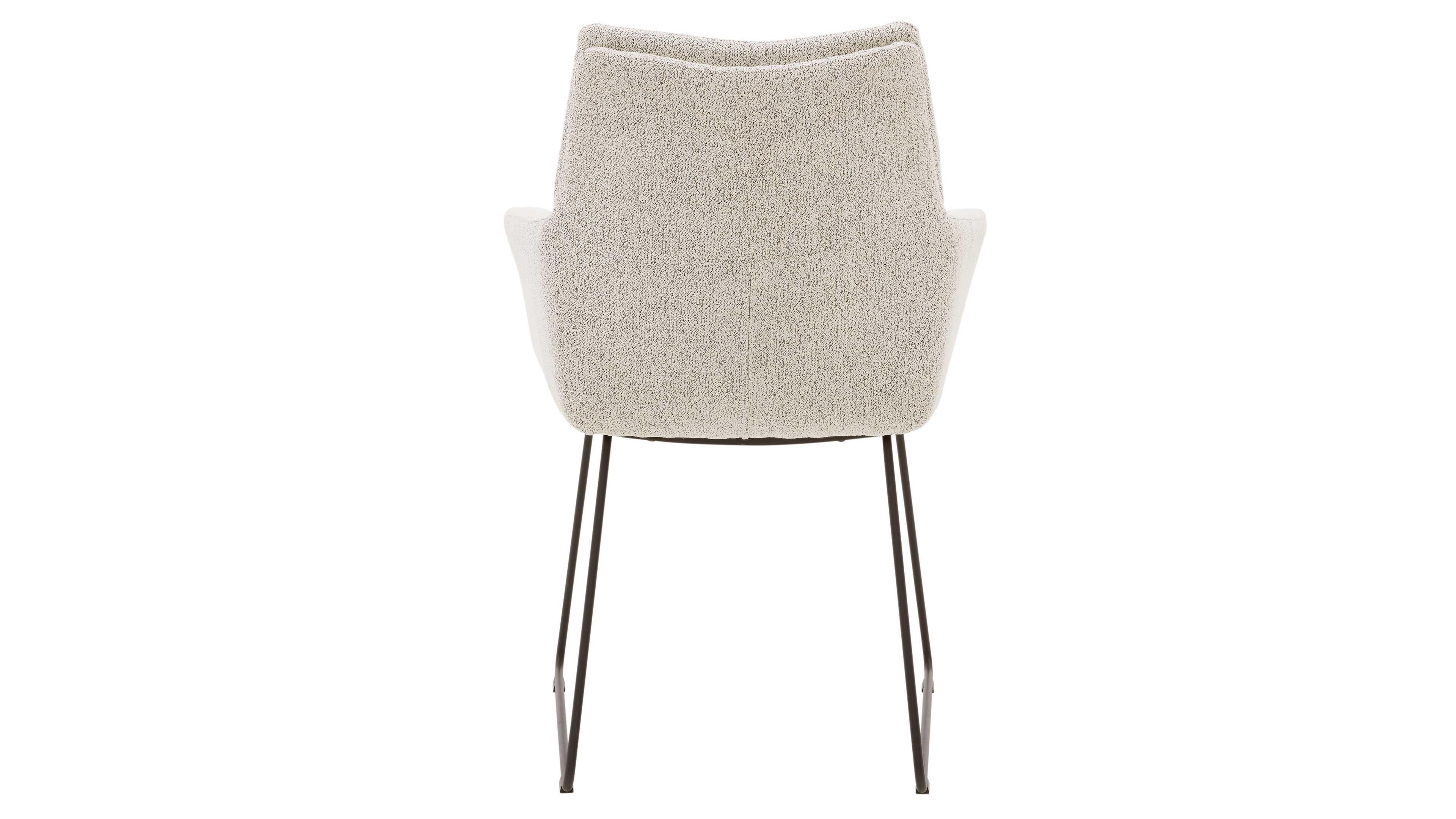 Polsterstuhl mit hoher Rückenlehne und Armlehnen in hellem Bouclé-Stoff