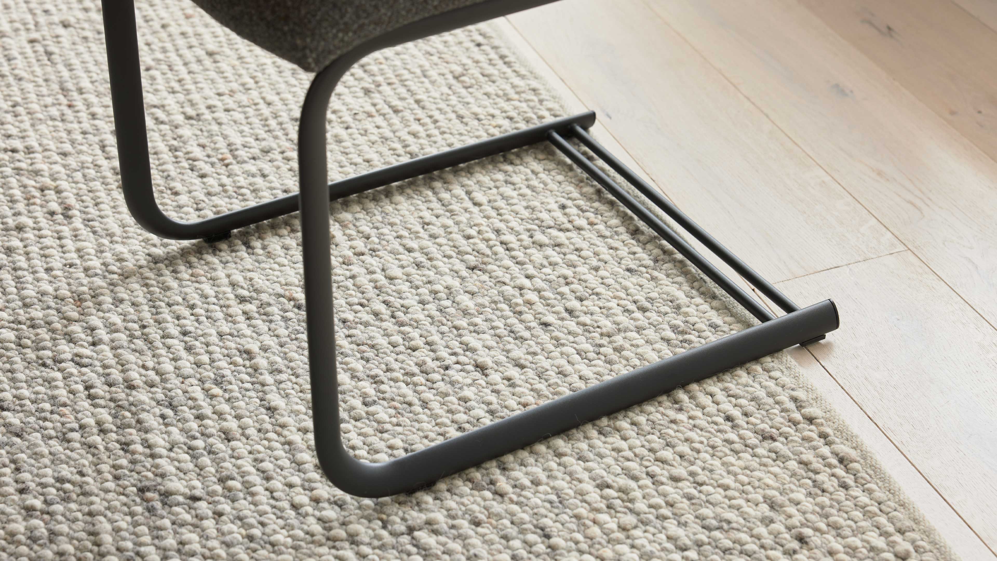 Mit einer Sitzhöhe von ca. 50 cm und Maßen von ca. 48 x 97 x 63 cm (BxHxT) bietet der Freischwinger ein angenehmes, ergonomisches Sitzgefühl. Die bequeme Polsterung und die weiche Haptik des hochwertigen Stoffbezugs sorgen für entspannte Stunden am Esstisch – ob beim Frühstück, Abendessen oder gemütlichen Beisammensein.