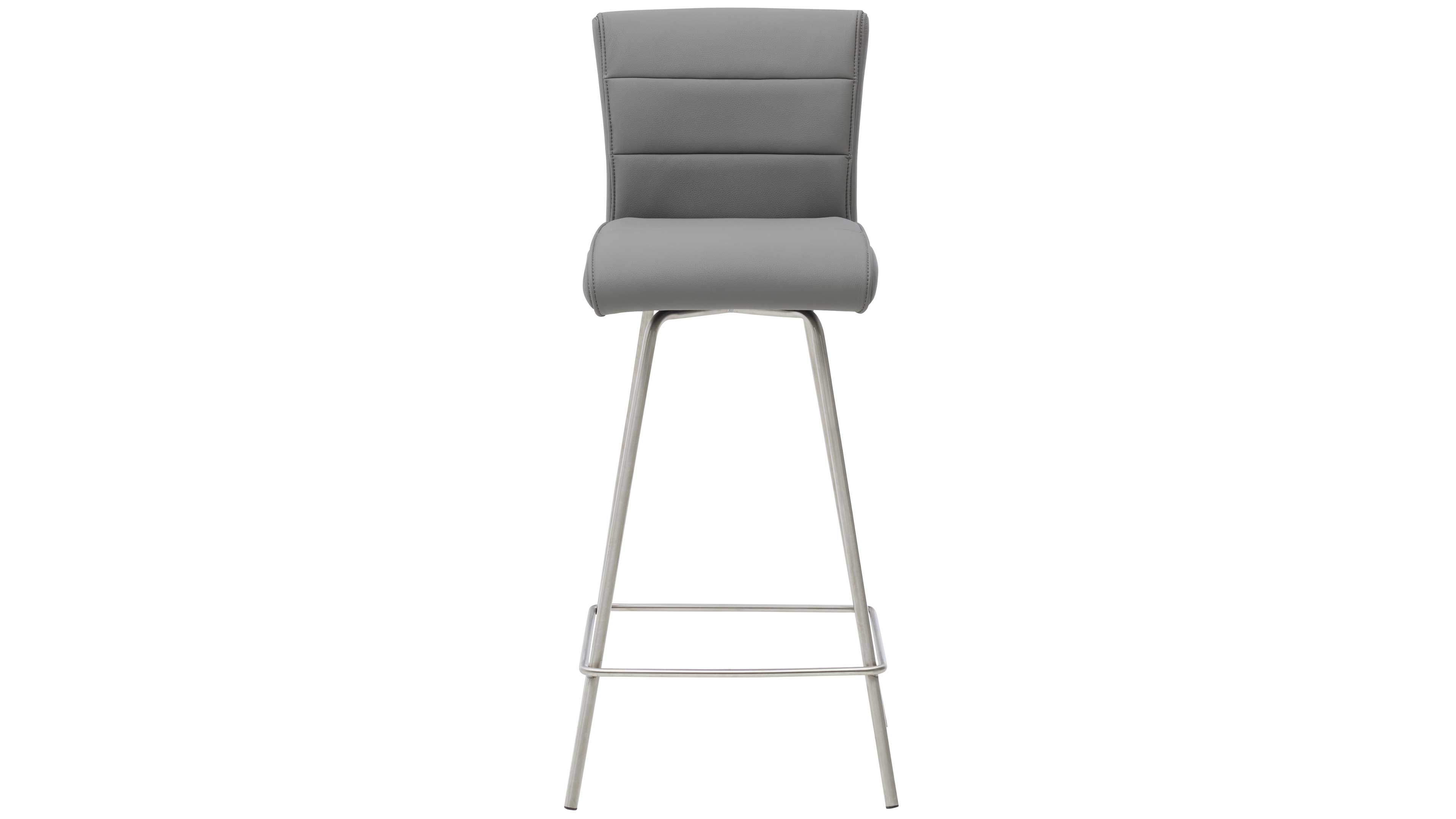 Barhocker mit grauem Bezug und Edelstahlgestell