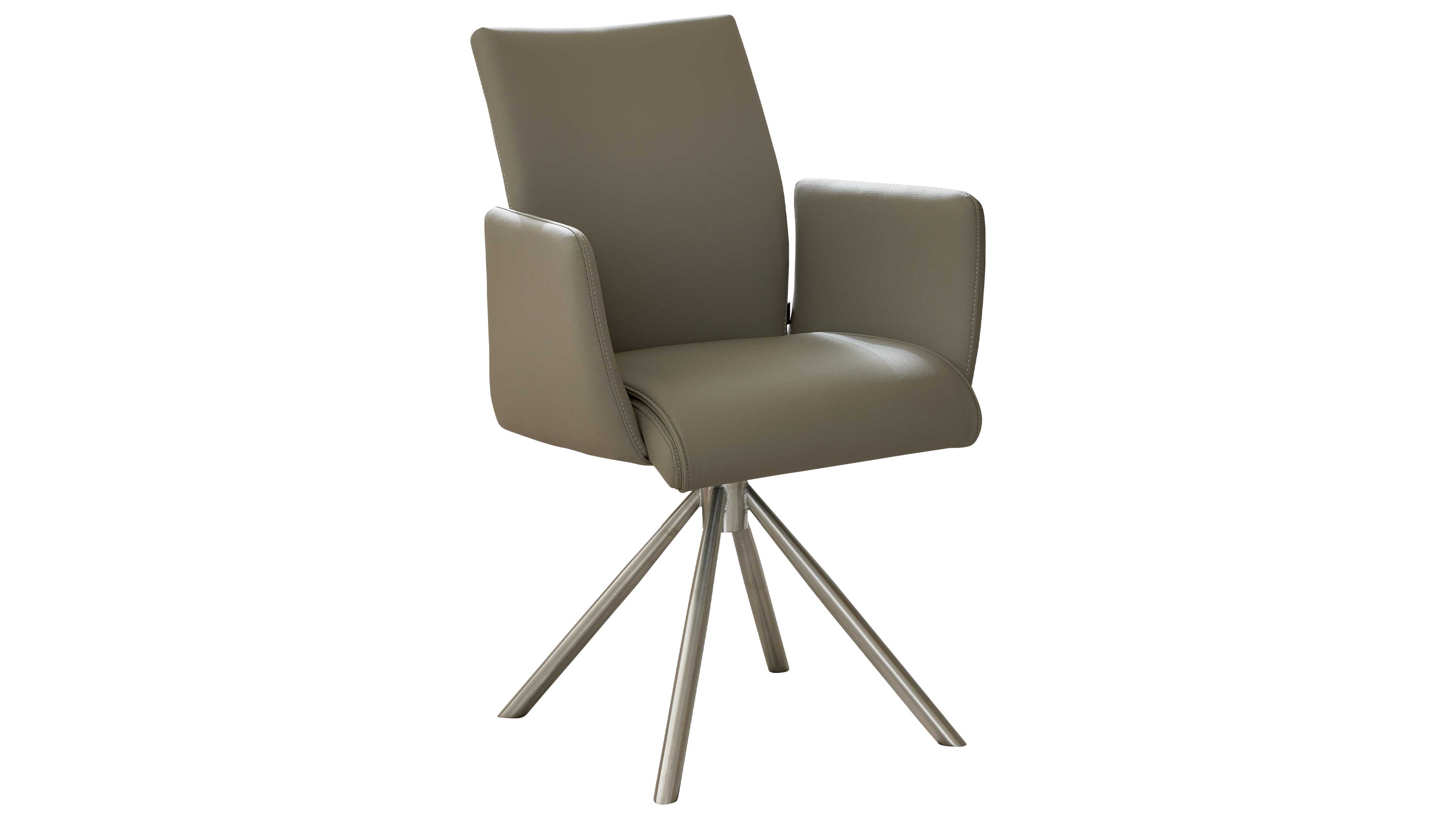 Der Armlehnstuhl aus der Interliving Esszimmer Serie 5122 ist die perfekte Kombination aus modernem Design, durchdachter Funktion und ergonomischem Komfort – für ein stilvolles, dynamisches Esszimmer. Mit seinem fangofarbenen Bezug aus LEA-TEX in Lederoptik und dem gebürsteten Edelstahlgestell ist dieser Dreh-Polsterstuhl ein echter Hingucker – und überzeugt auch funktional auf ganzer Linie.
