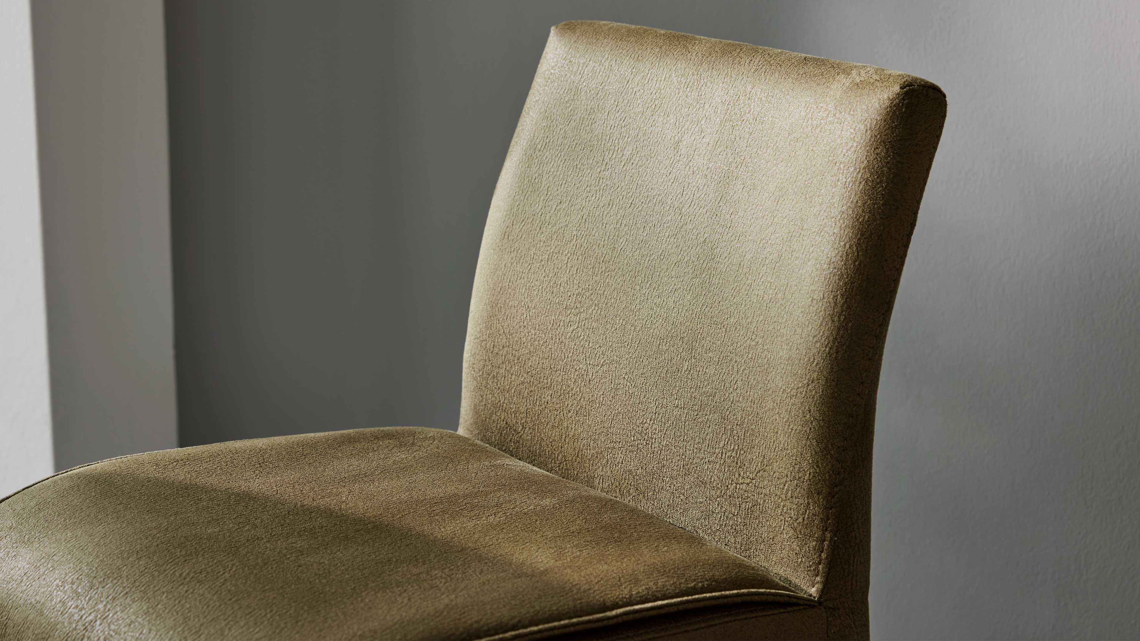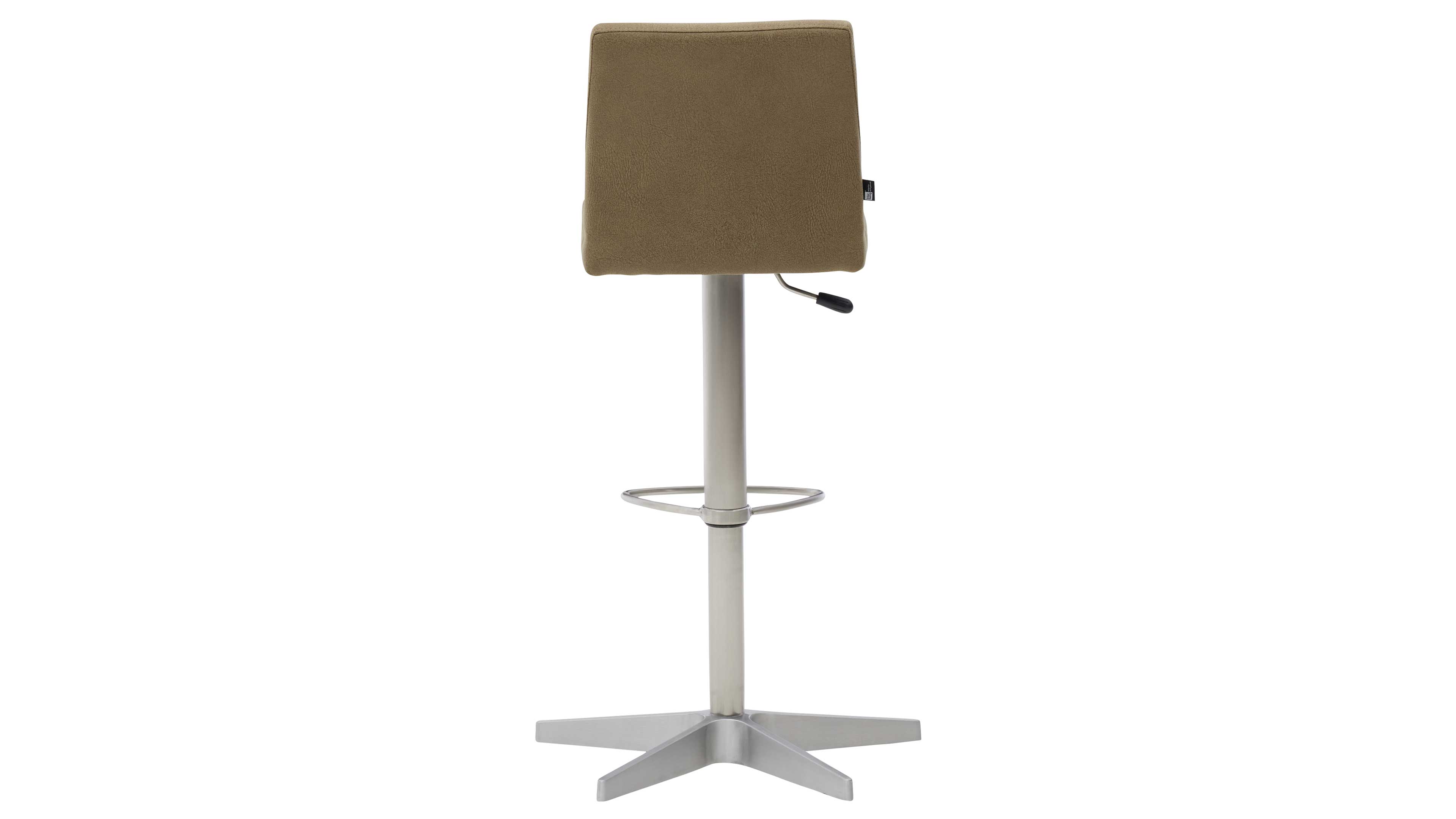 Der hochwertige Bezug in farngrüner Mikrofaser überzeugt durch seine weiche Haptik und leichte Pflege. In Kombination mit dem gebürsteten Edelstahlgestell und dem polierten Aluminium-Sternfuß entsteht ein eleganter Look mit moderner Leichtigkeit. Der integrierte Fußtritt auf ca. 35 cm Höhe sorgt zusätzlich für entspanntes Sitzen – auch über längere Zeit.