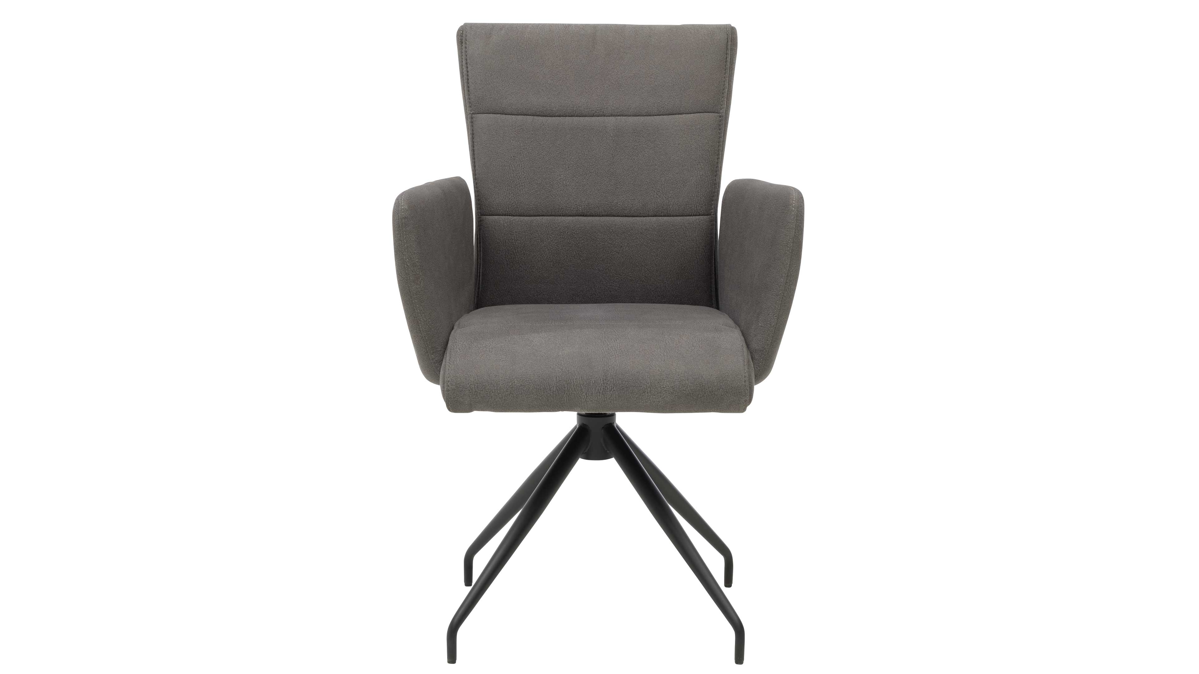 Armlehnsessel in elegantem Anthrazit mit weichem Bezug und filigranem, schwarzem Drehgestell