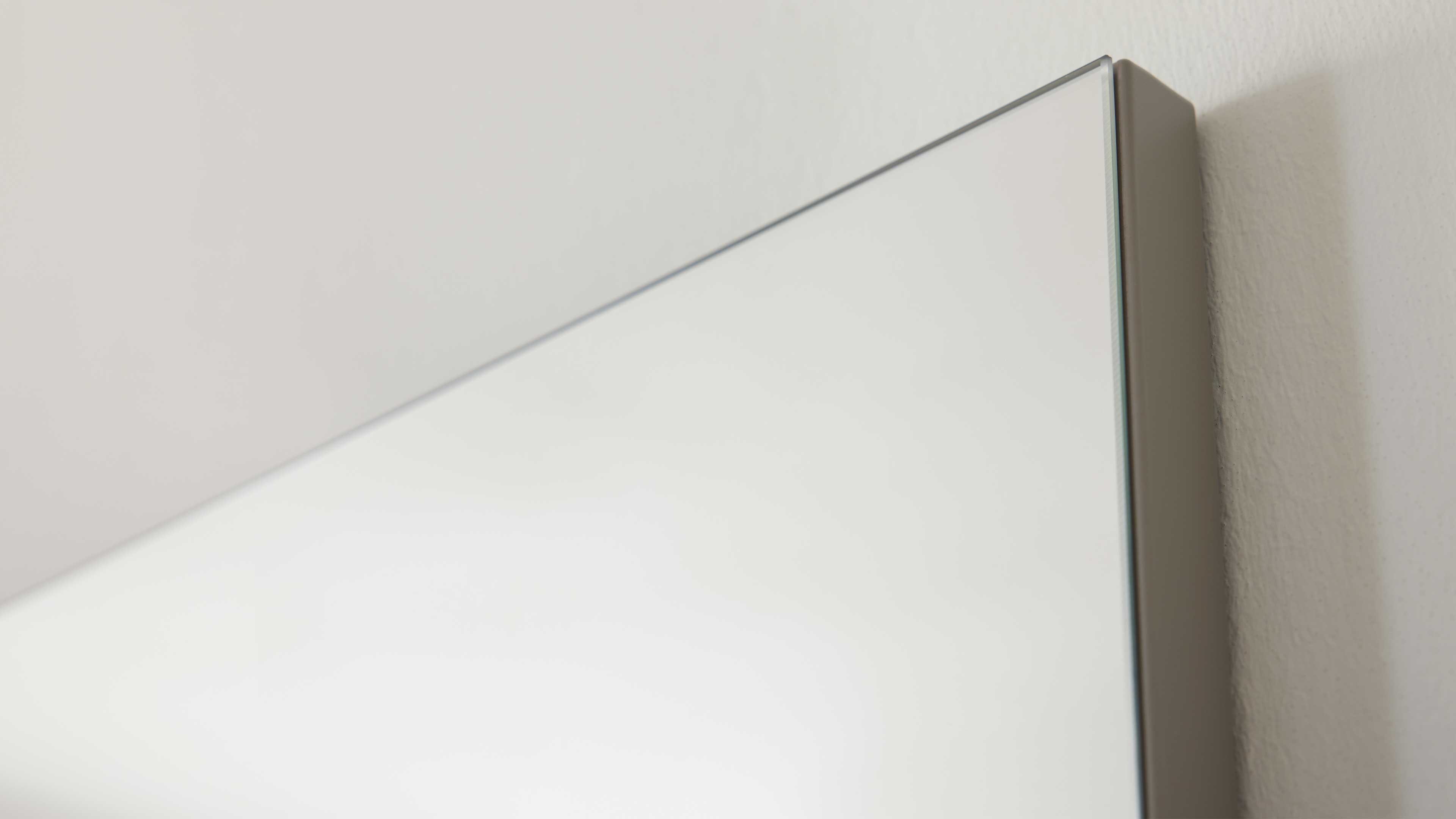 Der rahmenlose Wandspiegel mit Rückwand in graubeigem Mattlack bringt optische Weite und Helligkeit in den Flur. Ideal über der Schuhkommode platziert, unterstützt er den freundlichen Gesamteindruck des Sets.