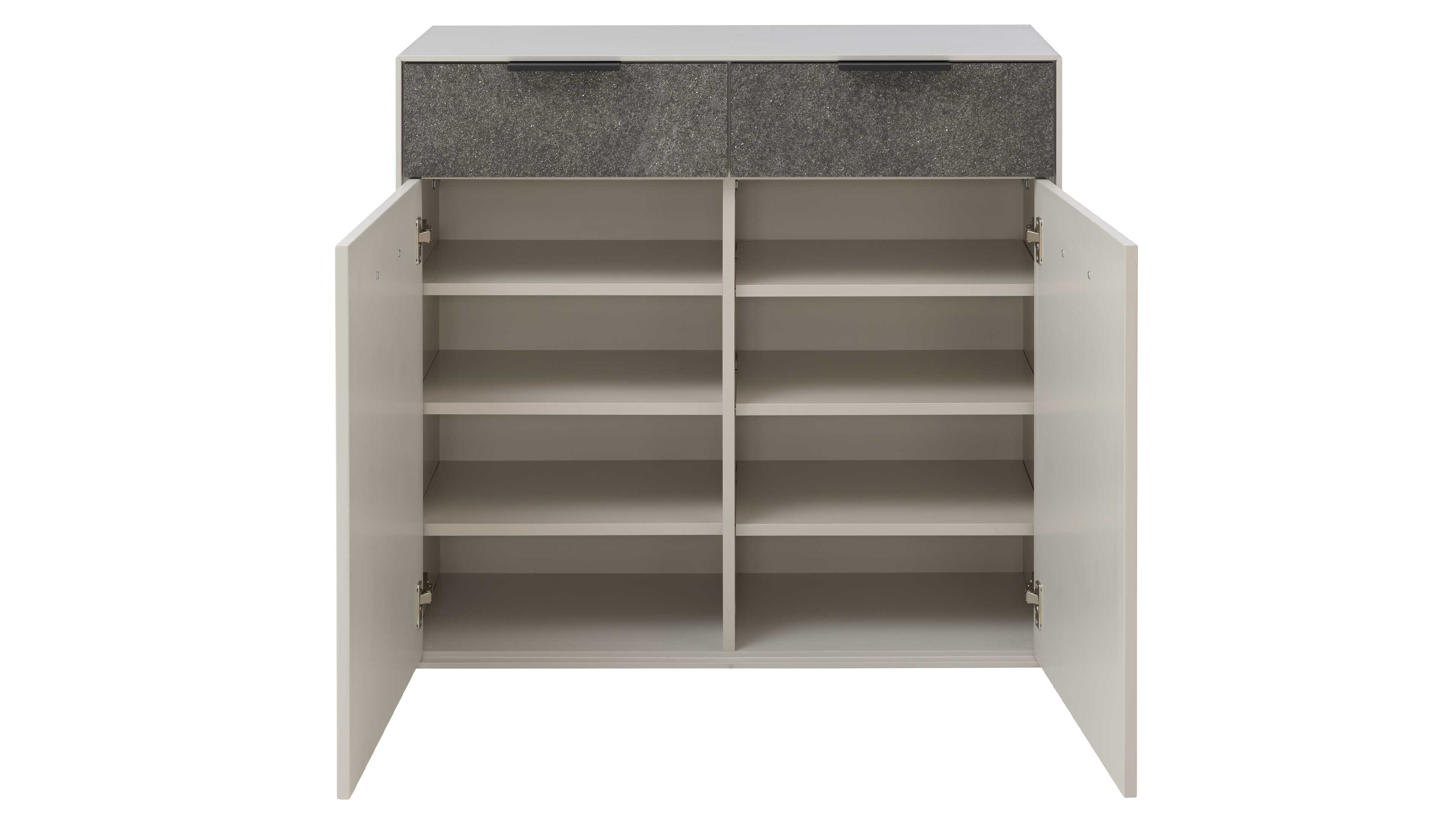 Dieses exklusive Garderoben-Set aus der Interliving Garderoben Serie 6013 vereint hochwertige Materialien mit funktionalem Design – perfekt für alle, die ihren Flur oder die Diele stilvoll und durchdacht einrichten möchten. Die matt lackierten Oberflächen in Sahara Creme harmonieren ideal mit edlem Granit-Steinfurnier. Mattschwarze Aluminiumgriffe und Kleiderhaken setzen moderne Akzente und unterstreichen das zeitgemäße Design dieses Dielenmöbel-Sets.