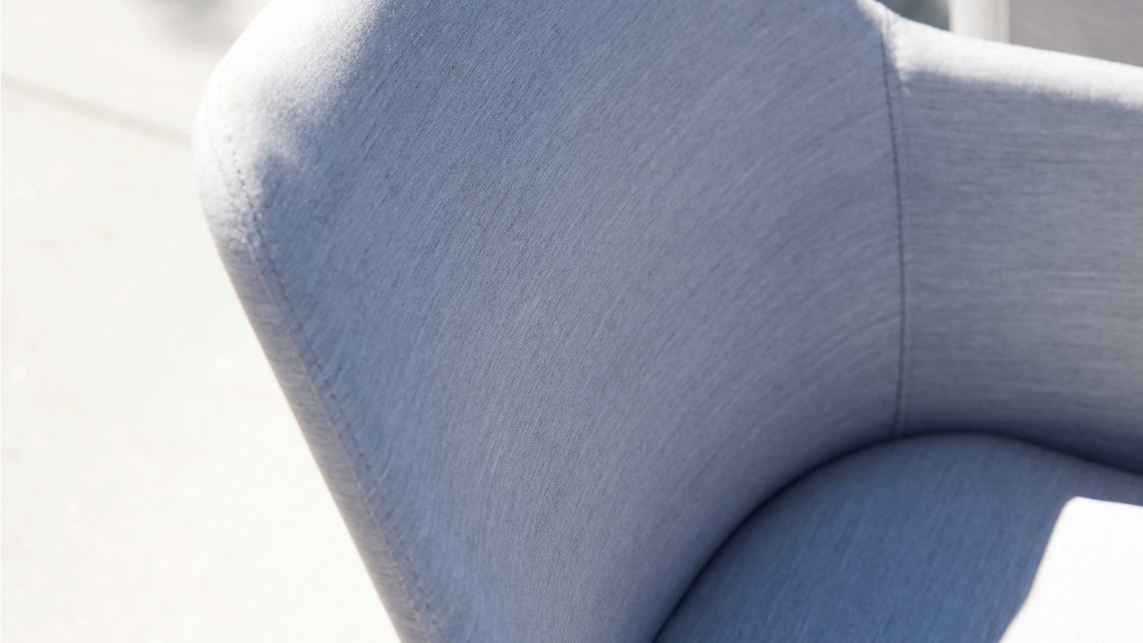 Der Bezug besteht aus spinndüsengefärbtem Garn, bei dem die Farbpigmente bereits während der Faserherstellung tief und dauerhaft eingebettet werden. Dadurch ist der Stoff lichtecht, UV-beständig, resistent gegen Alterungsvergilbung sowie schmutz- und wasserabweisend. Selbst bei intensiver Sonneneinstrahlung behält er seine Farbe – und bleibt gleichzeitig robust, pflegeleicht und langlebig.