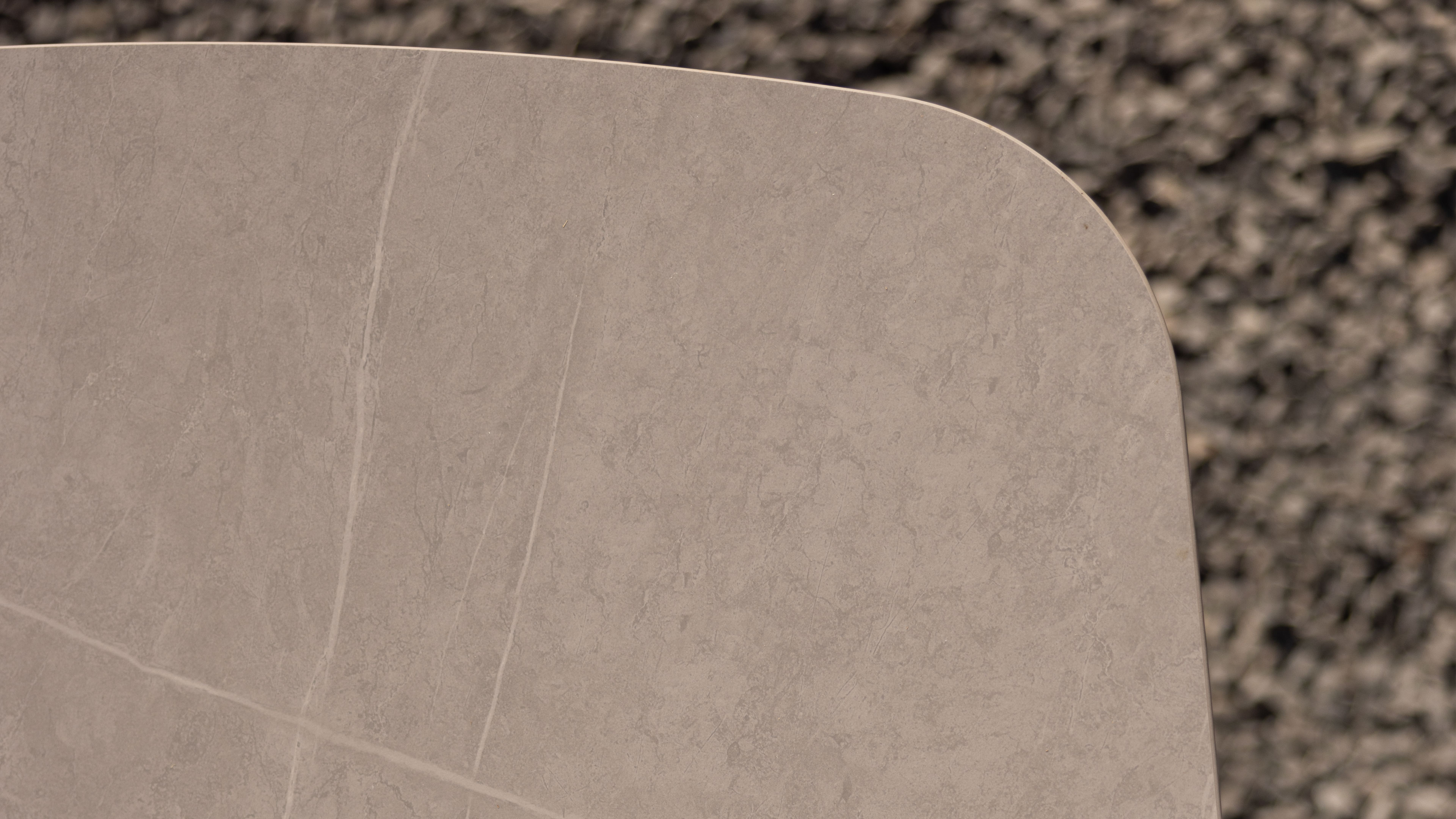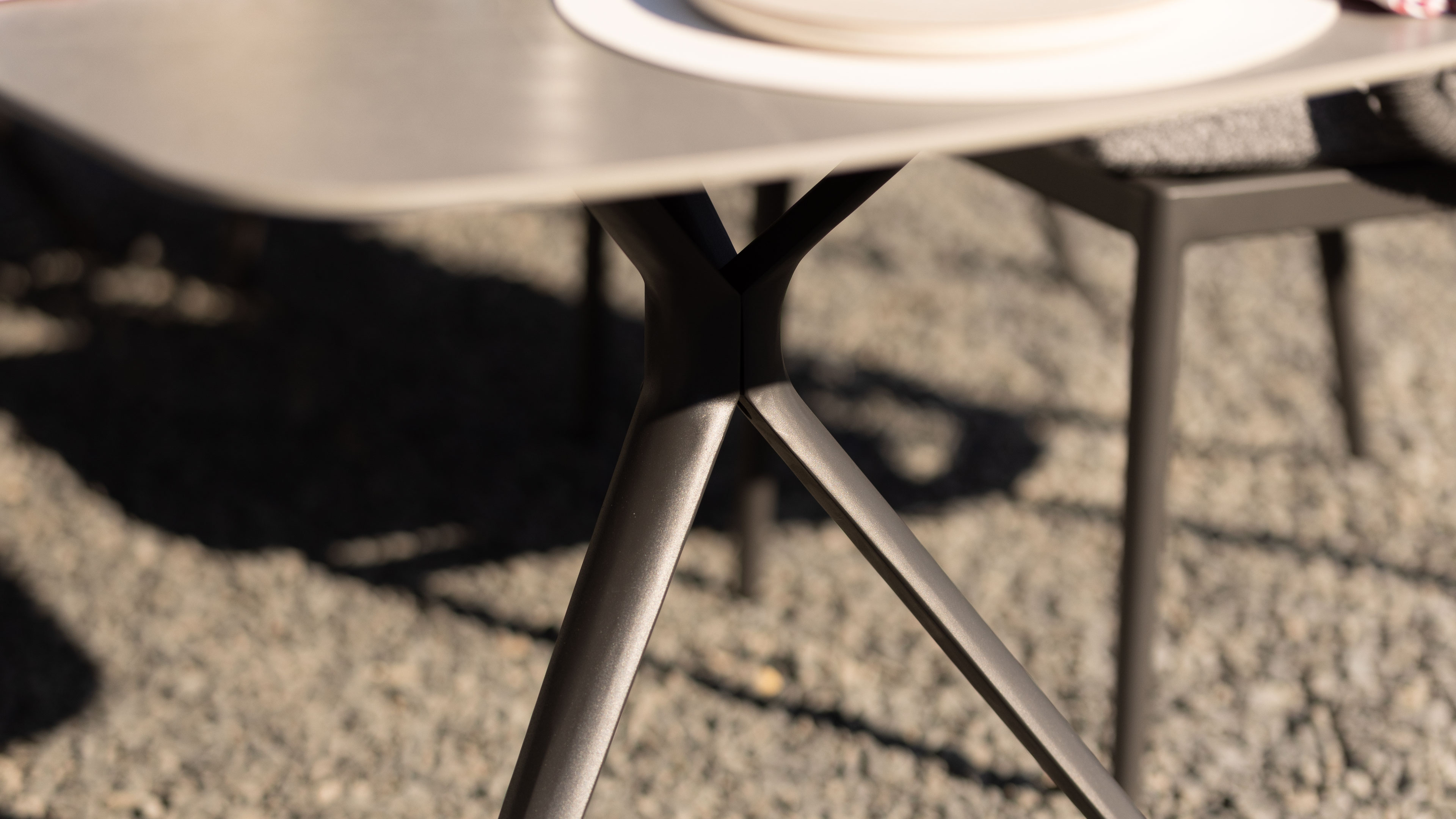Die Tischplatte aus grauem gesintertem Stein (Sintered Stone) bietet nicht nur eine edle Optik, sondern überzeugt durch extreme Belastbarkeit. Kratzfest, stoßfest, UV- und farbbeständig sowie wetterfest – das Material ist wie gemacht für den dauerhaften Einsatz im Freien. Damit eignet sich der Gartentisch ideal für wechselnde Wetterbedingungen und intensive Nutzung.
