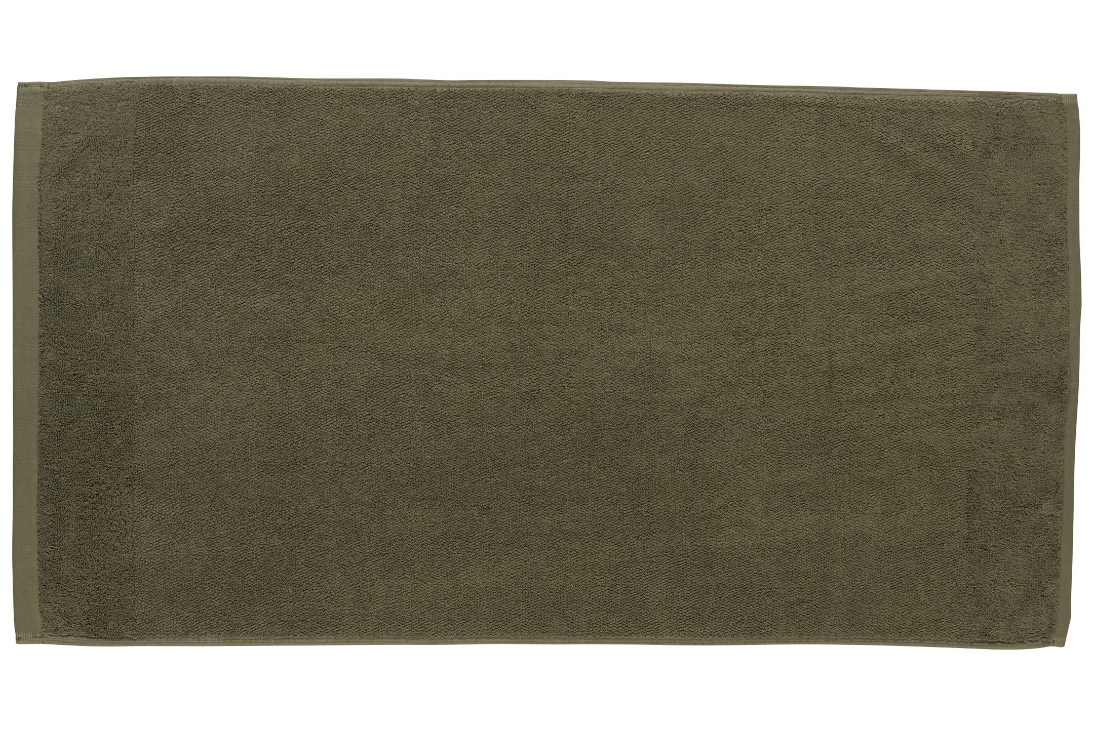 Das Handtuch aus der Interliving Handtuch Serie 9108 besteht aus olivfarbene Baumwolle.