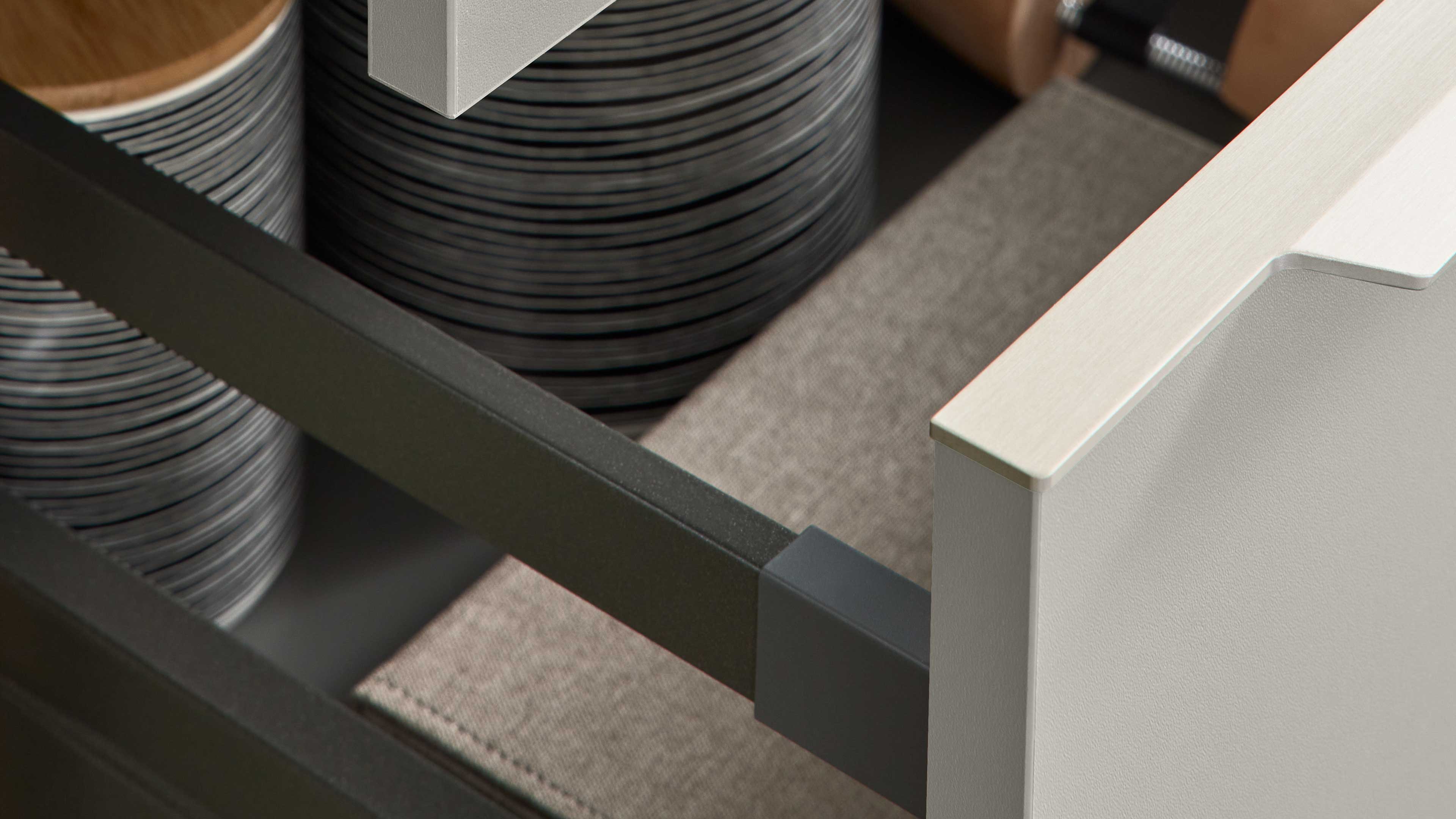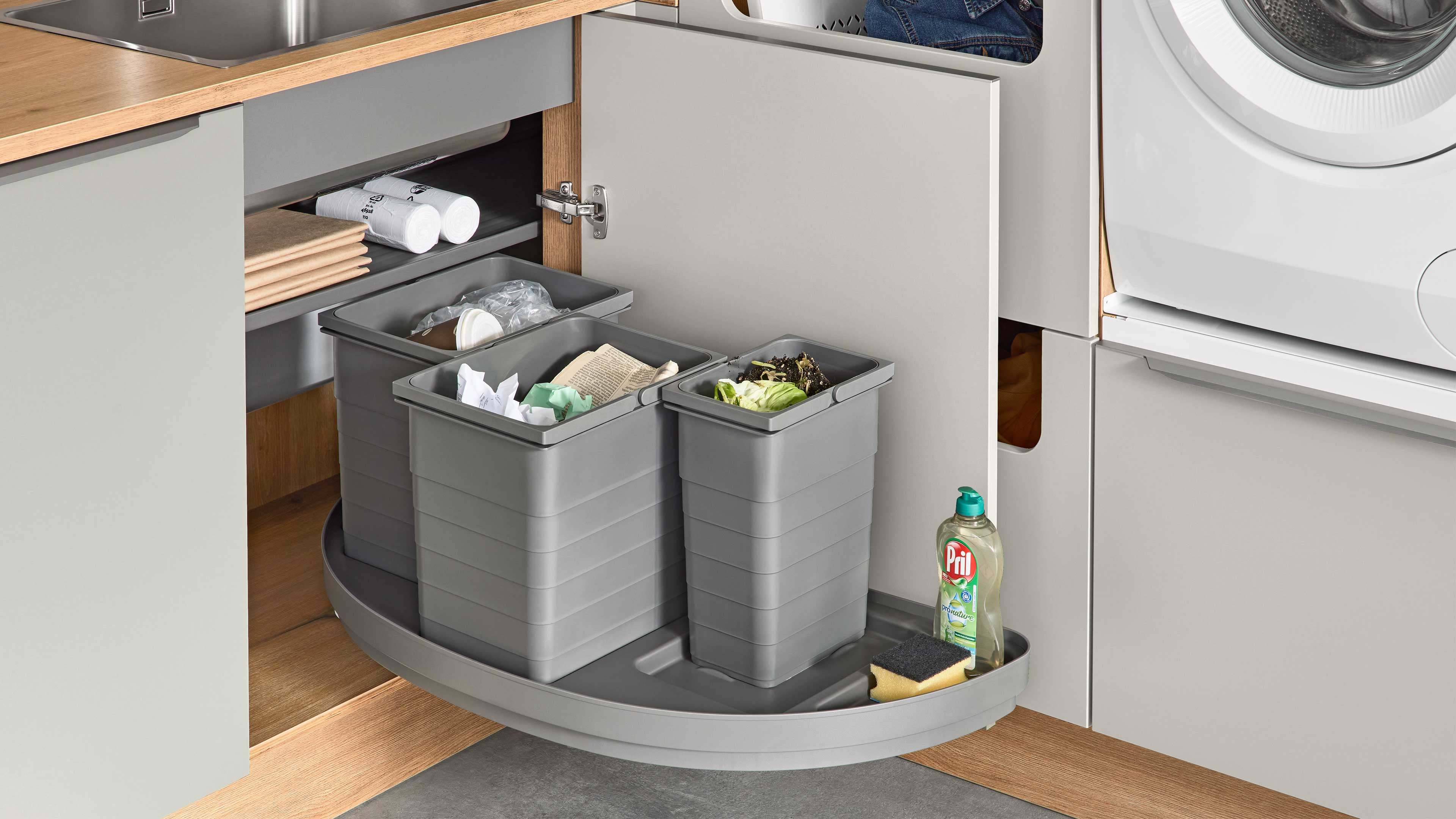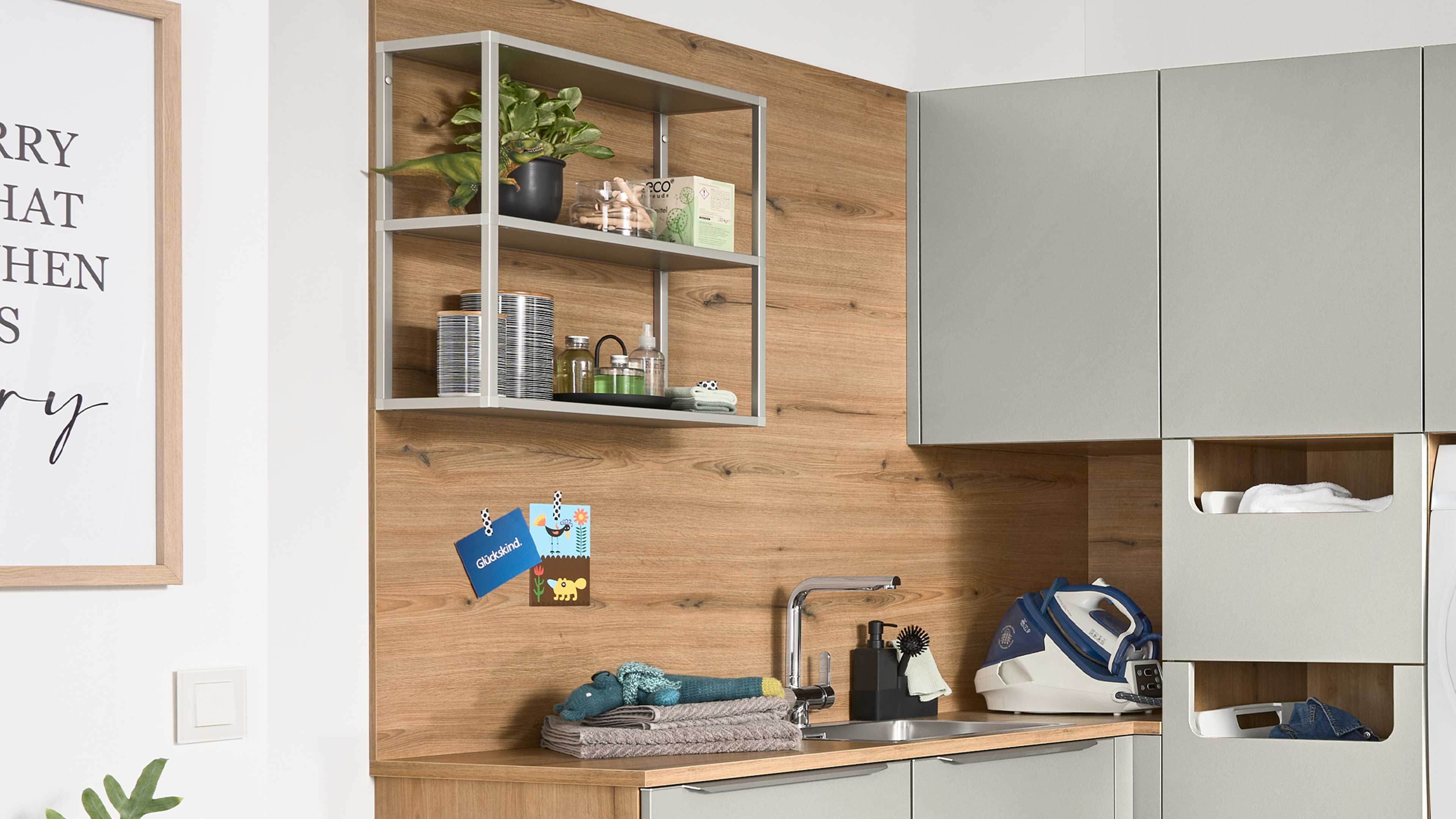 Kombiniere die Hauswirtschaftsmöbel mit passenden Vorratsraumelementen oder erweitere sie um zusätzliche Stauraumlösungen, um noch mehr Struktur in dein Zuhause zu bringen.