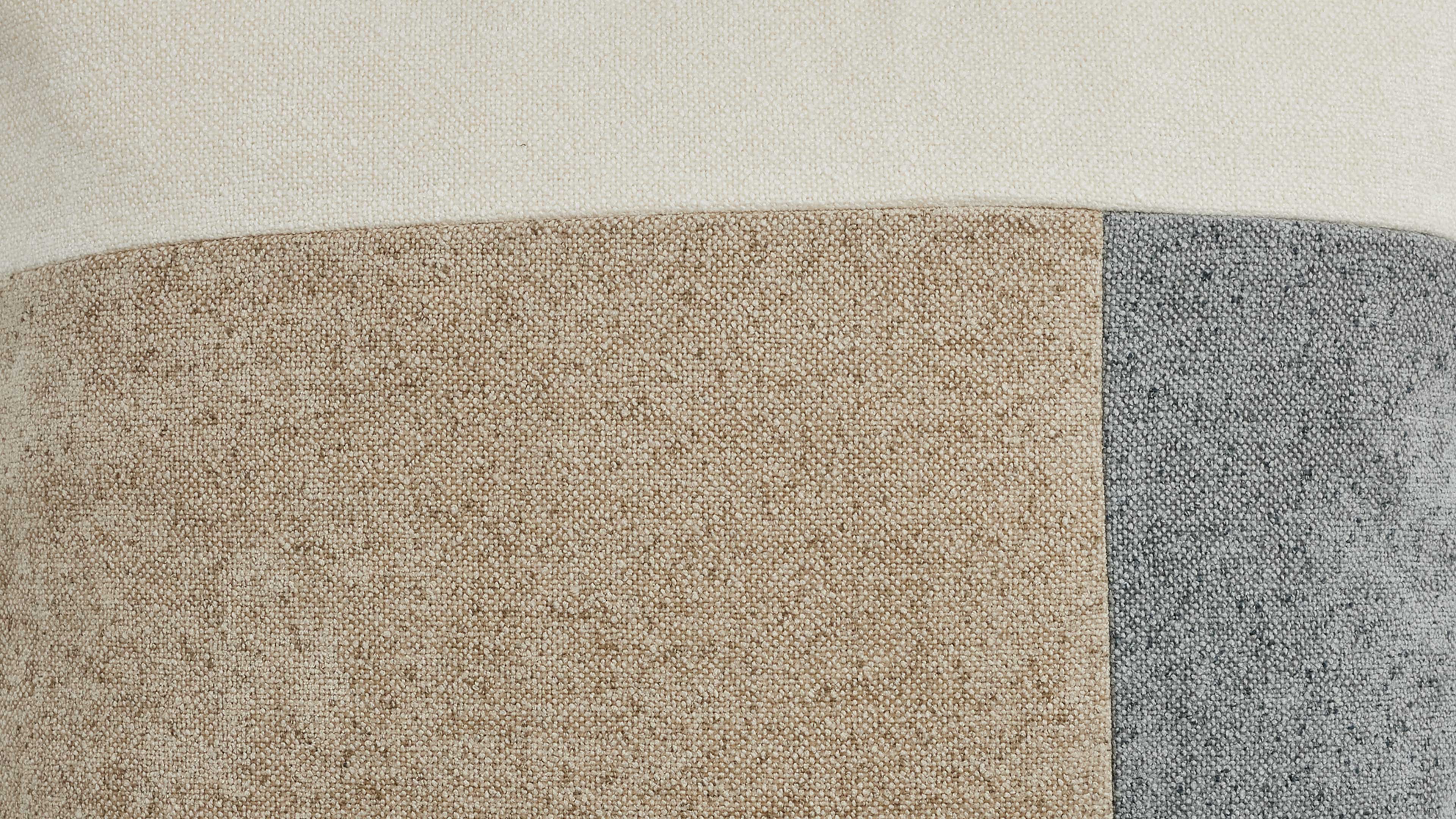 Die Vorderseite der Kissenhülle zeigt mehrfarbige Farbblöcke aus fester Chenille, die eine lebendige, aber zugleich ausgewogene Optik schaffen. Die Rückseite aus weichem Mikrosamt fühlt sich angenehm an und überzeugt mit einem verdeckten Reißverschluss, der ein sauberes Erscheinungsbild und einfaches Beziehen ermöglicht.