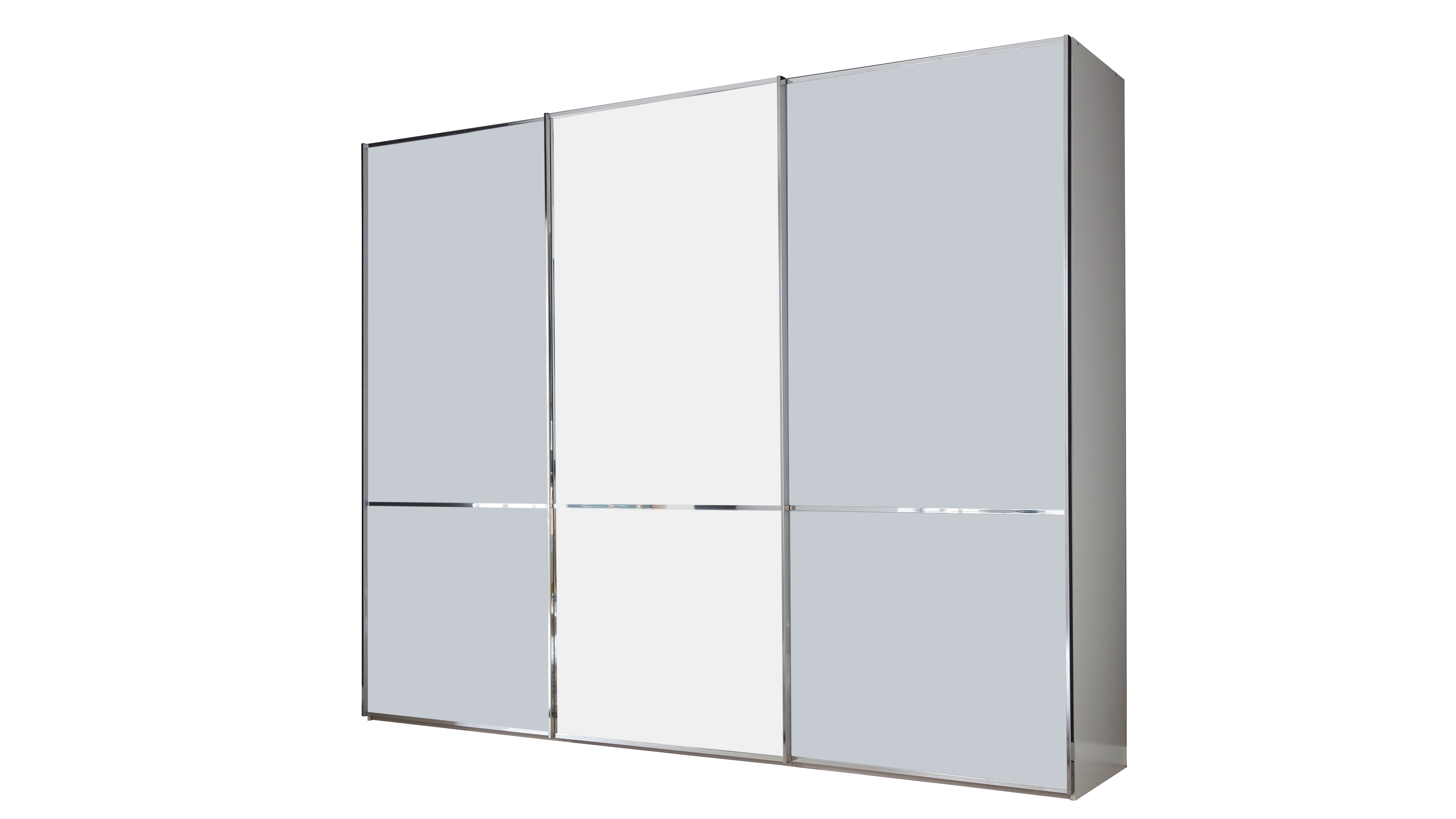 Schwebetürenschrank mit Glasfront in Weiß und Spiegelelement