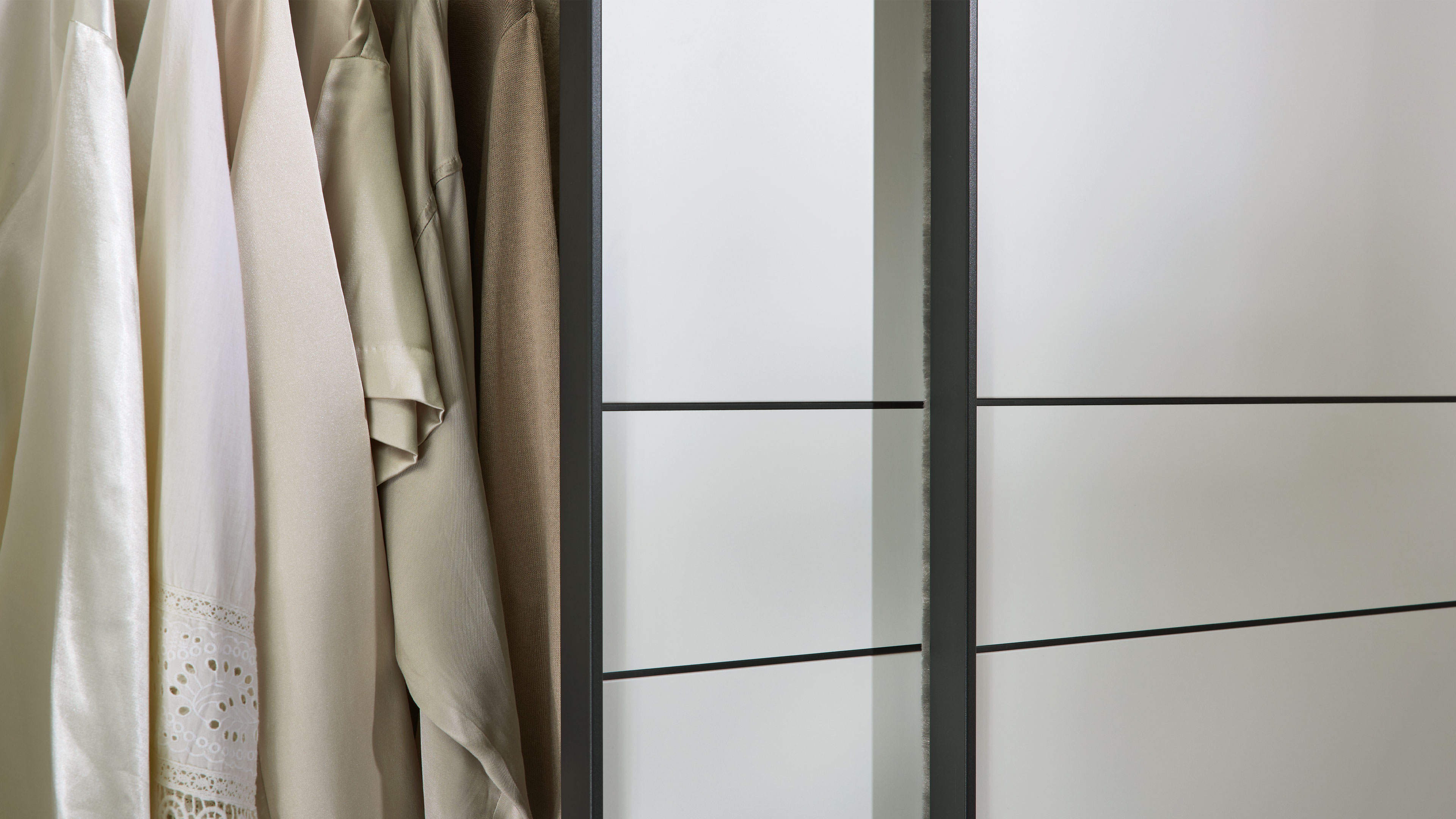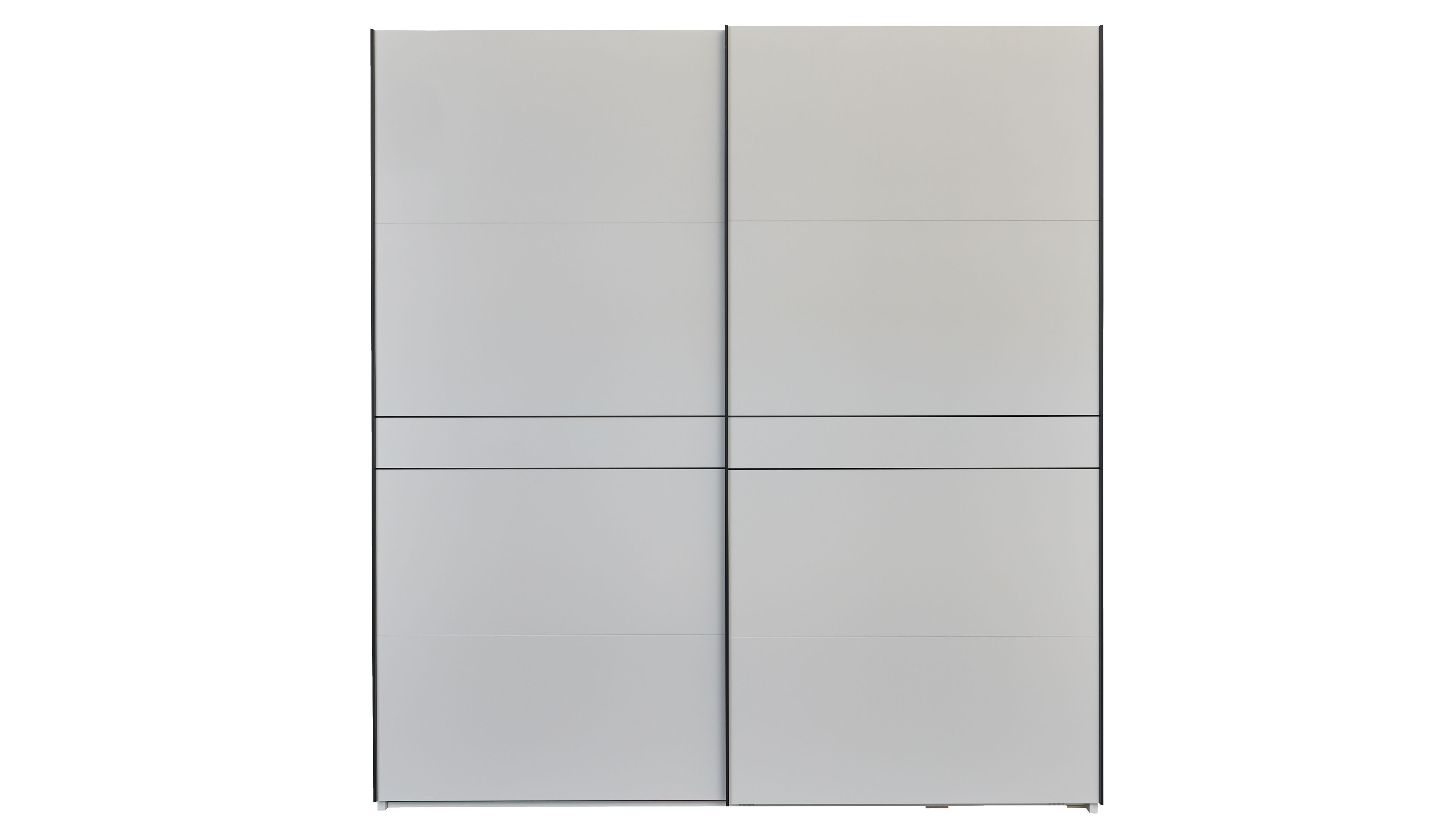 Schwebetürenschrank in Weiß mit anthrazitfarbenem Rahmen