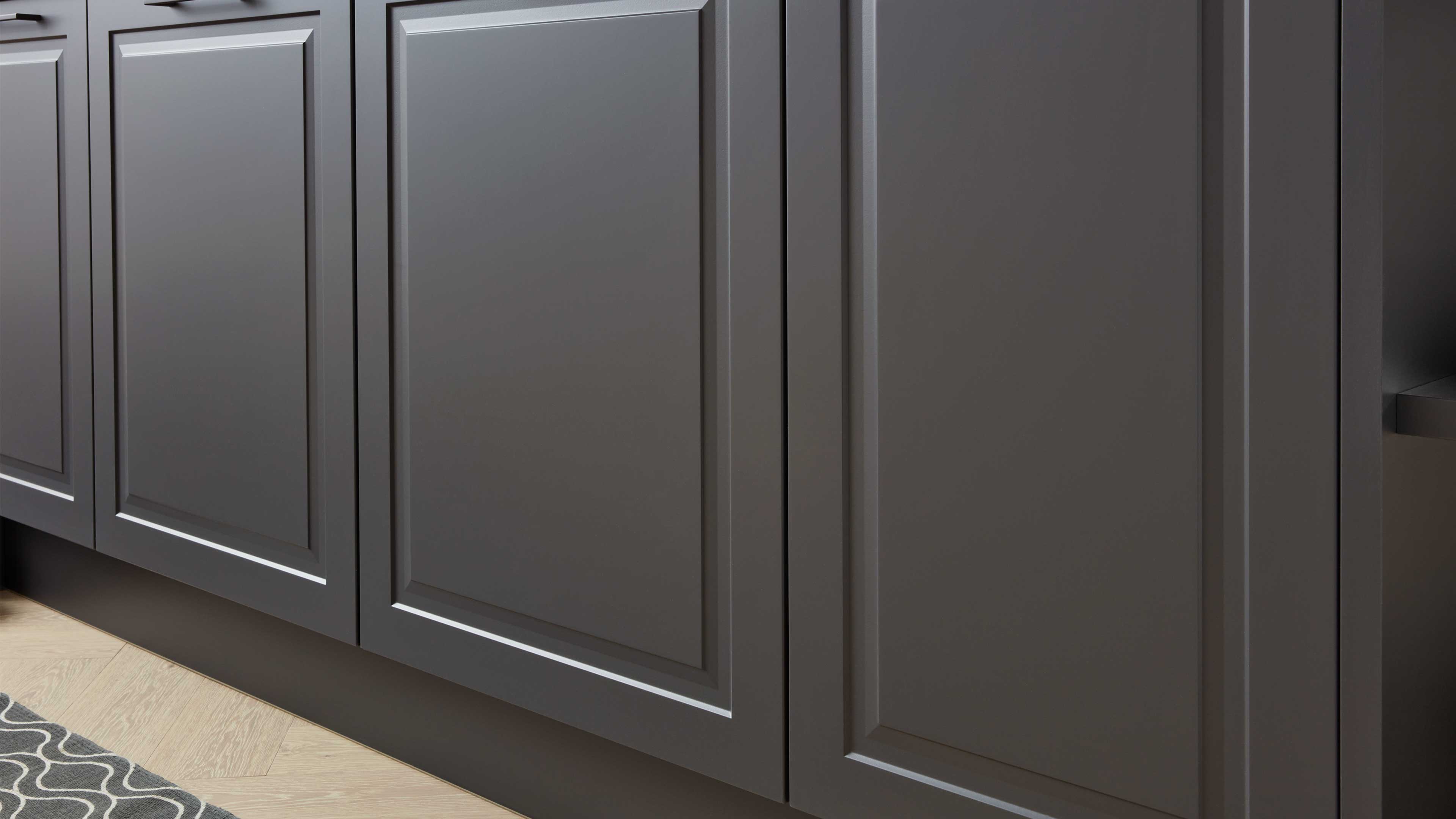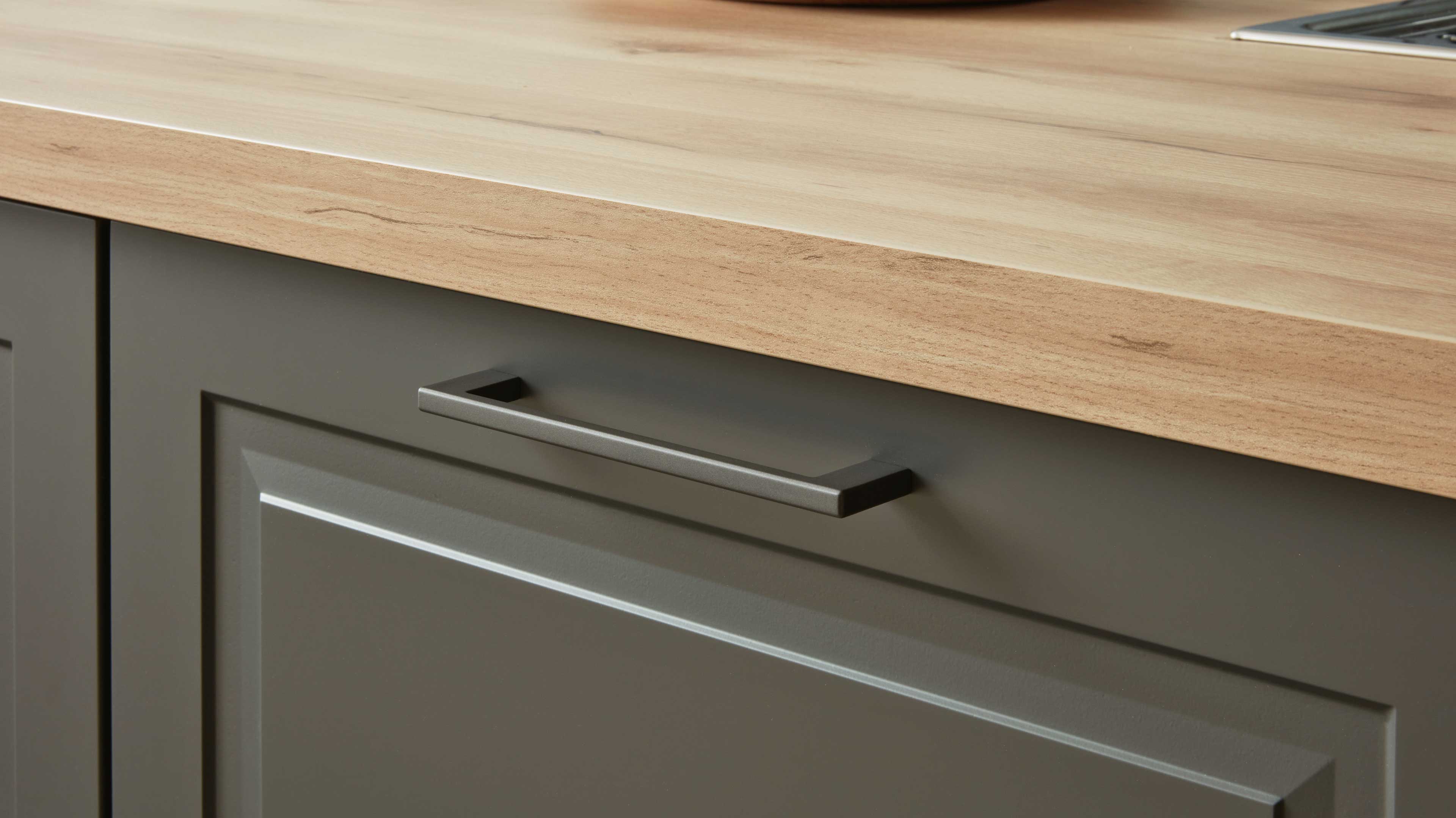 Die Interliving Küche Serie 3044 vereint modernen Landhauscharme mit natürlicher Wärme. Ihre graphitfarbenen Landhausfronten wirken edel und zeitlos, während die Kernbuche-Nachbildung bei Arbeitsplatten und Nischenrückwänden für eine behagliche Note sorgt. Korpusse und Sockelblenden in Graphit unterstreichen die elegante Wirkung, und die Regale in beiden Farbtönen fügen sich harmonisch ins Gesamtbild ein. Stilvolle Milchglasfronten bei den Oberschränken setzen zusätzliche Akzente, während softmatt graphitfarbene Griffe den Look perfekt abrunden.