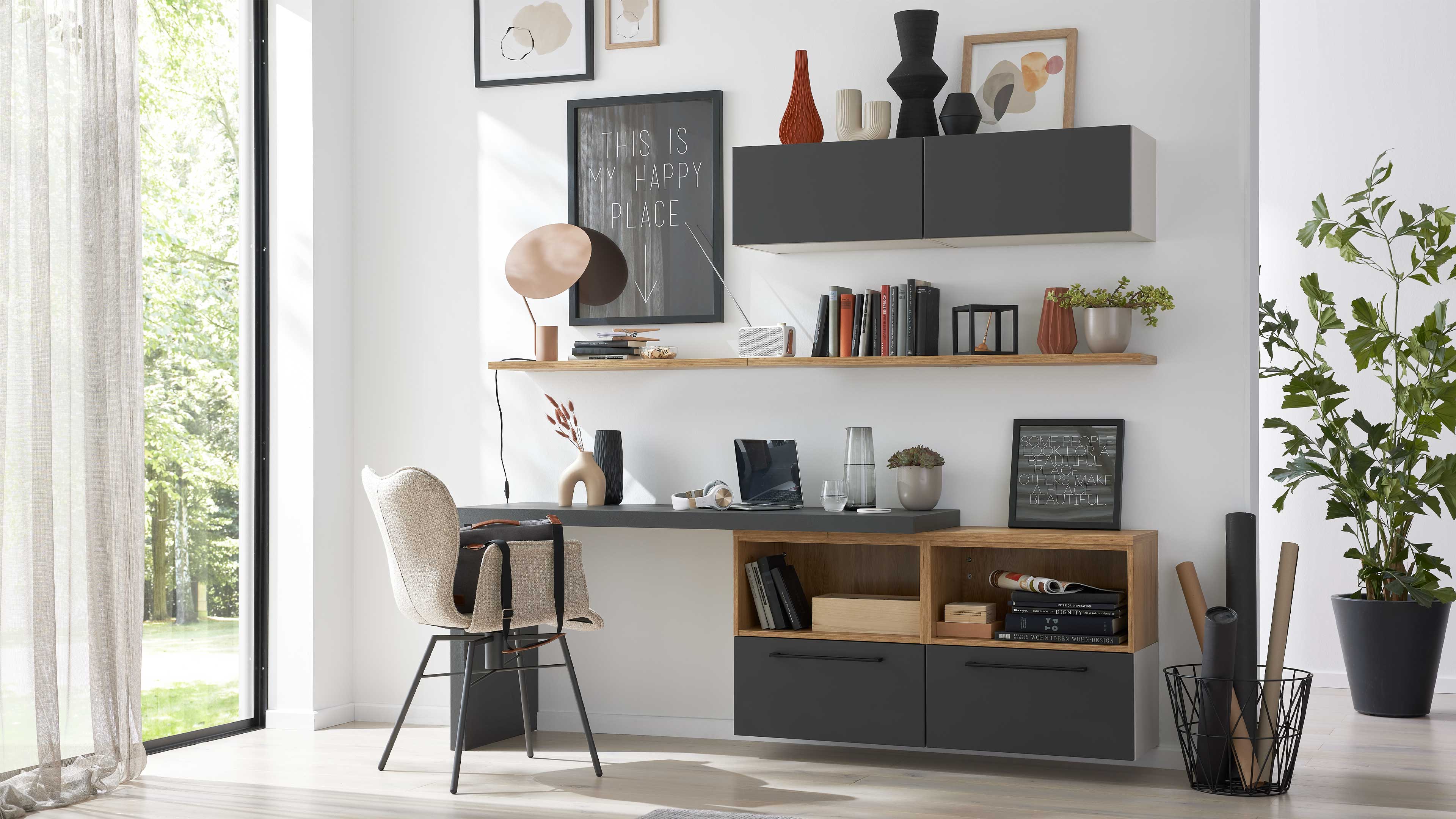 Stilvolle Optik in Graphit und Holz