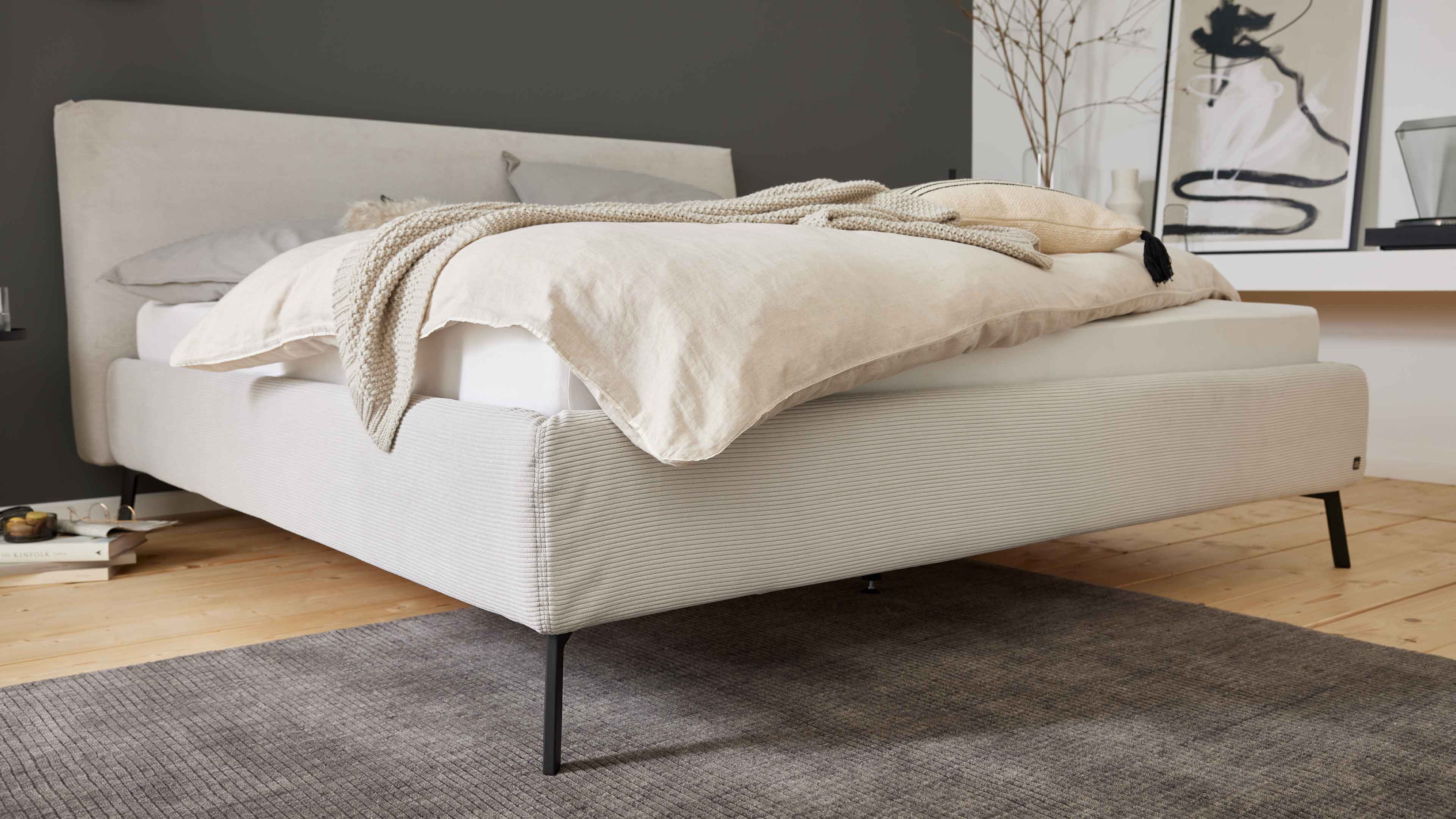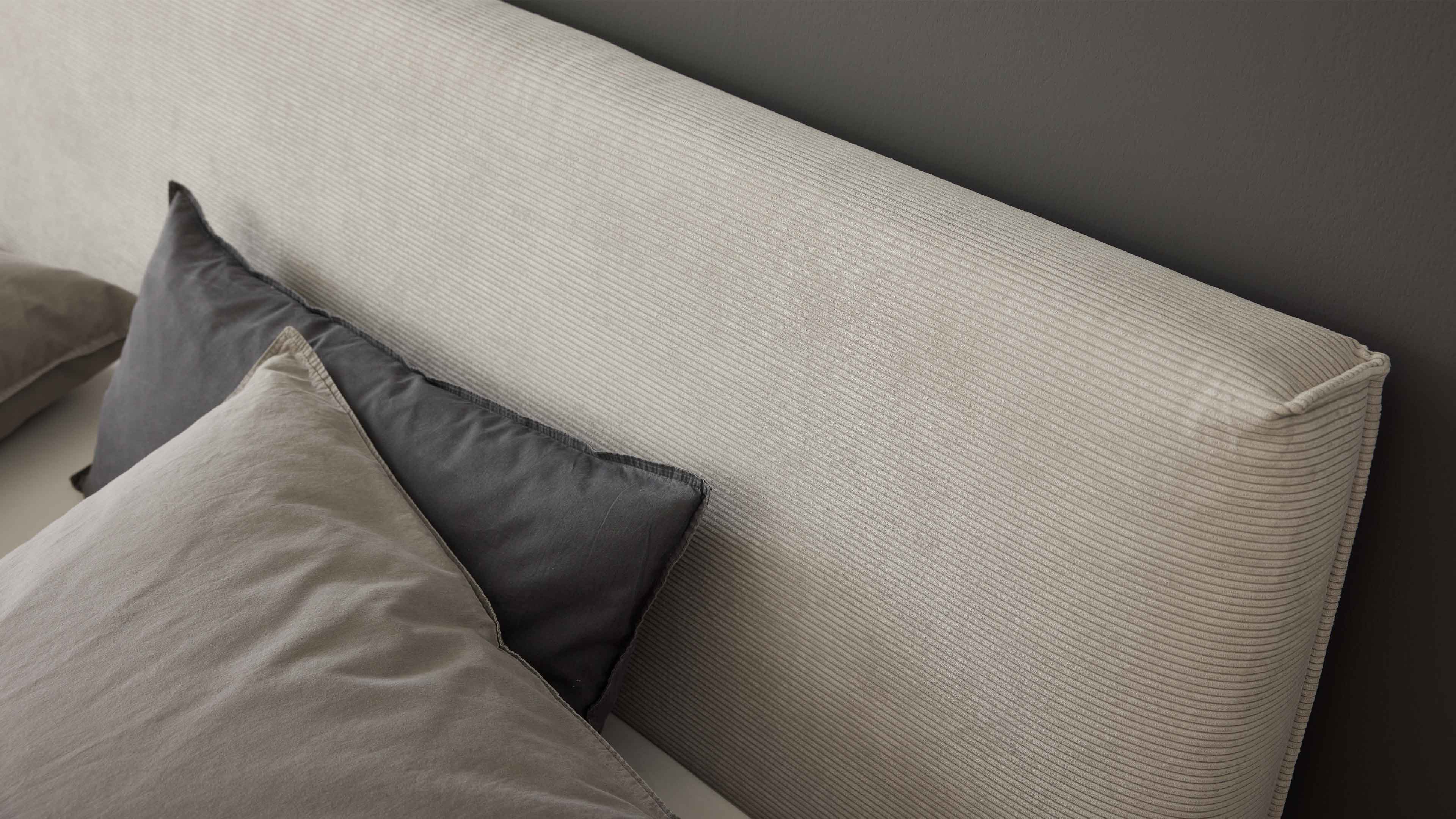 Polsterbett mit Feincord-Bezug in Hellgrau