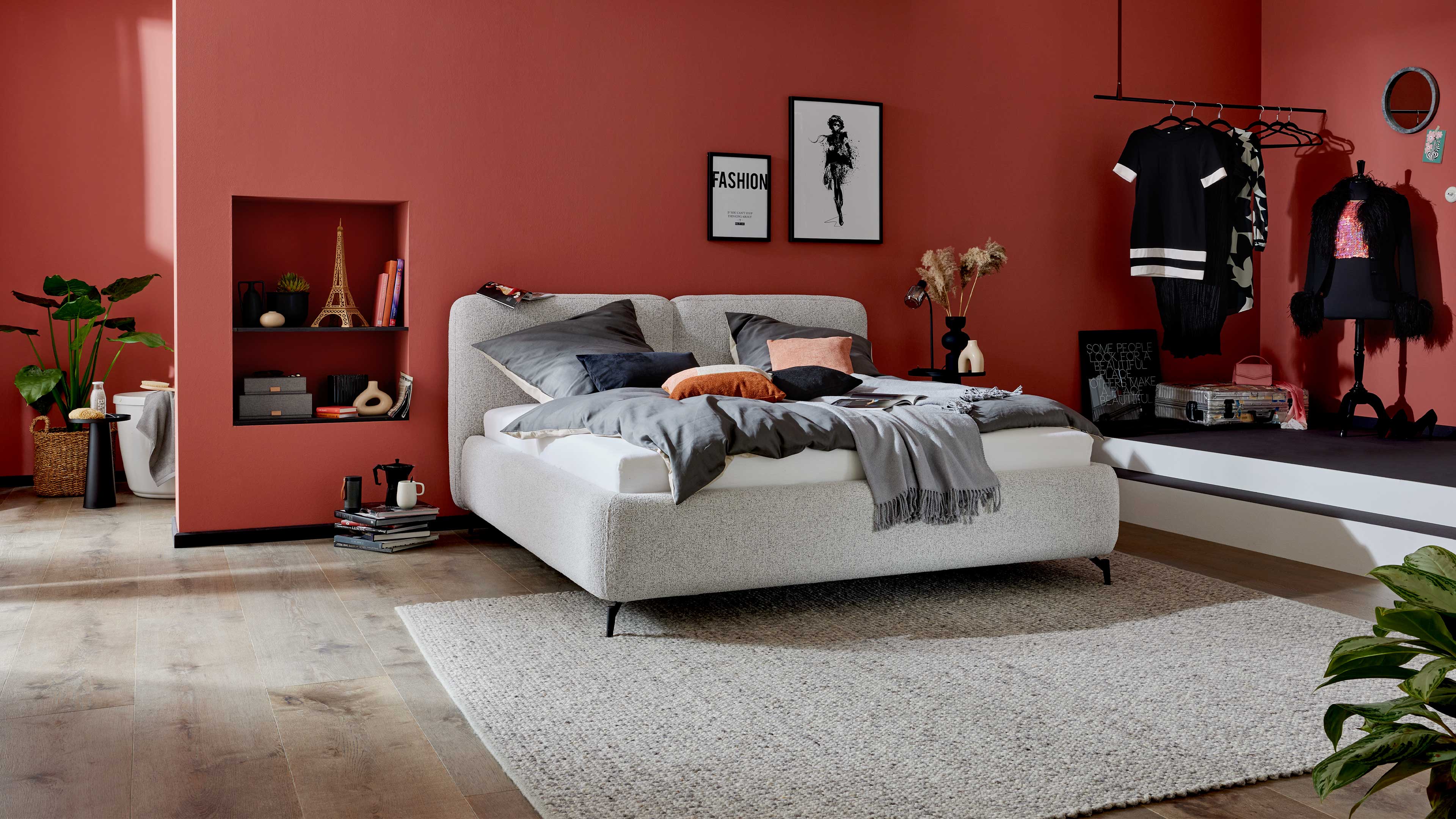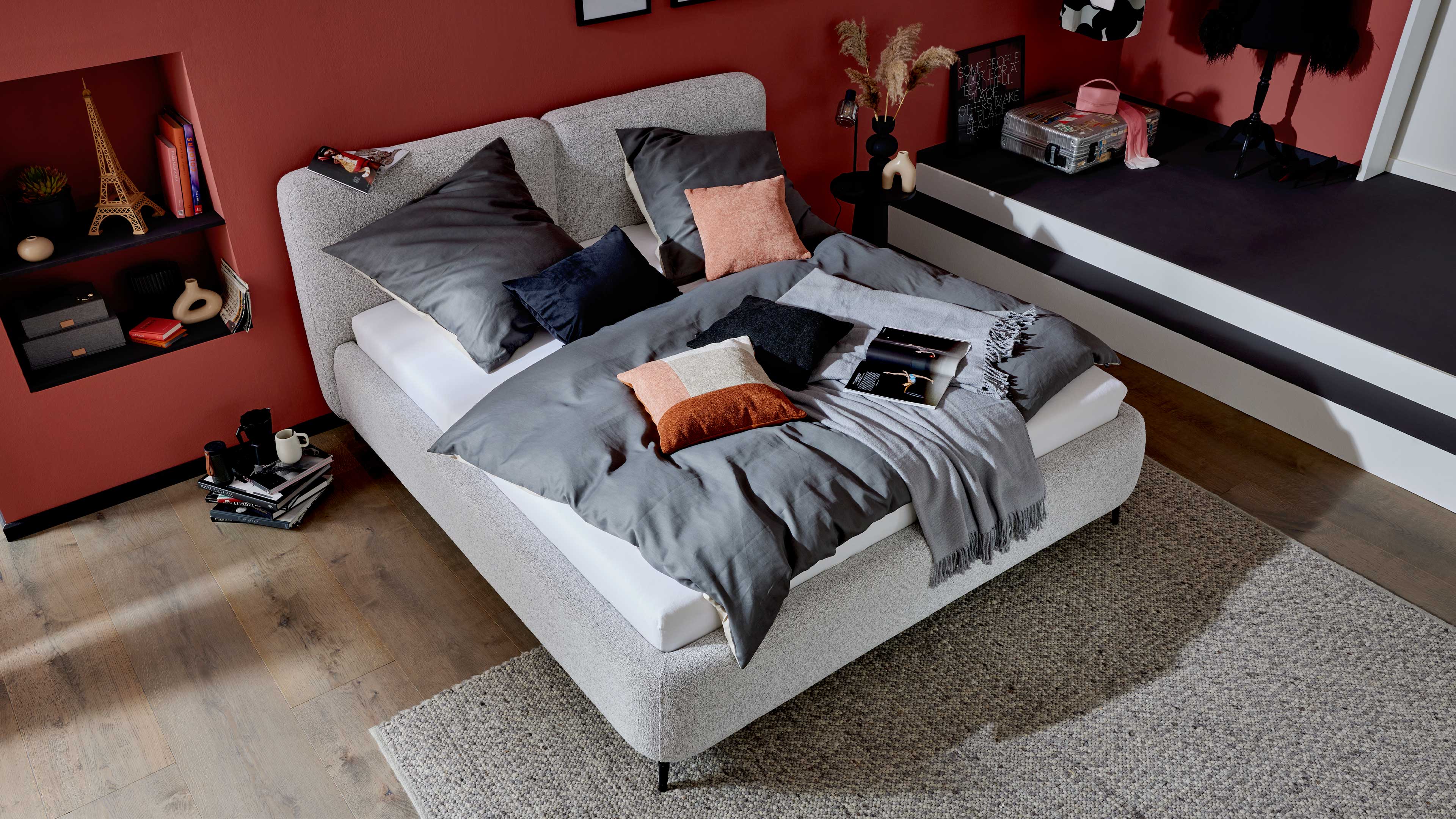 Gestalte dein Bett so, wie es zu dir und deinem Schlafzimmer passt: Wähle aus zwei hochwertigen Stoffvarianten und jeweils fünf eleganten Farben, von dezent-elegant bis modern-ausdrucksstark. So entsteht dein persönliches Wohlfühlbett, das perfekt zu deinem Einrichtungsstil passt. Der Aufbau gelingt dank durchdachter Konstruktion im Handumdrehen – schnell, einfach und ohne komplizierte Schritte.