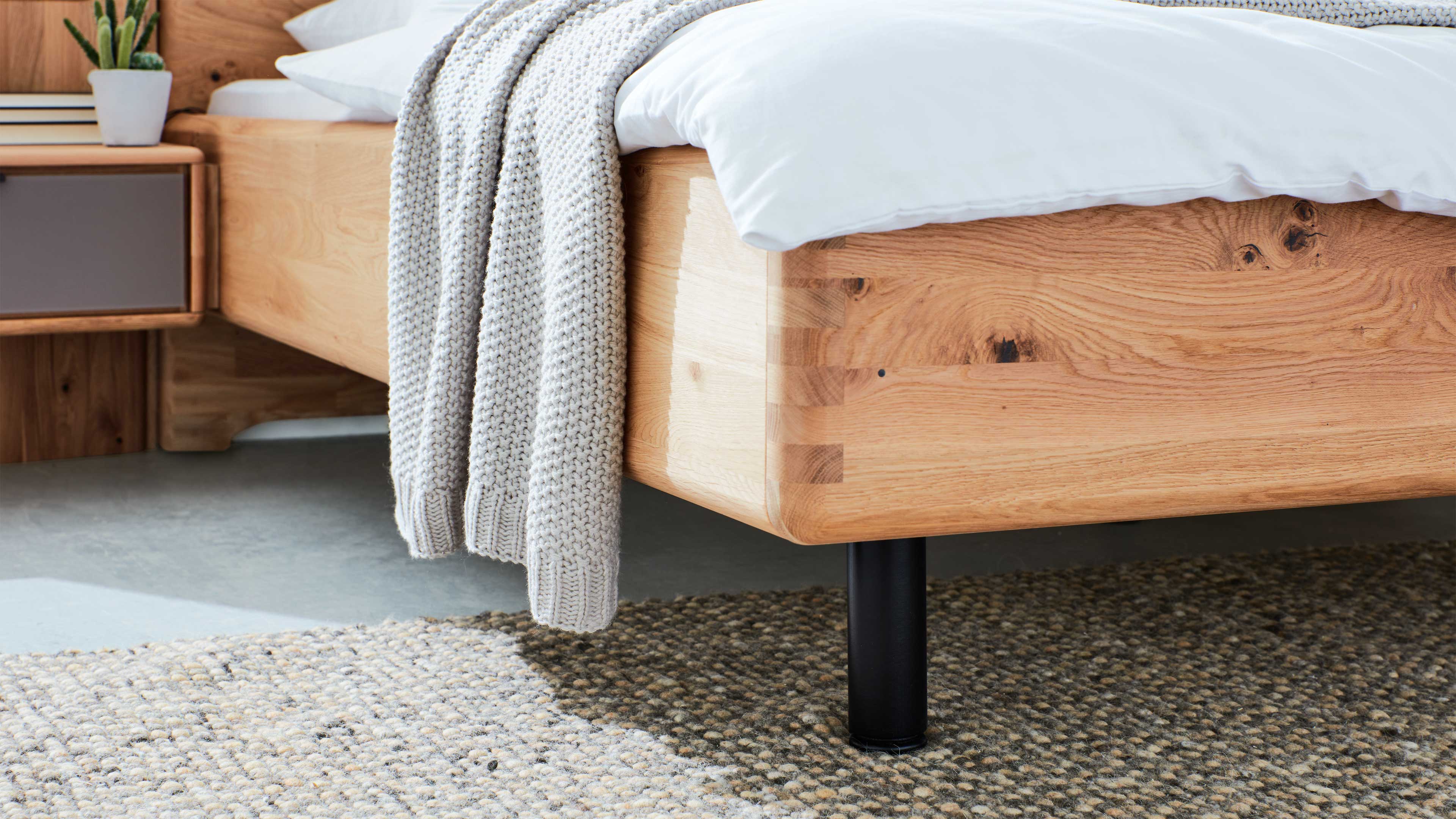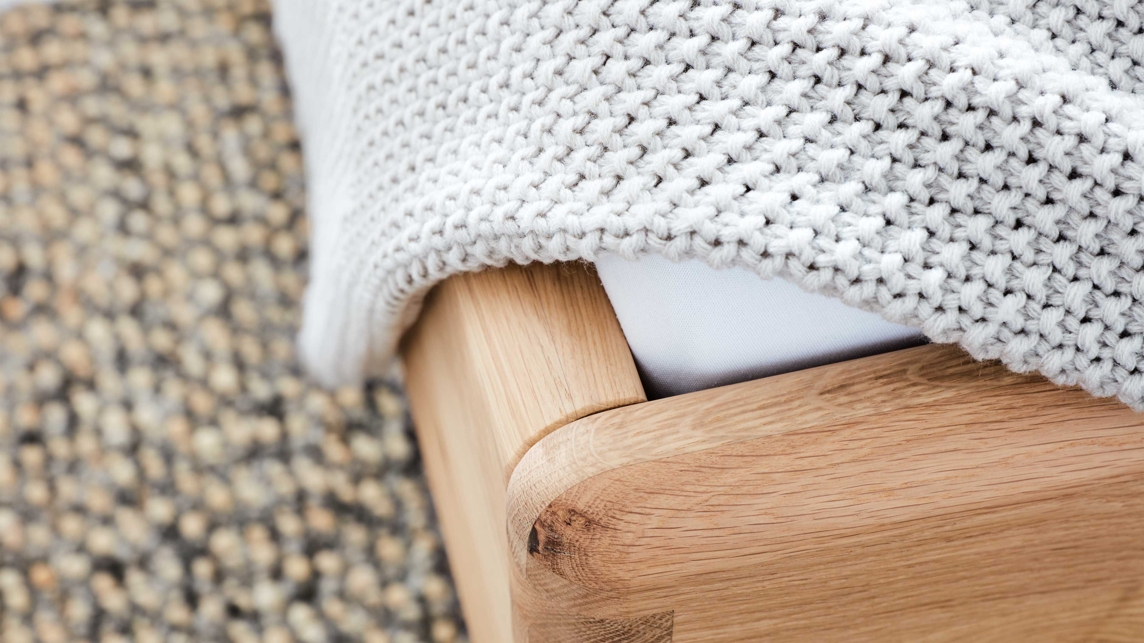 Das Massivholzbettgestell überzeugt durch seine hochwertige Verarbeitung mit keilverzinkten Bettseiten und einer Komfort-Bettseitenhöhe von ca. 47 cm, die dir ein bequemes Ein- und Aussteigen ermöglicht. Die Einlegetiefe ist vierfach höhenverstellbar – so kannst du dein Bett individuell an deine bevorzugte Liegehöhe anpassen.