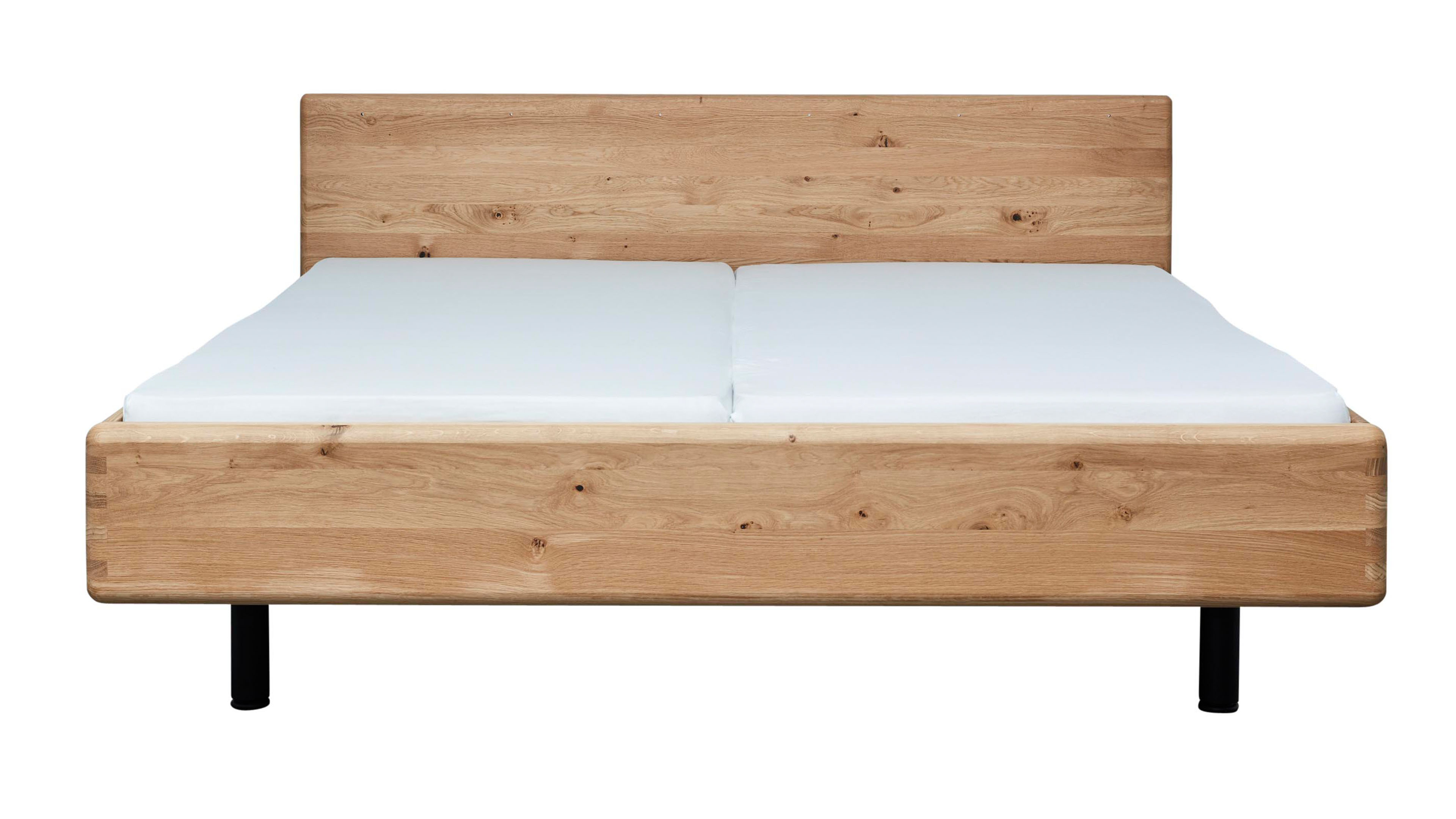 Bett in massiver Eiche mit geradlinigem Holzkopfteil