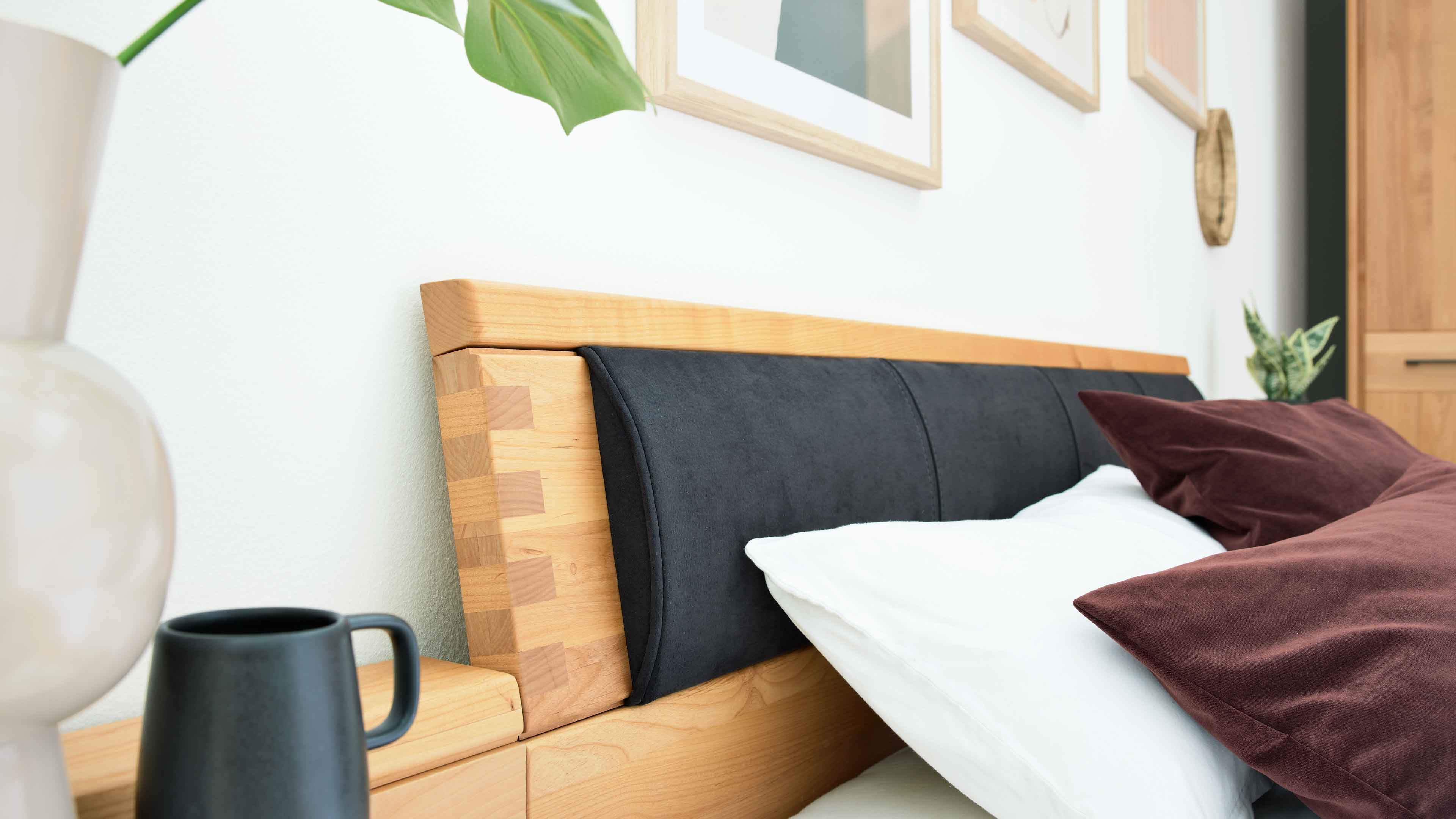 Das Komplettzimmer (Typ 1009) aus der Interliving Schlafzimmer Serie 1028 setzt auf eine massive kanadische Erle mit Natureffekt-Lack, kombiniert mit carbonfarben pulverbeschichtetem Metall und schwarzem Stoff (Typ Kano 7006). Diese perfekt abgestimmte Mischung verleiht dem Schlafzimmer einen modernen und zugleich eleganten Charakter.