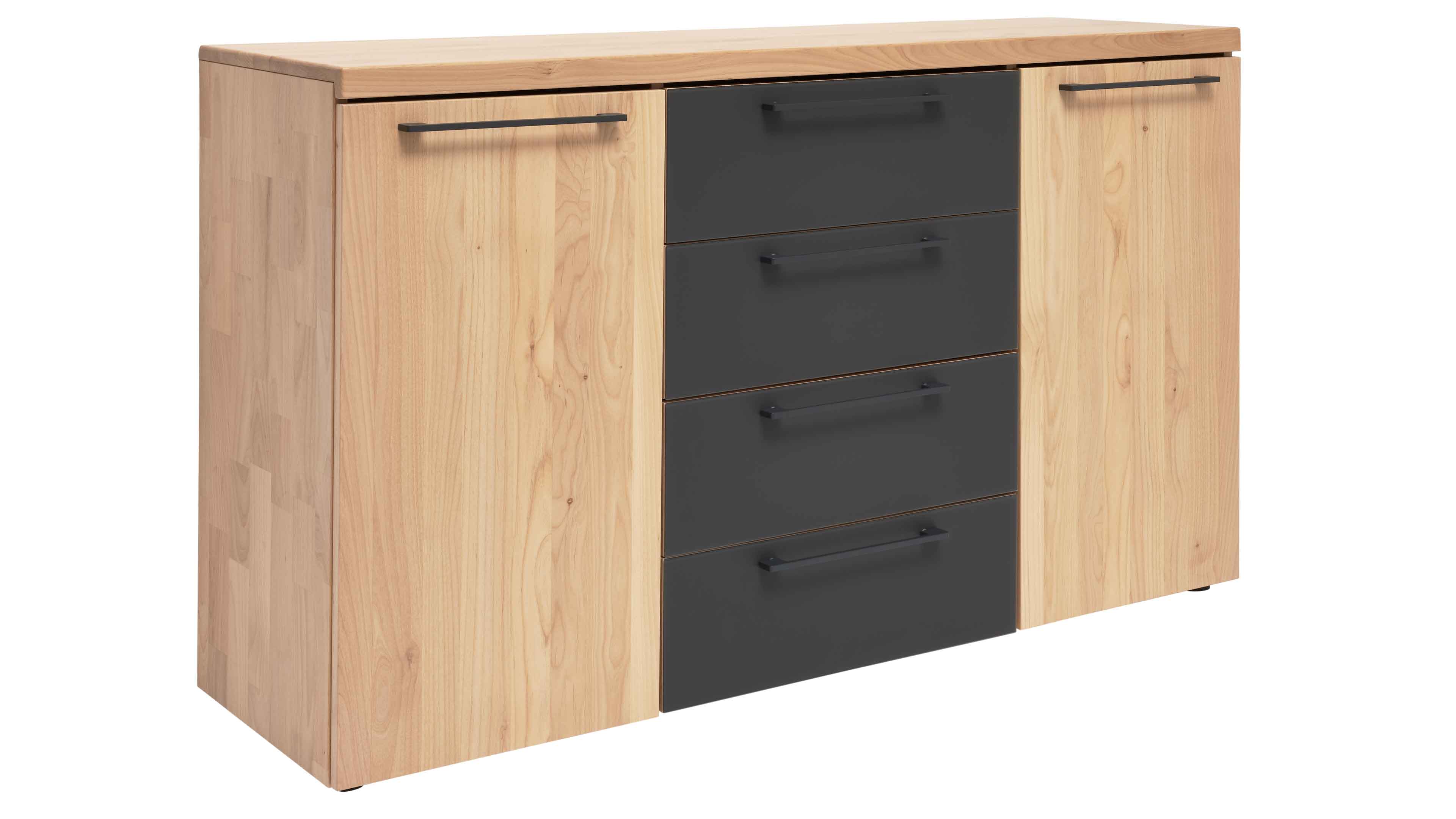 Kommode aus Massivholz mit vier Schubladen und Mattglas-Fronten in anthrazit