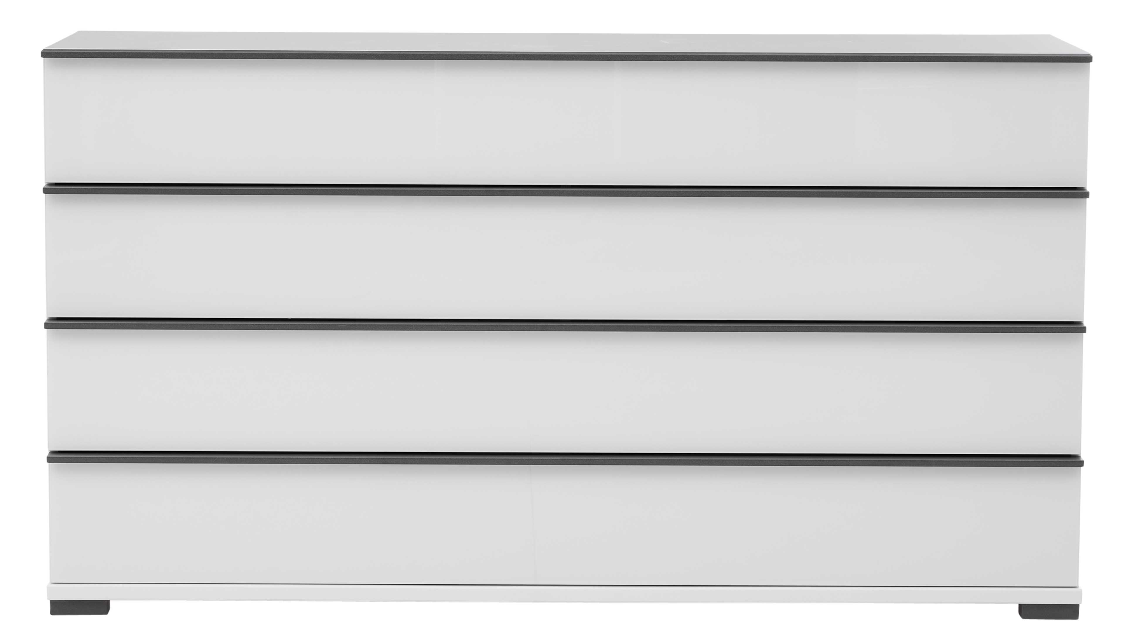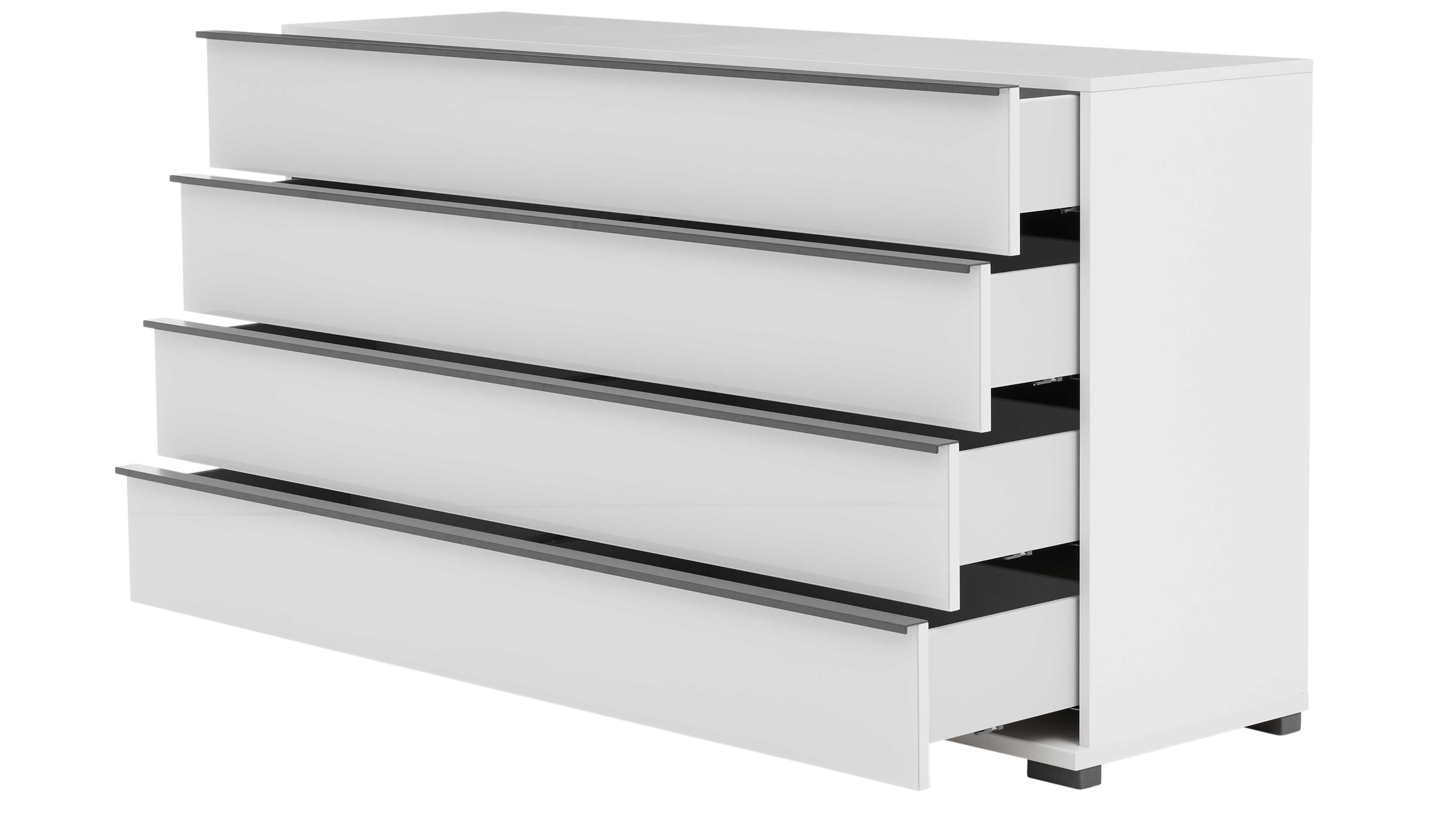 Hochglanz-Kommode in Weiß mit vier großzügigen Schubladen und Griffleisten