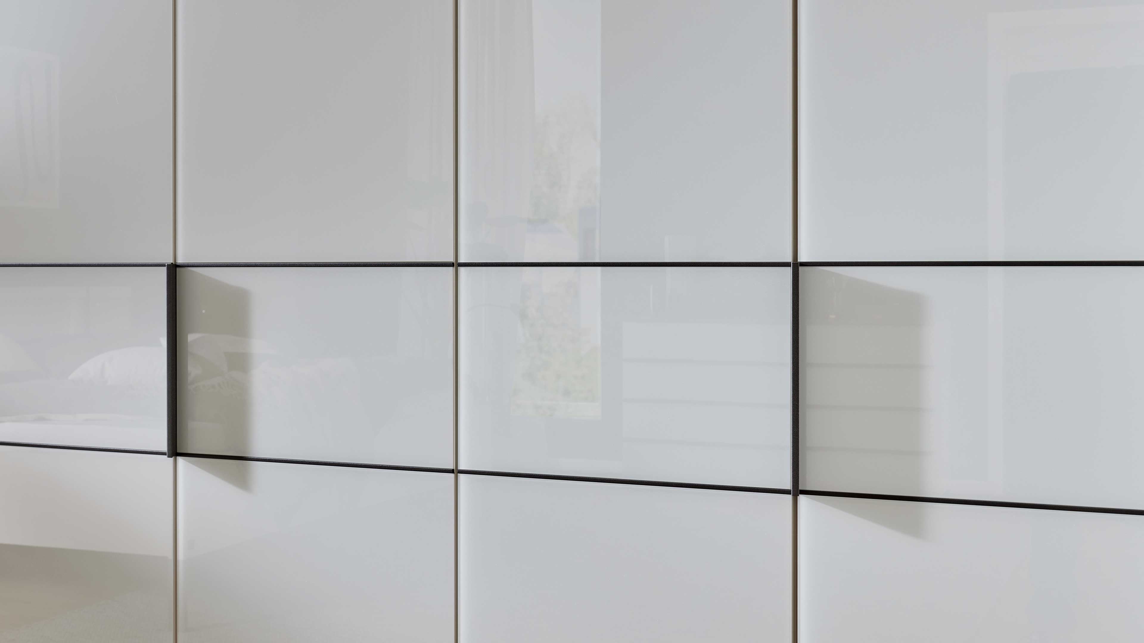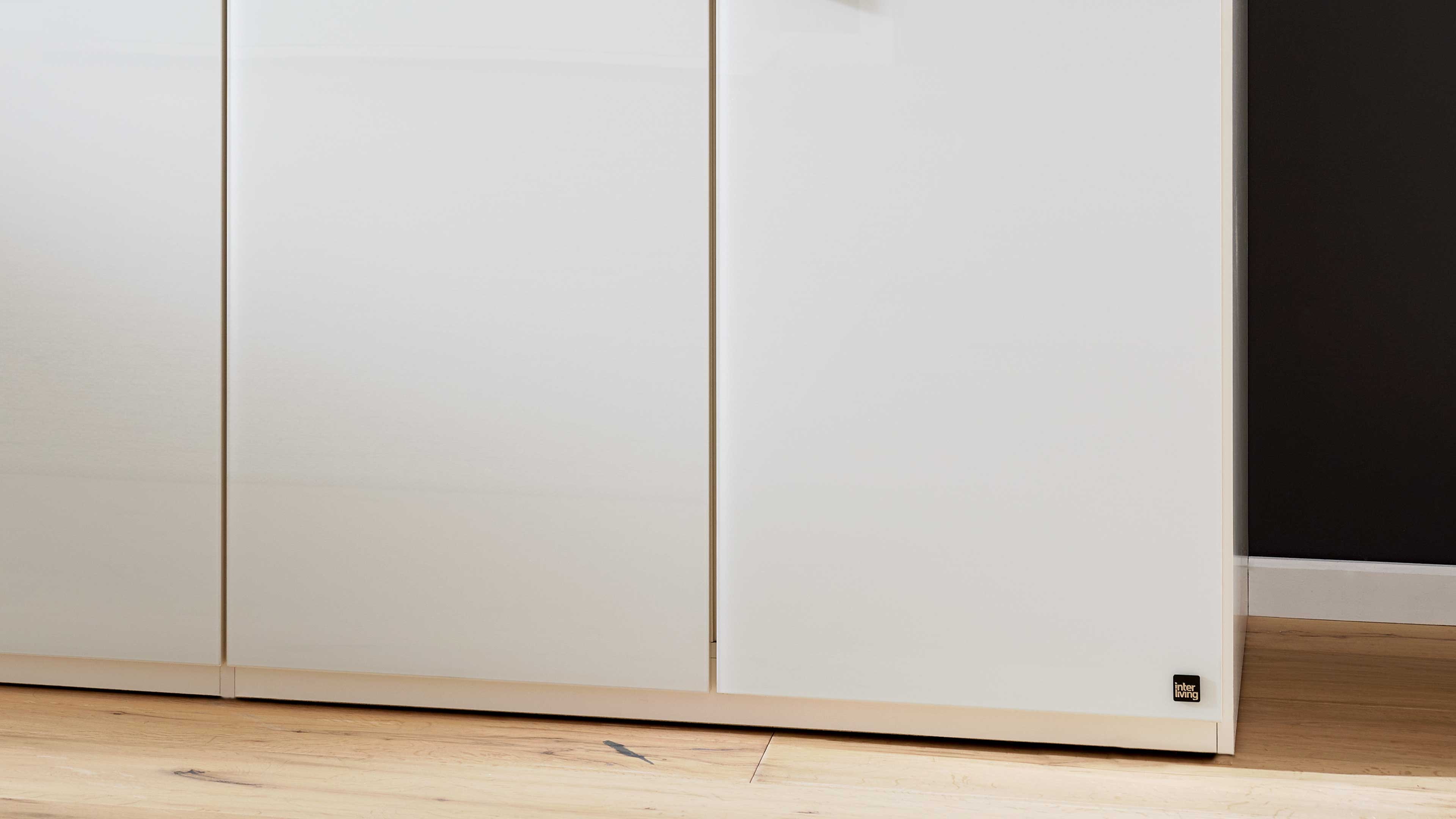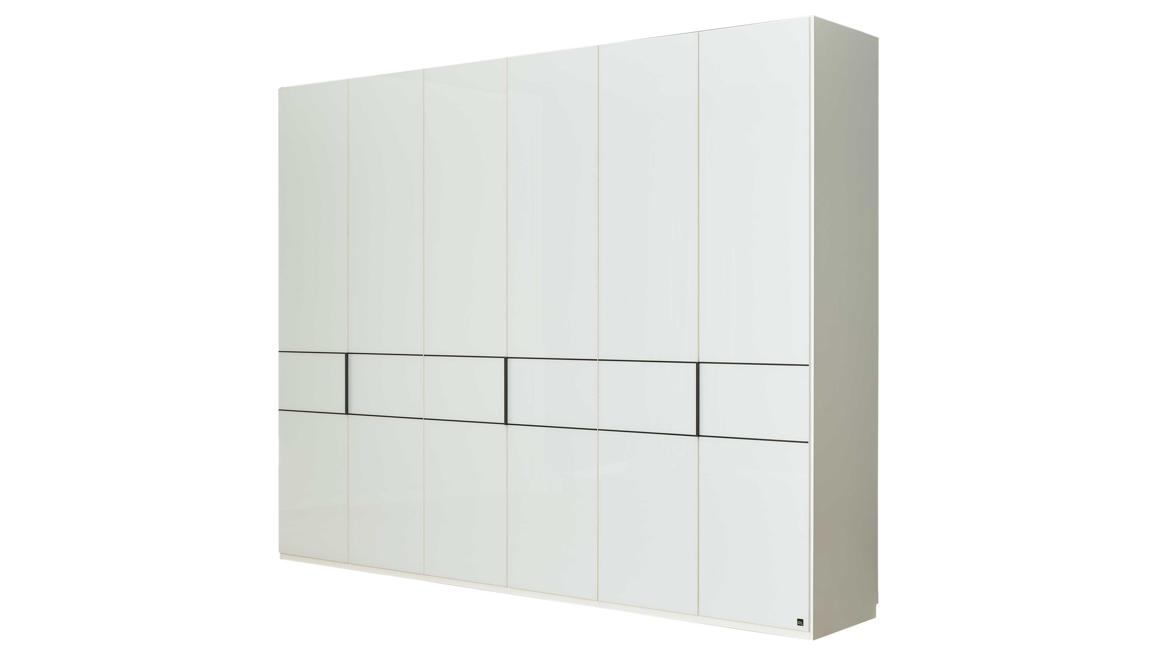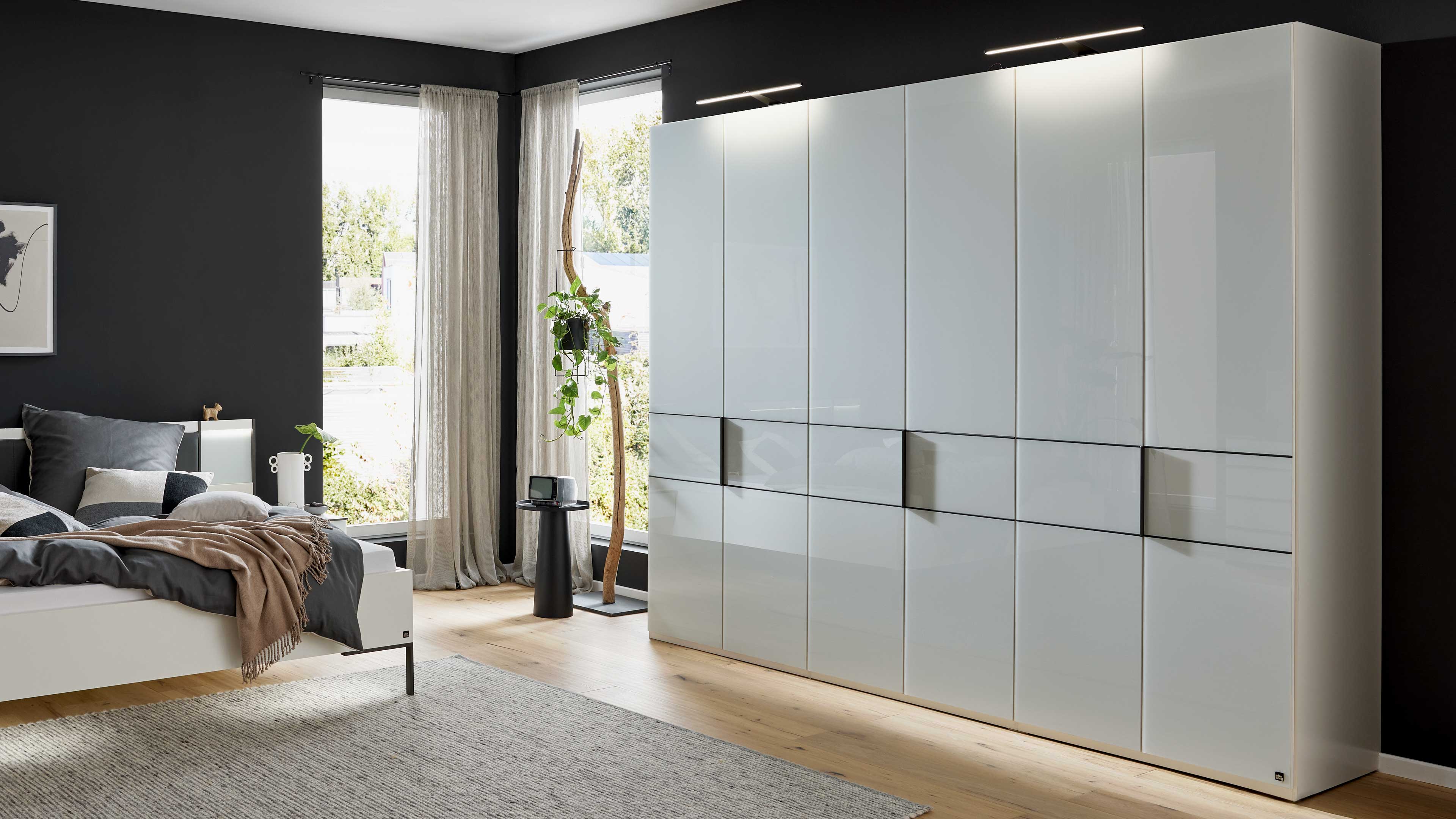 Die Interliving Schlafzimmer Serie 1033 bietet dir eine breite Auswahl an Drehtürenschränken in zwei Höhen (216 cm und 236 cm) und acht Breiten – auf Wunsch auch mit Auszügen. Du entscheidest, ob die Fronten pur in weißem Glas bleiben oder mit Kristallspiegeltüren kombiniert werden. Für stimmungsvolle Effekte sorgen optionale Passepartouts und Kranzleisten mit LED‑Beleuchtung, die das klare Design stilvoll unterstreichen.