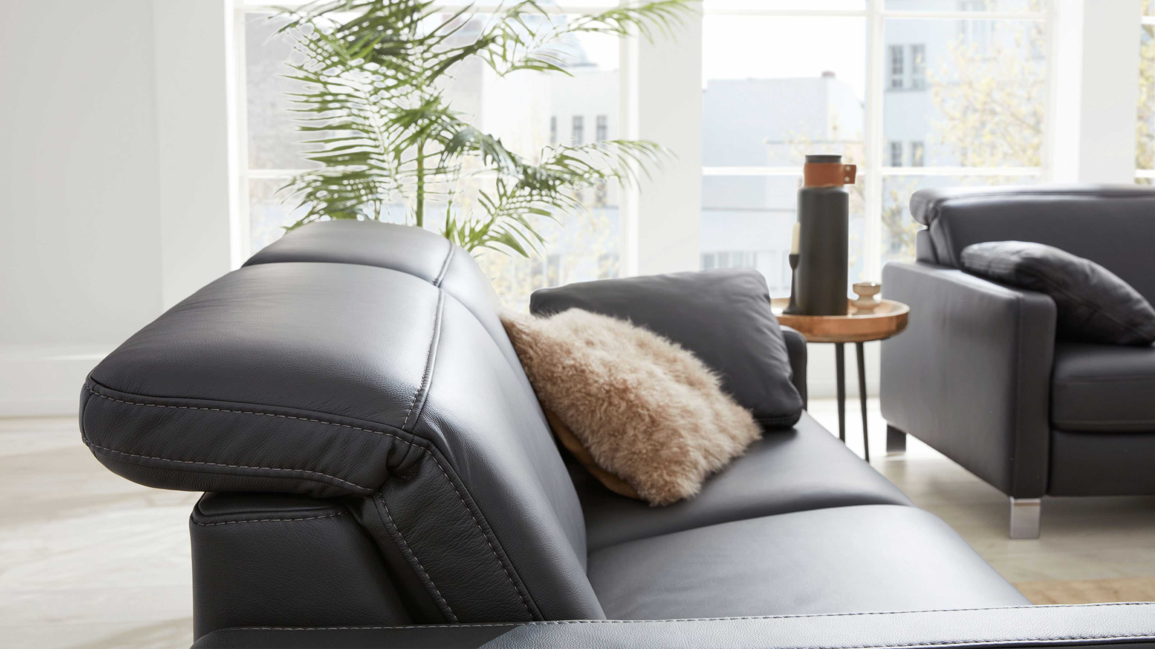 Ob als stilvolles Einzelsofa oder als Teil einer großzügigen Wohnlandschaft – das Ledersofa wird garantiert zum Blickfang in deinem Wohnzimmer.