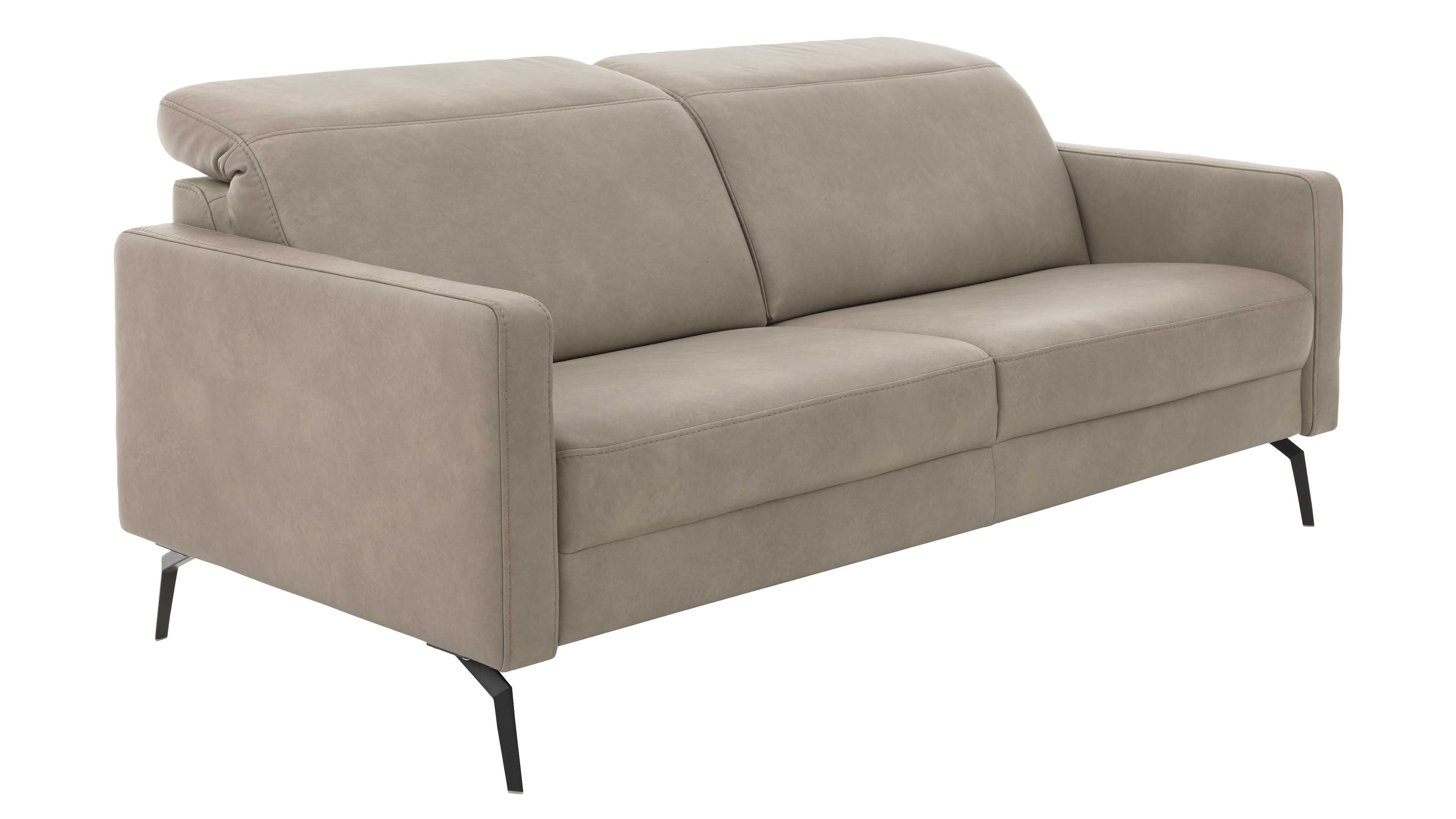 Der Bezug aus Leder Cloudy in Kiesel begeistert mit seiner zarten 2-Ton-Struktur, der besonders weichen Haptik und einer wohnlich-eleganten Ausstrahlung. Die schmale Armlehne A unterstreicht das filigrane Design und macht den Zweisitzer zum stilvollen Akzent für moderne Wohnräume – leicht, klar und anpassungsfähig.